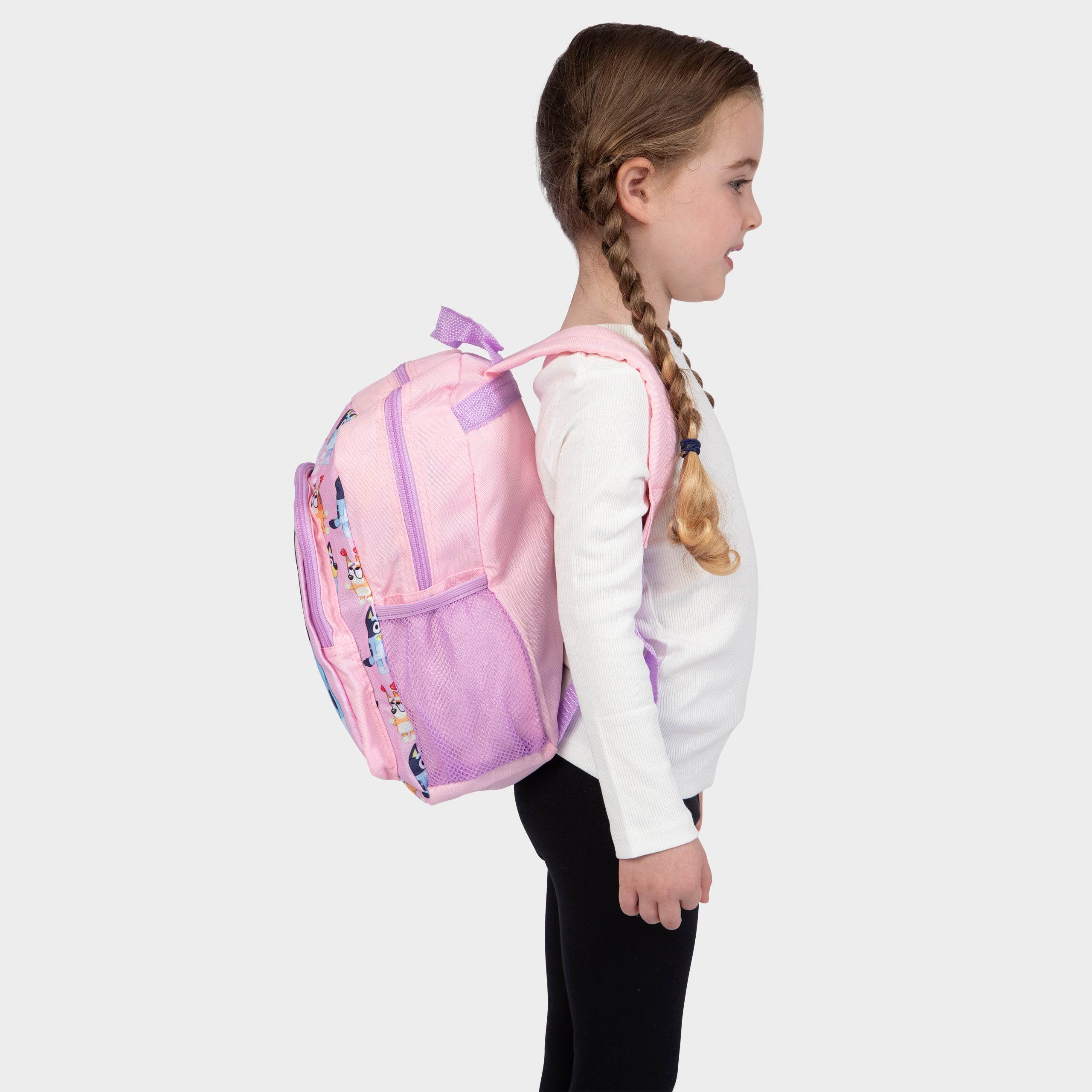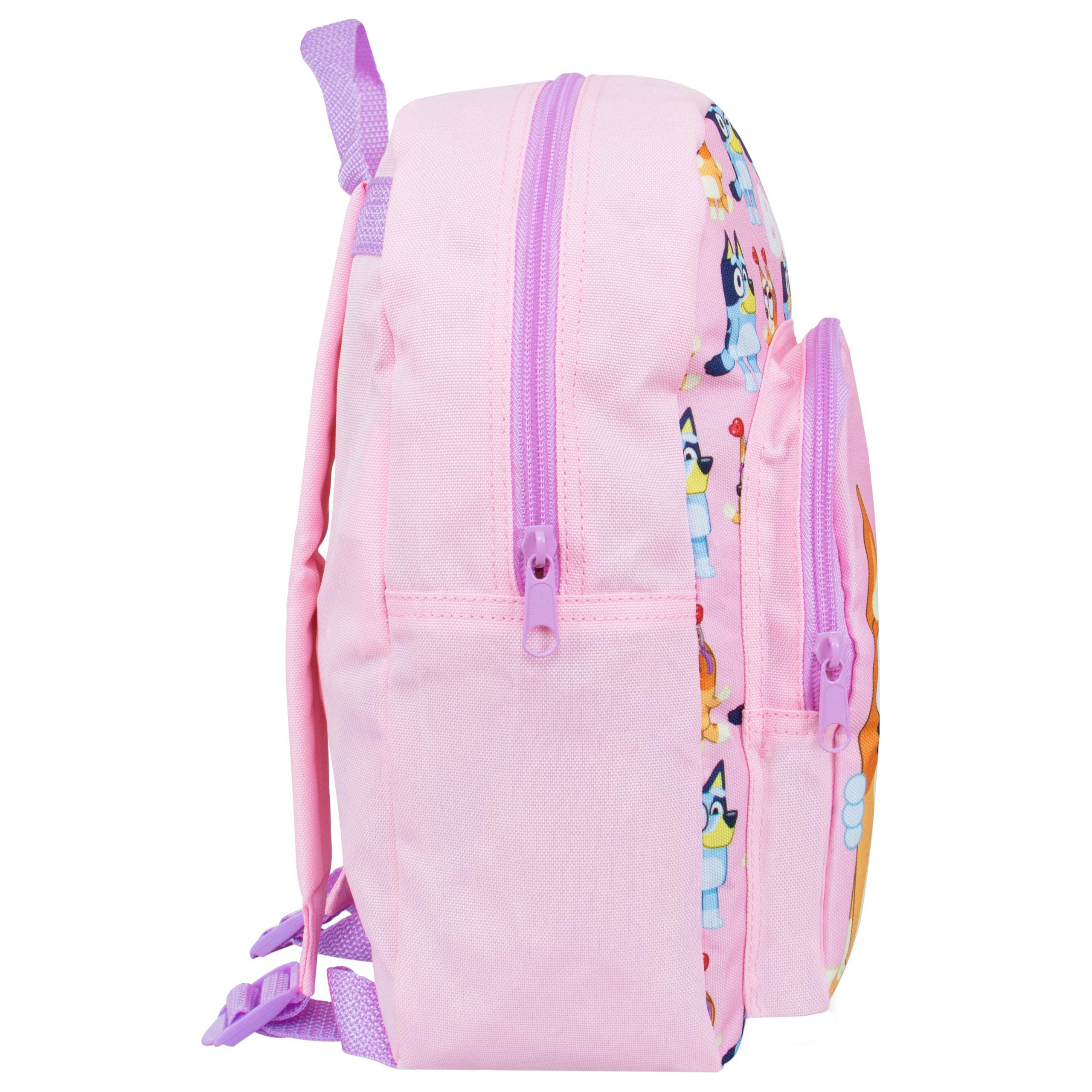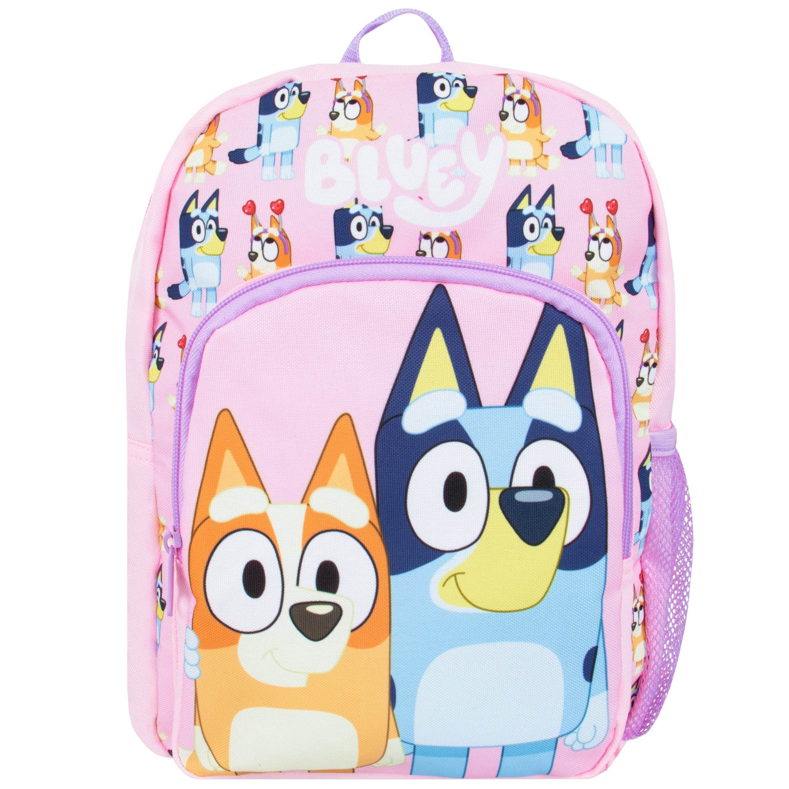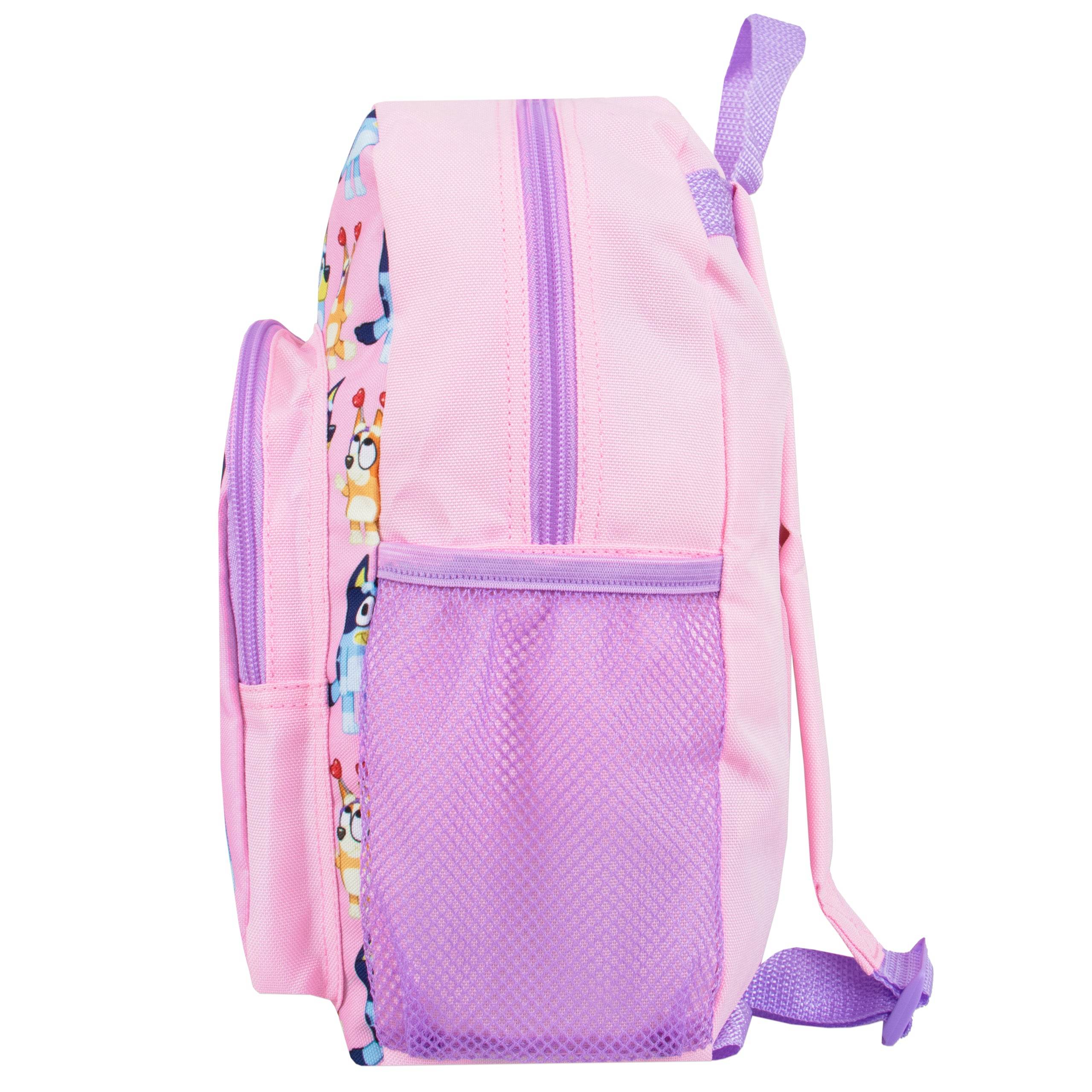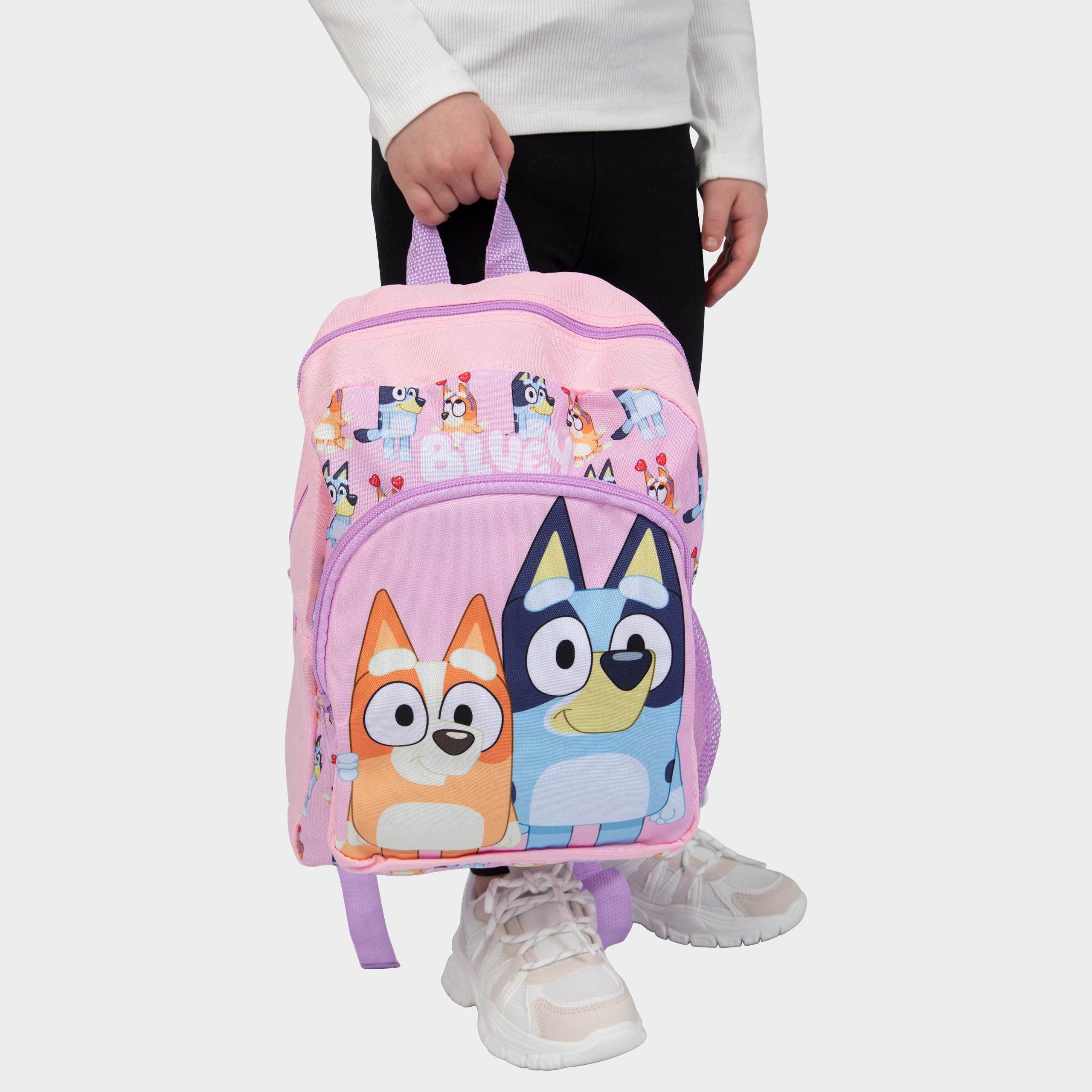 • Standout Feature: This adorable nursery backpack is pink with light purple accents and features Bluey and Bingo on the large front compartment.