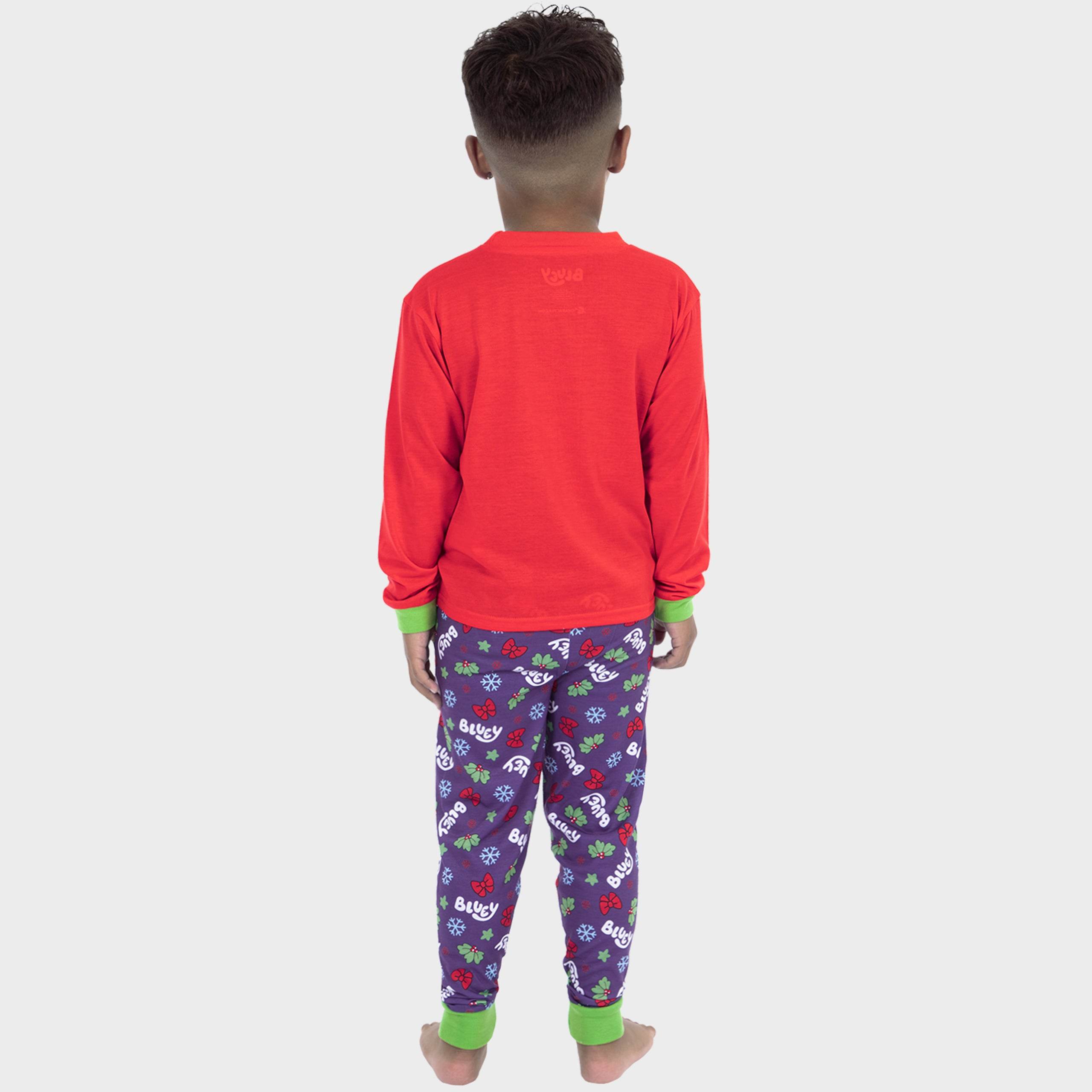 • Festive Heeler Family Pyjama Set: With a charming Heeler family print, snowflakes, and the iconic Bluey logo, these boys PJs are sure to delight!