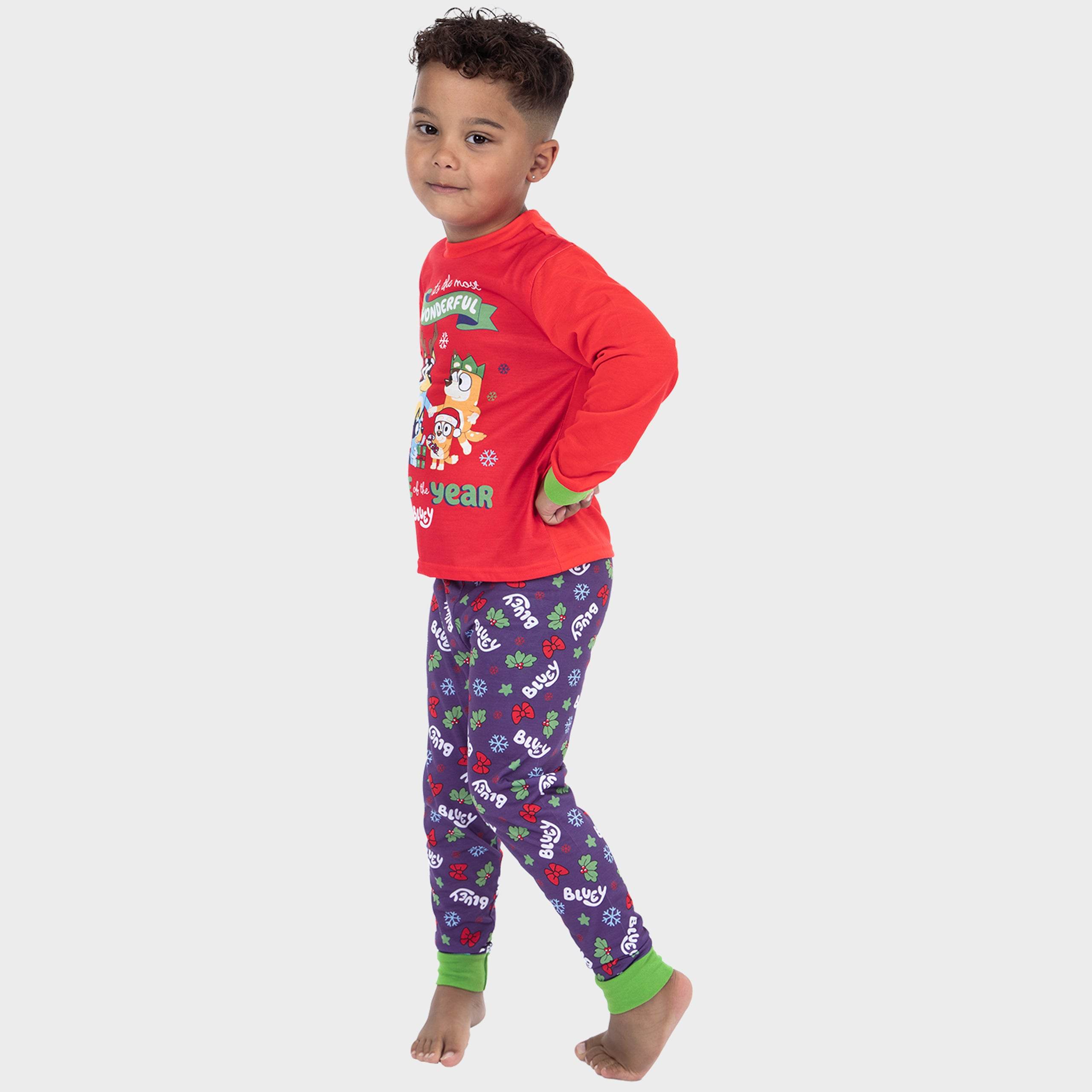 Make this Christmas extra special for the young Bluey fan in your life with this charming Bluey pyjama set! Perfect for transforming bedtime into a magical winter wonderland, these boys pyjamas feature festive designs showcasing Bluey and Bingo, plus joyful Christmas details to bring a smile to their face! Complete with the fun slogan Its The Most Wonderful Time Of The Year on the top, these red PJ set captures the cheerful holiday spirit of the Heeler family!