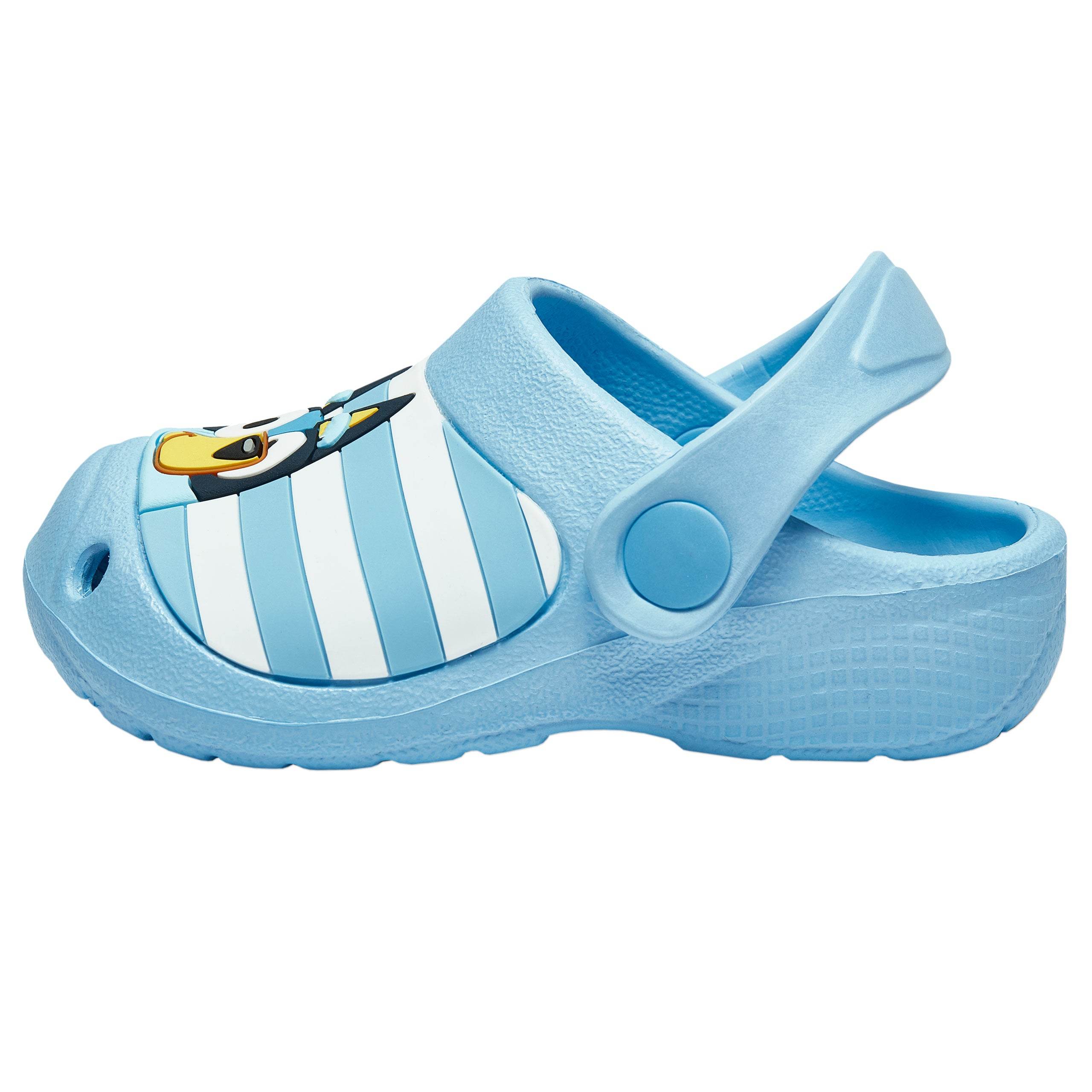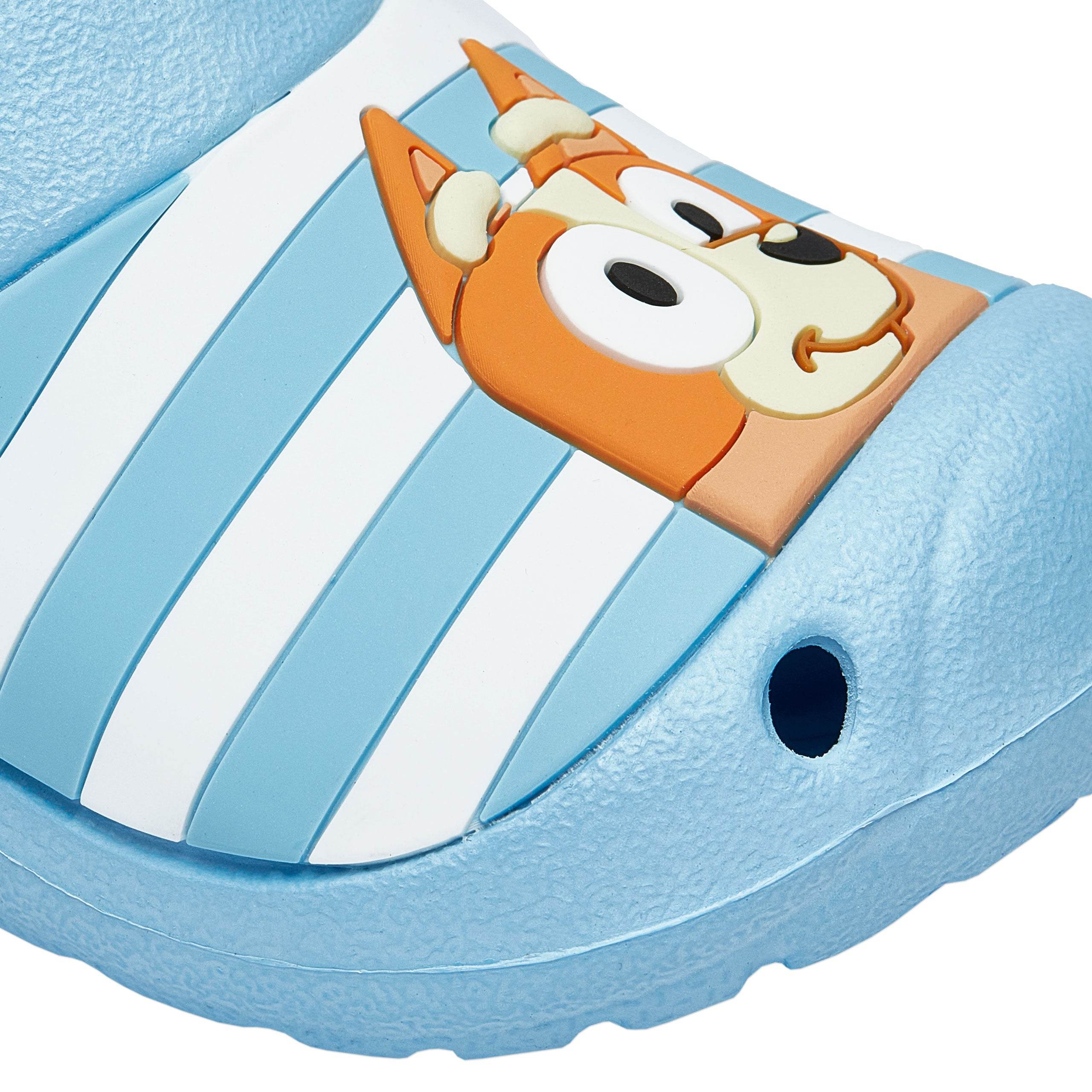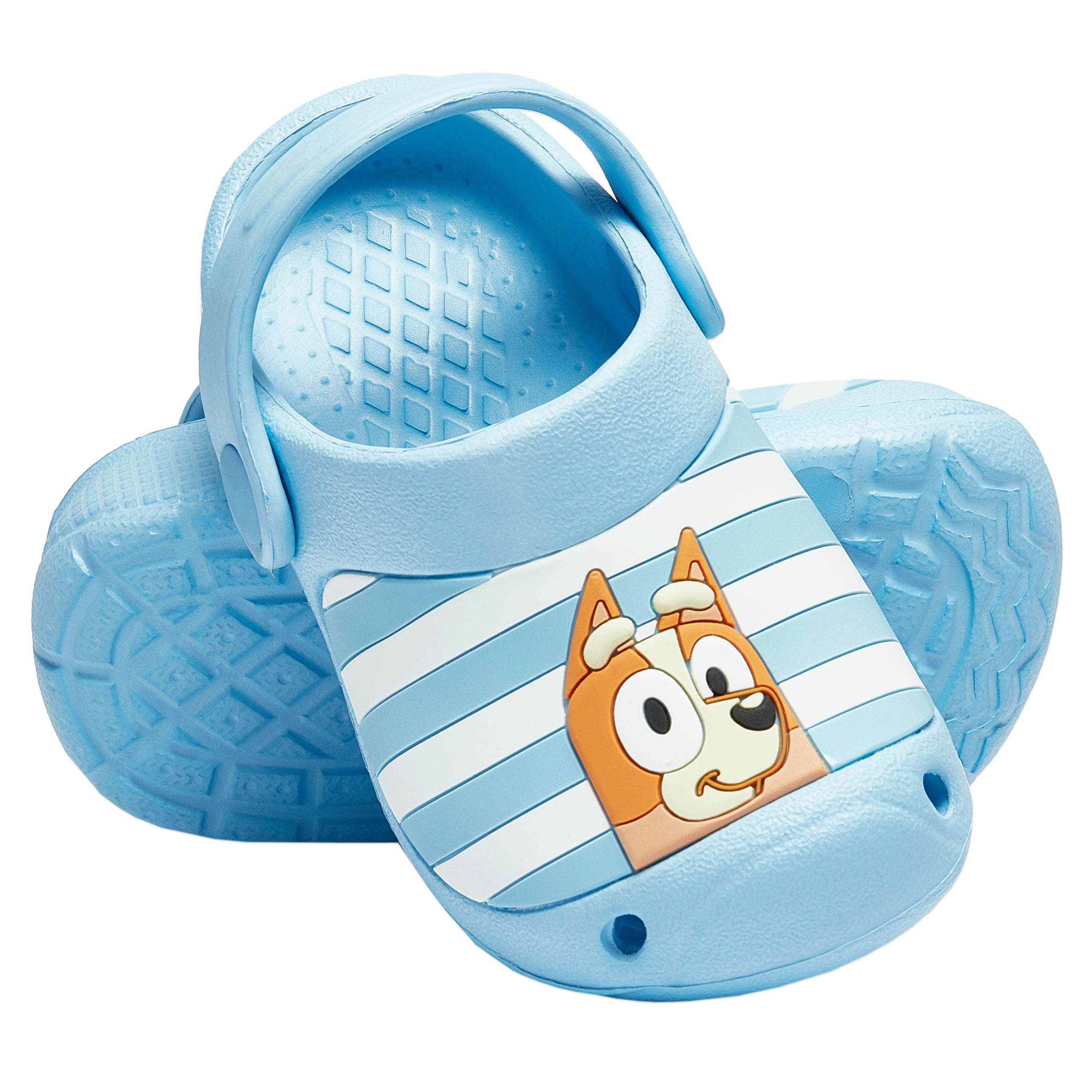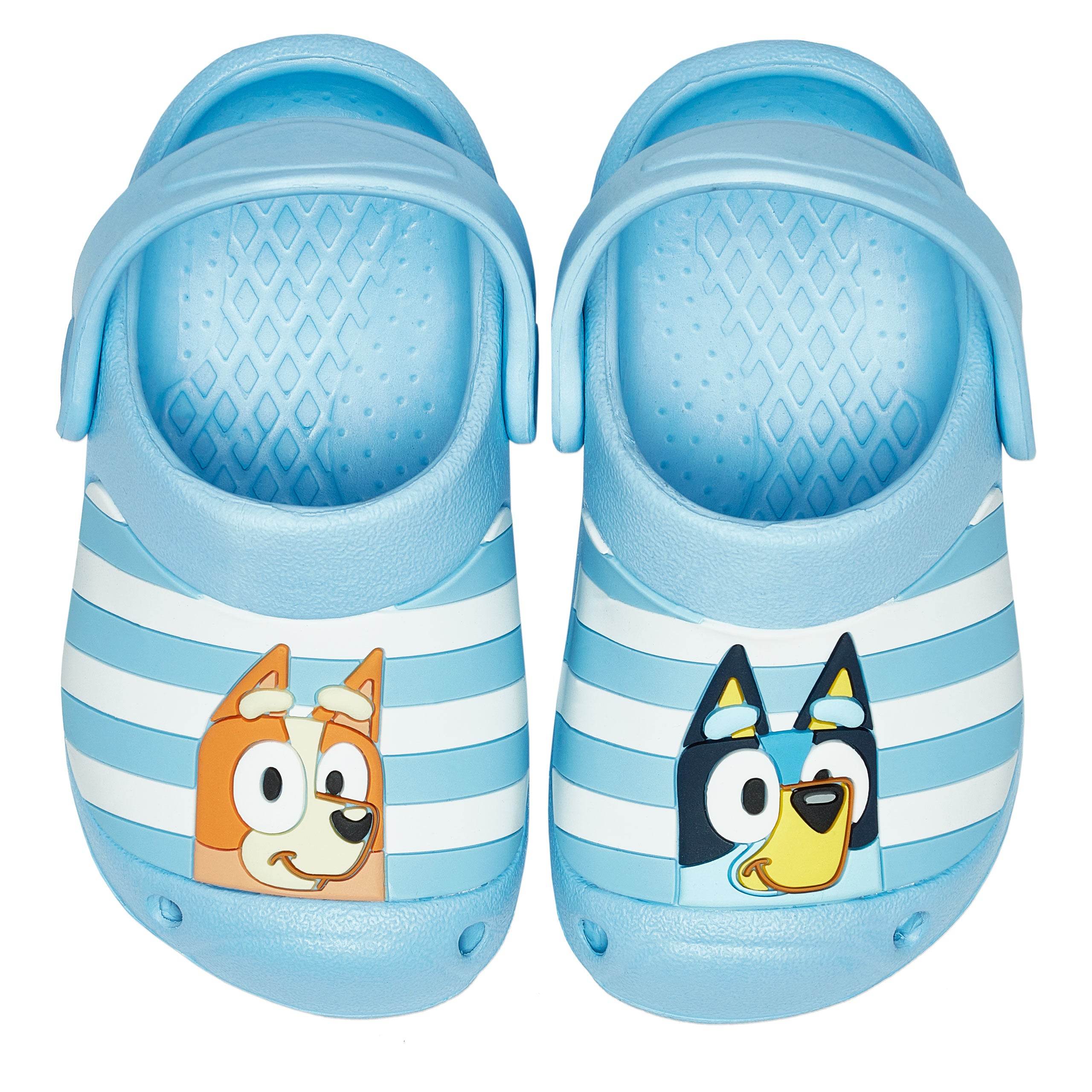 • Pup-tasic Style: Sport the playful paws of Bluey and Bingo on these snazzy blue and white striped clogs a real treat for little feet!