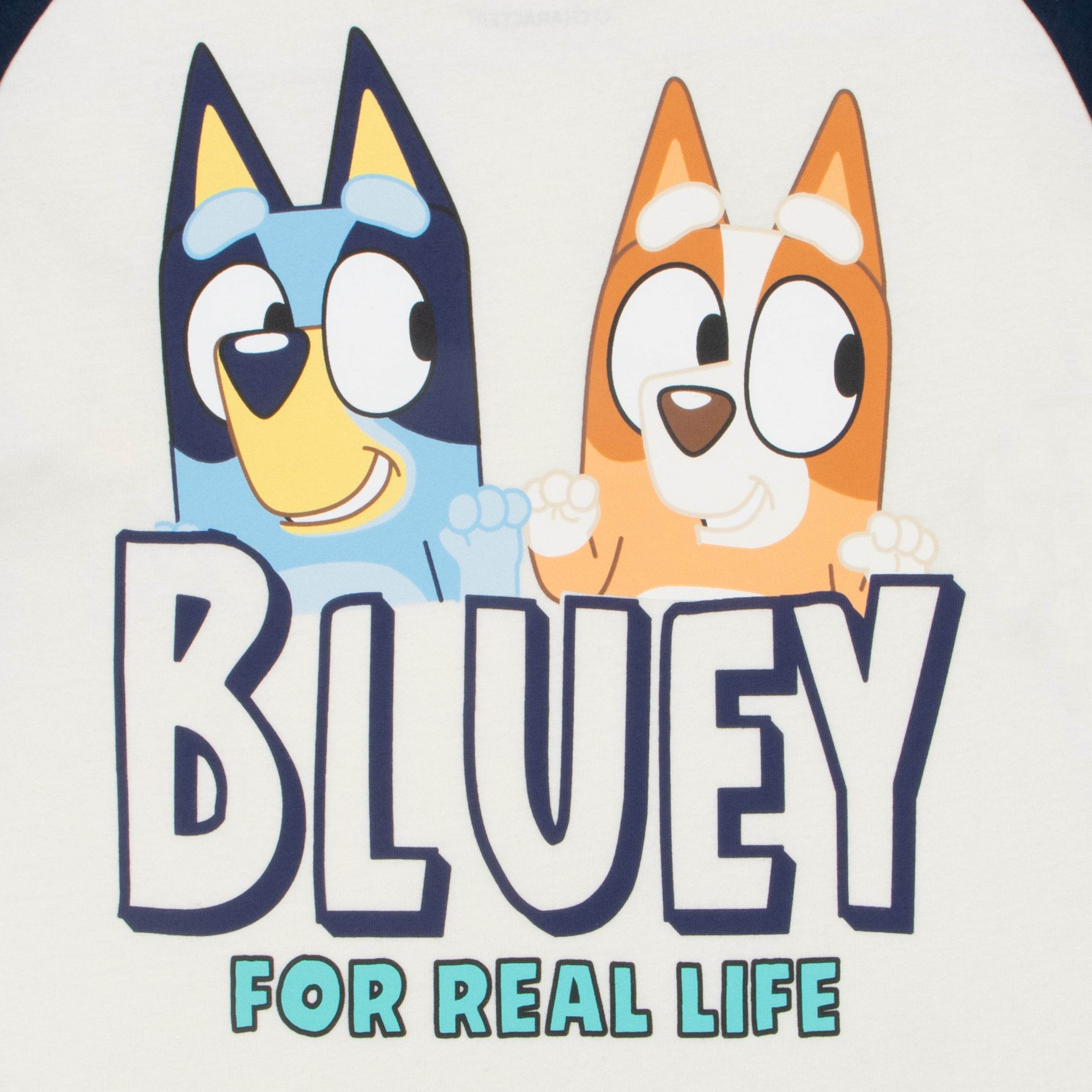 • Whimsical Bluey Design: This super cool tee features Bluey and Bingo with a playful look, completed with the fun slogan "Bluey For Real Life" to inspire their imagination!