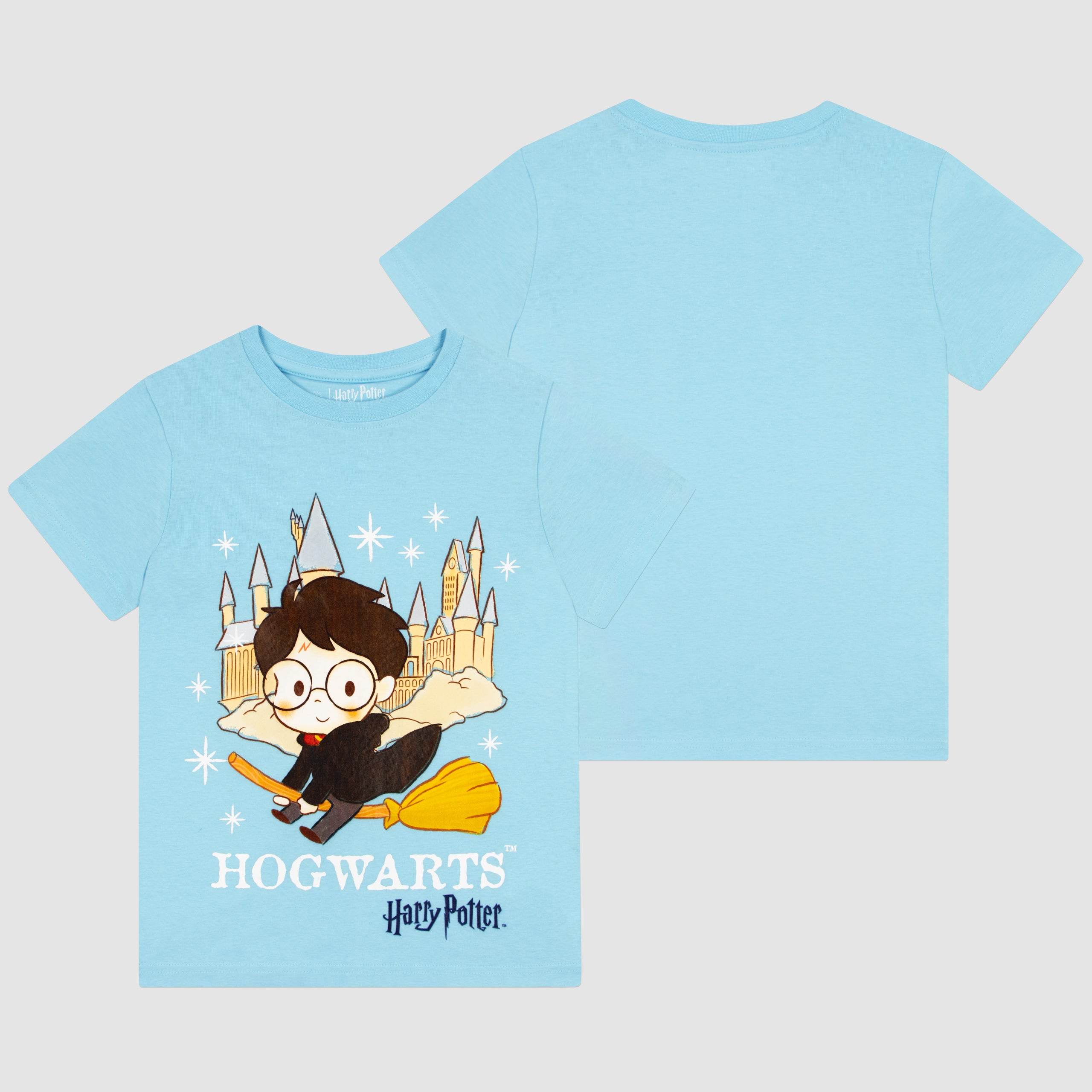 This world book day inspired tee is perfect for the little witches and wizards in your life, this playful kids' Harry Potter t-shirt is a spellbinding addition to any wardrobe. Watch them zoom into their day with a cute, cartoon-style Harry Potter flying on his broomstick, set against a whimsical Hogwarts backdrop. The bright white "Hogwarts" lettering stands out, inviting everyone to join in the magical fun. Completed with the iconic Harry Potter logo in the corner, it's a must-have for any young fan's collection!