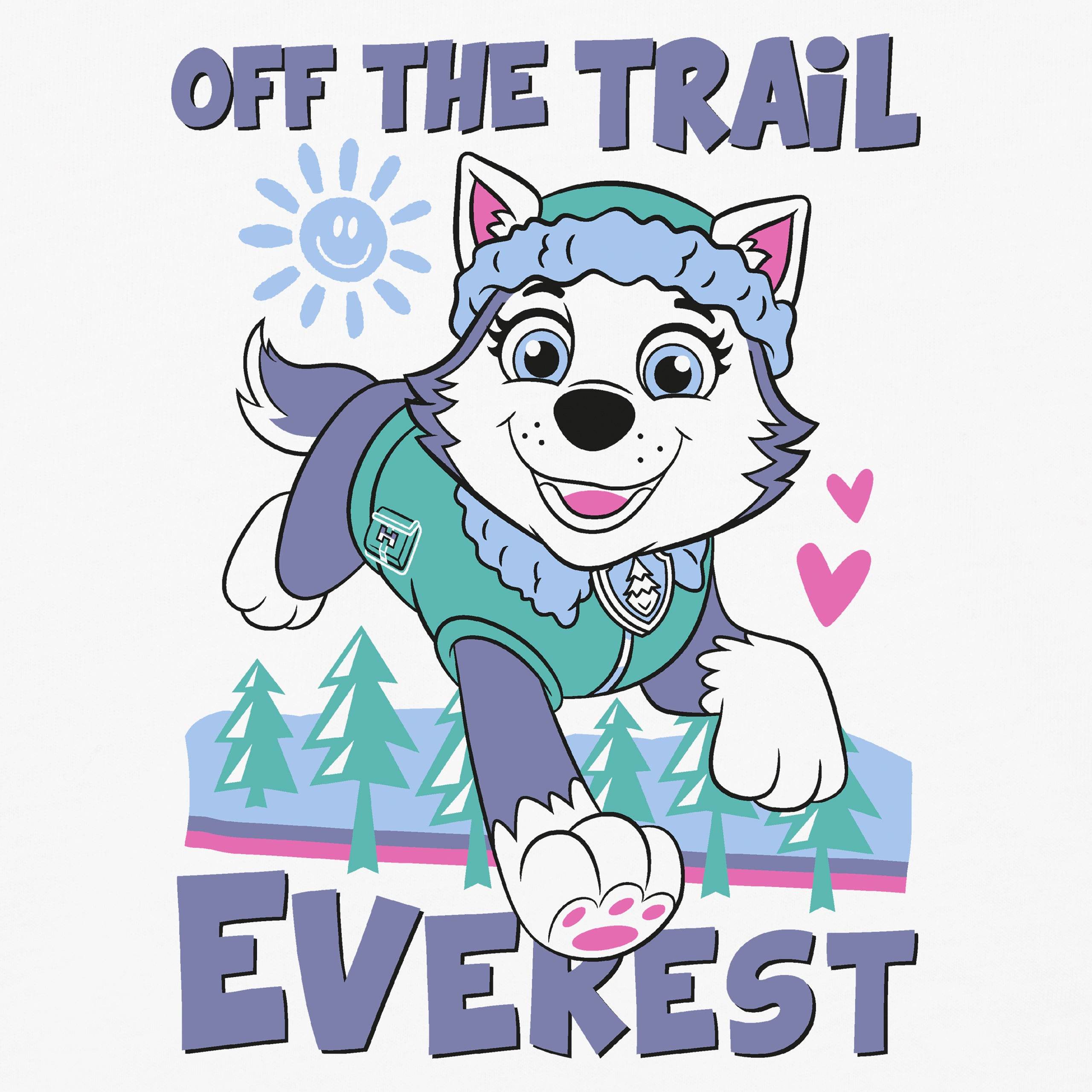 • Everest's Expedition: The white tee features Everest against a backdrop of green trees with the cool phrase "Off The Trail Everest" in sleek grey.