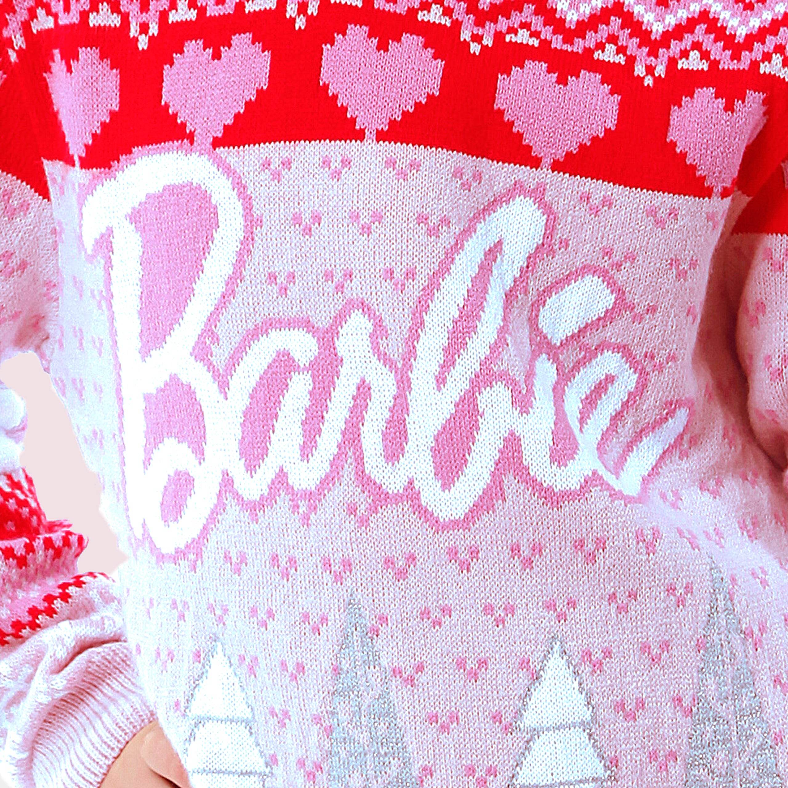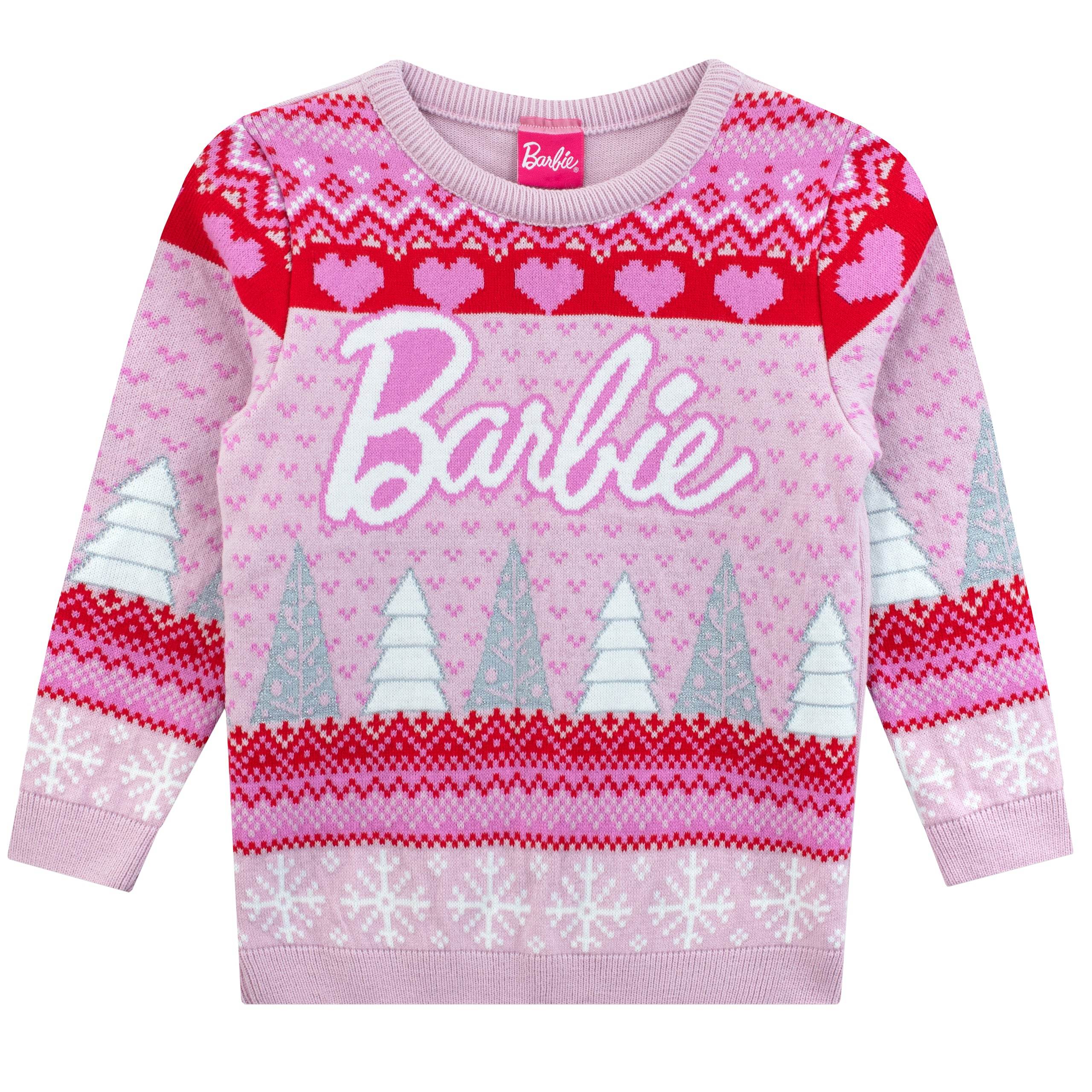 Twirl into the festive season with this Barbie Christmas jumper, splashed with fun pink, red, and white patterns! With glittering tree details, they'll shine brighter than any Christmas light. Snug long sleeves keep you toasty all winter, This Barbie Christmas sweatshirt is perfect for any fashionista to celebrate the festive season in style!