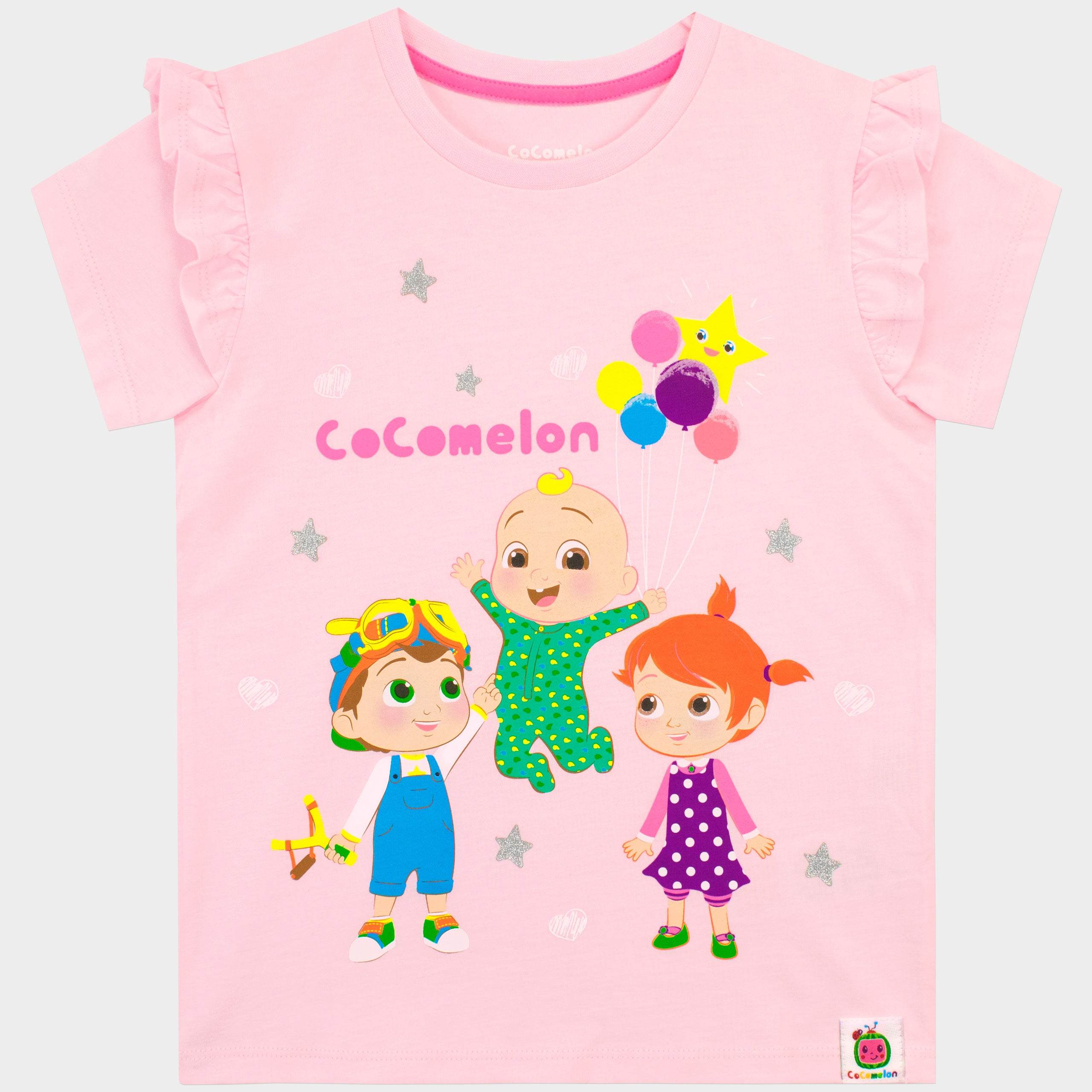 Get ready to be learning your ABCs in this cute CoComelon T-shirt. Inspired by the educational Youtube series this cute pink short sleeve tee features the characters TomTom, YoYo and JJ holding some balloons. Surrounded by the wording CoComelon, white hearts and silver glitter stars. Completing the look with a cute frill on the sleeve which is perfect for dancing along to nursery rhymes. This daywear also features a super sweet hem tag of the CoComelon logo. Perfect for any CoComelon fans to sing along in.
