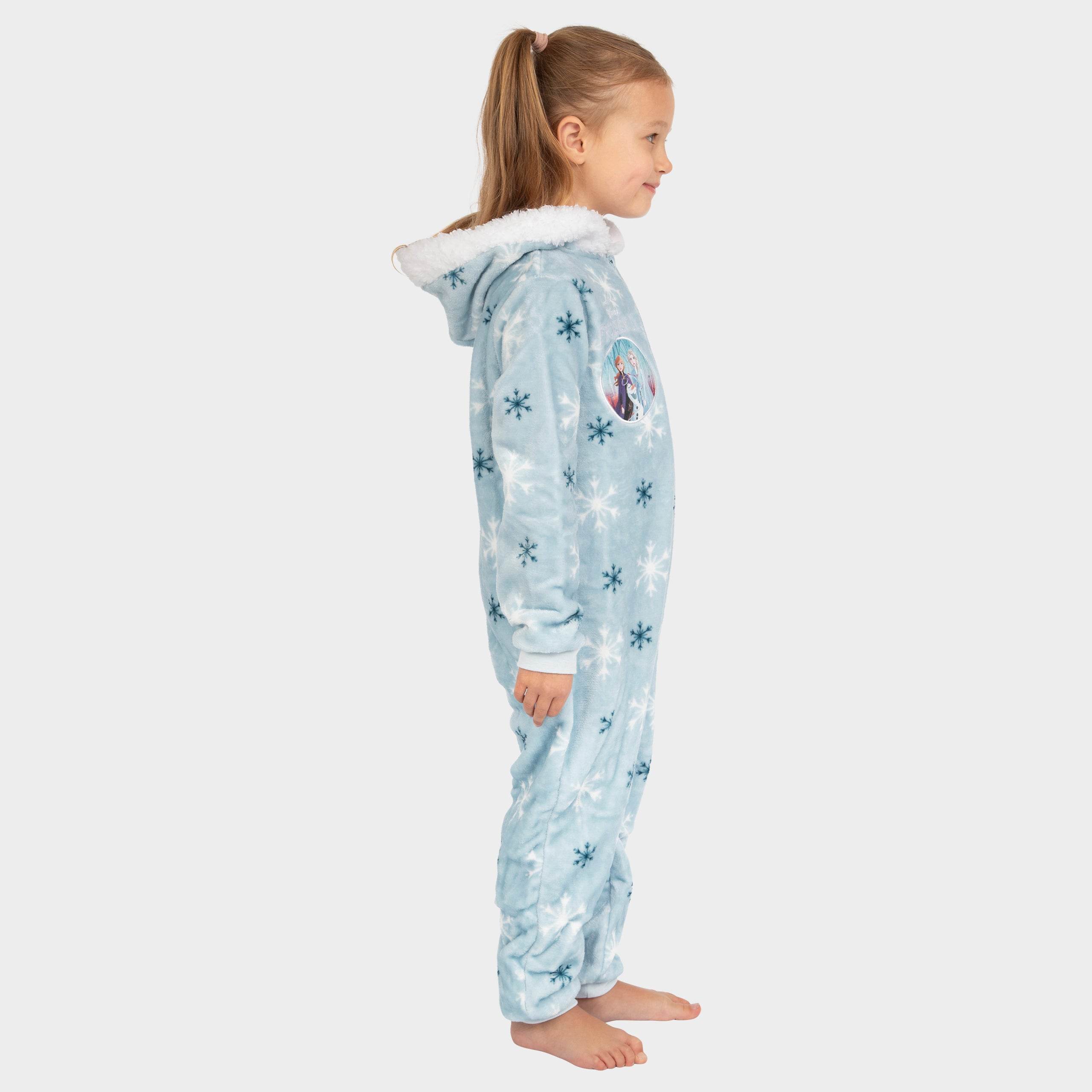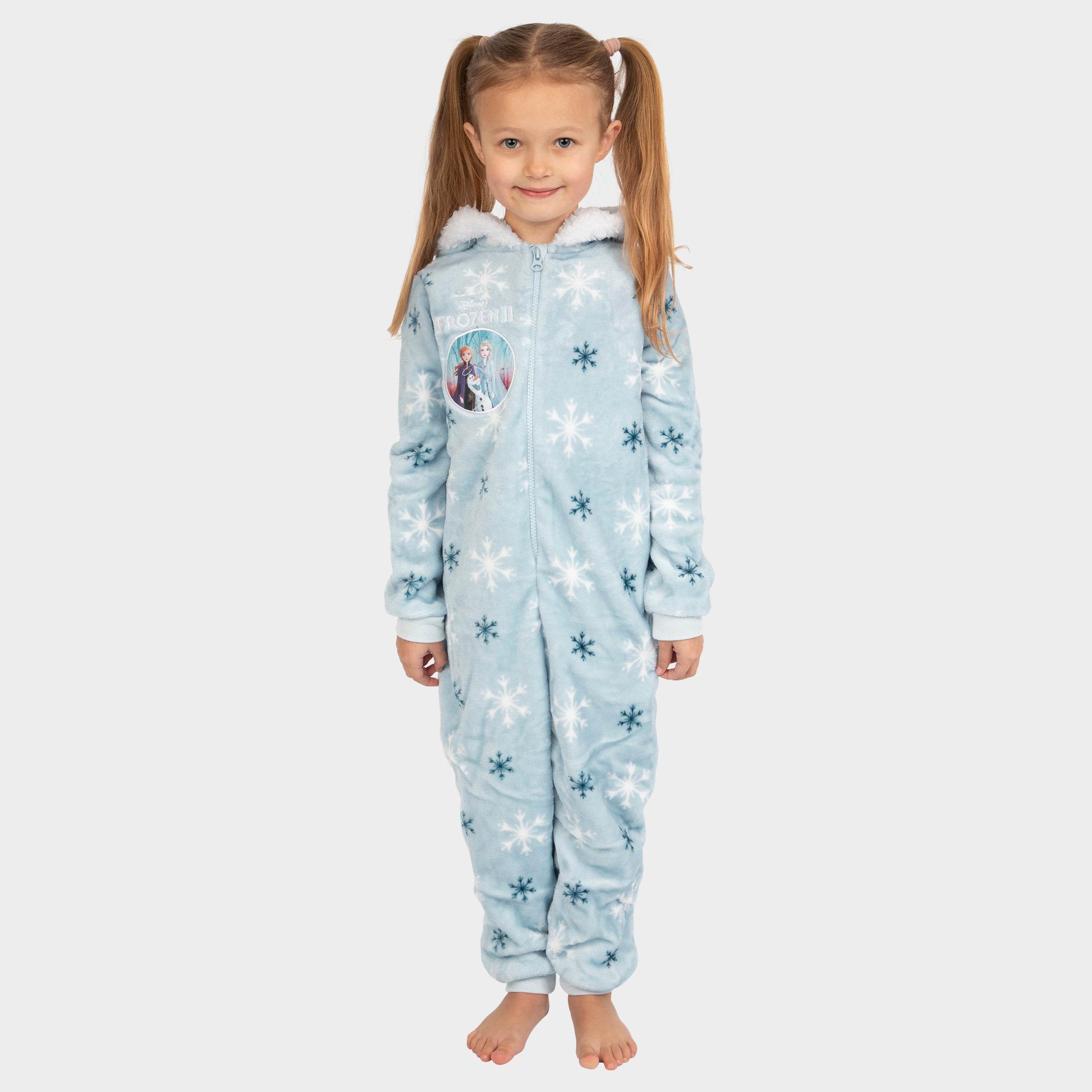 Keep your little Frozen fan cosy and warm on icy days with this magical Disney Frozen all-in-one! This magical hooded sleepsuit features an all over motif of blue and white snowflakes with embroidered wording ' From the movie Disney Frozen 2' and a print of Arendelle's royal sisters Anna and Elsa with Olaf the snowman. Complete with a zip down the middle and soft fleece material, and a fur lined hood. The perfect pyjamas for sleepovers in Arendelle Castle with Elsa, Anna, Kristoff, Olaf and Sven!