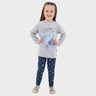 The cold won't bother you in this adorable top and leggings set! The long sleeve top in grey marl showcases a bold illustration of Elsa amidst blue glitter snowflakes and 'Elsa' in navy embroidery. Paired with denim-effect leggings with an all-over motif of silver glitter snowflakes, this ensemble will be a perfect addition to your Frozen fanatic's wardrobe!