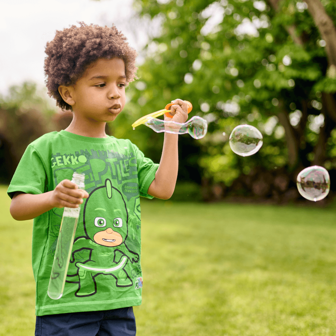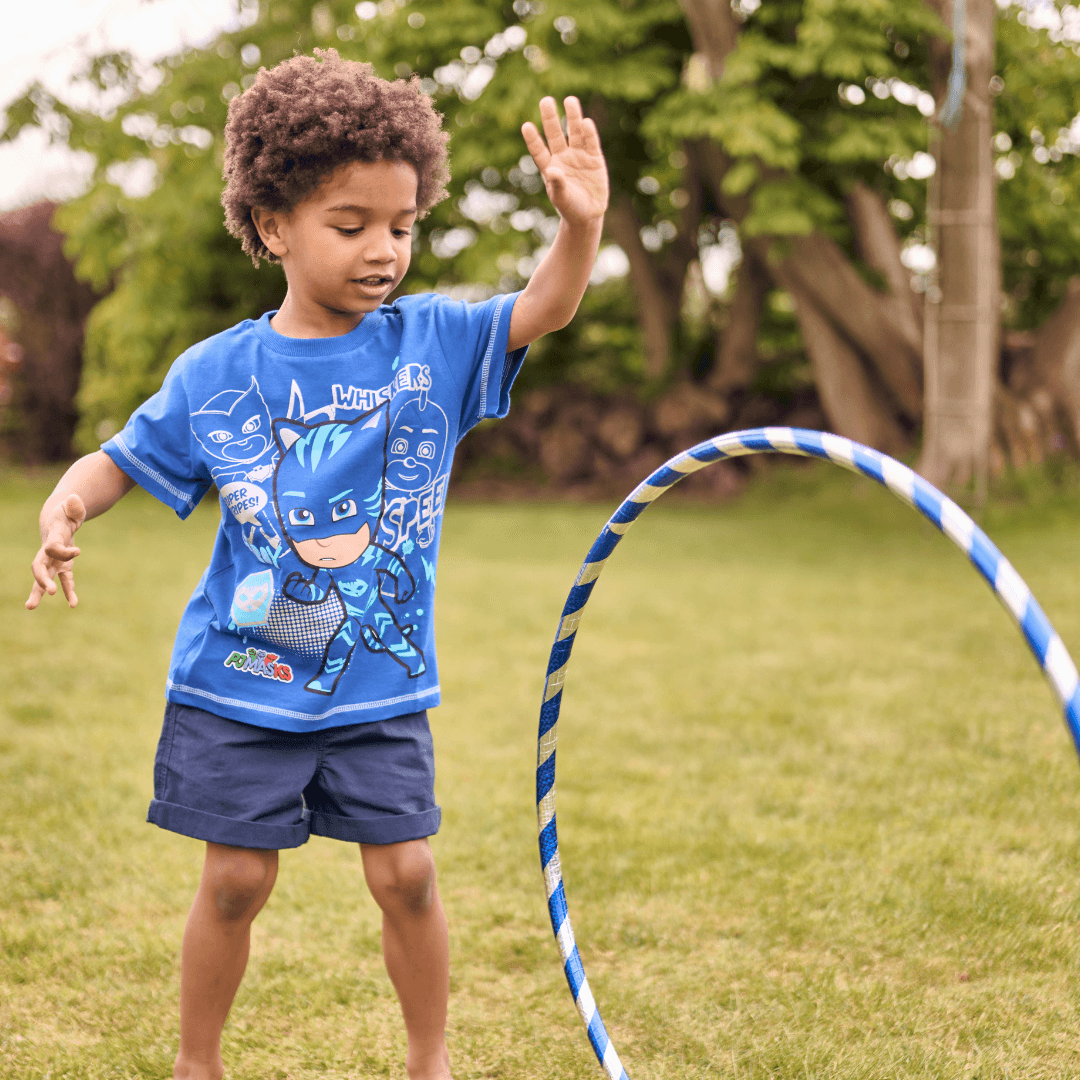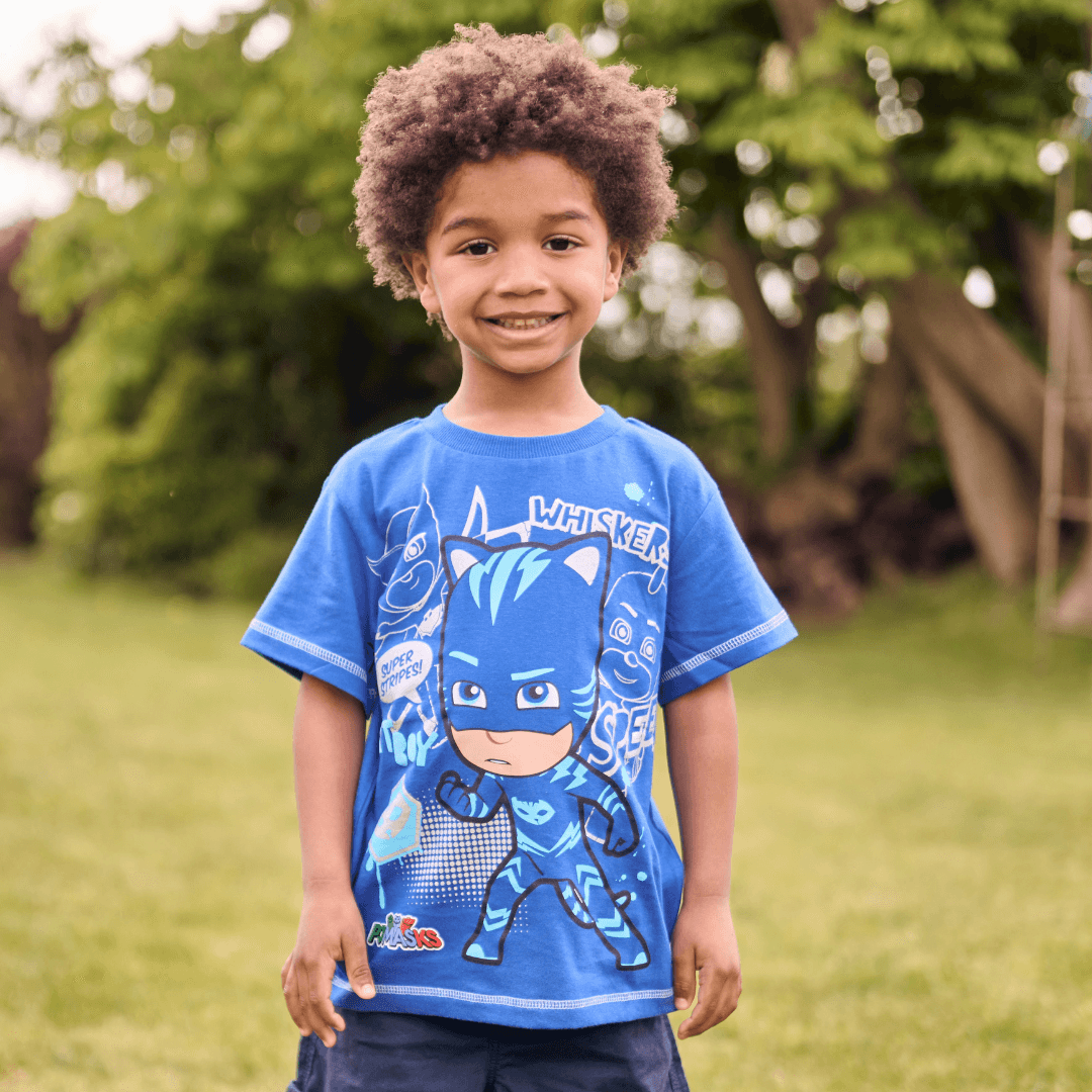 Your superhero will be speeding around with super cat speed in this awesome PJ Masks tee! In a beautiful blue and featuring a large print of Catboy on the front surrounded by prints of Owlette and Gekko in silver glitter, your little one will be leaping to the rescue when adventure beckons in this super top!