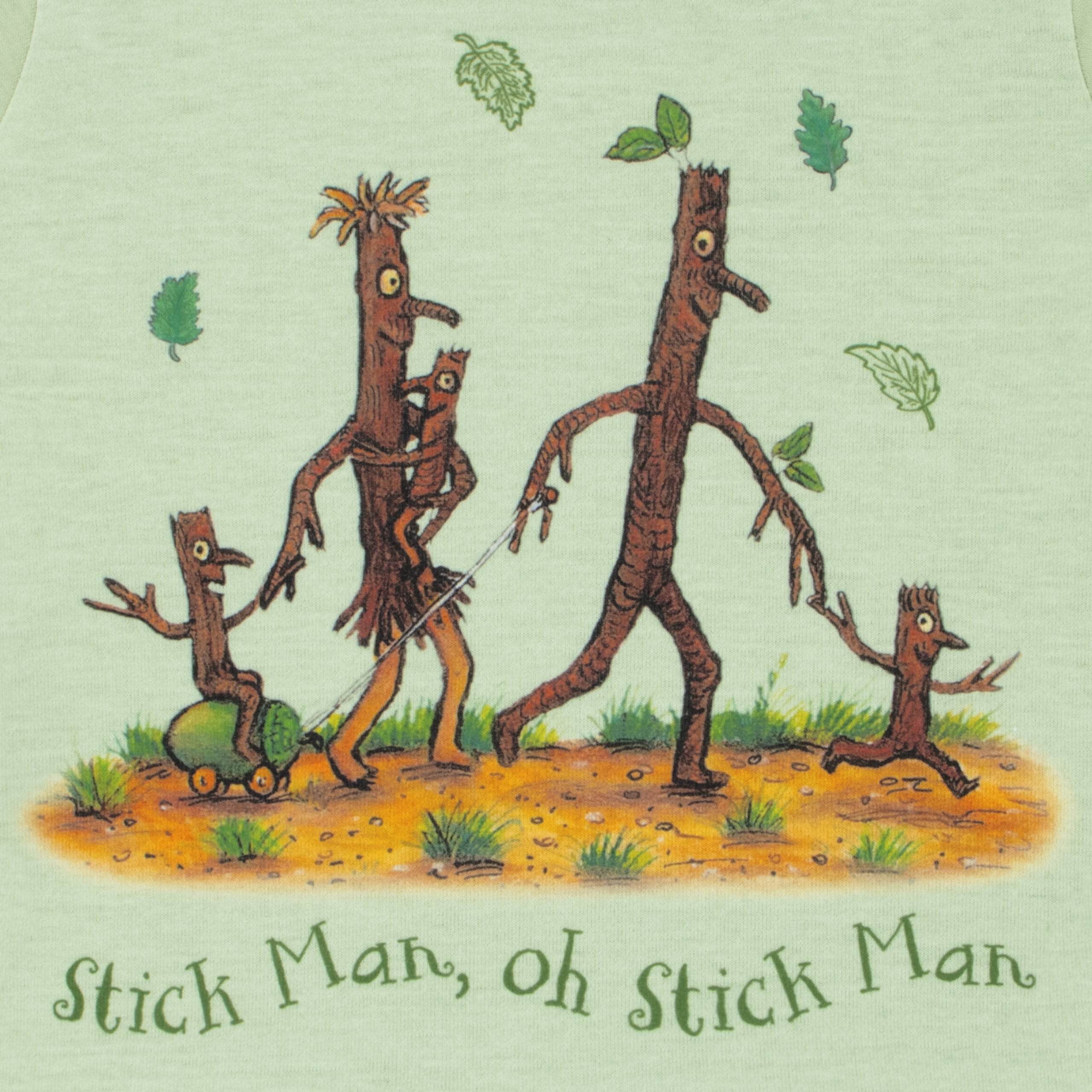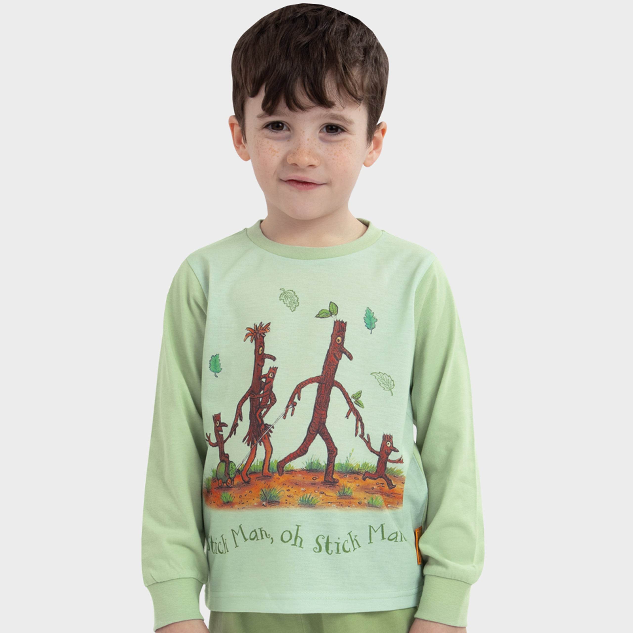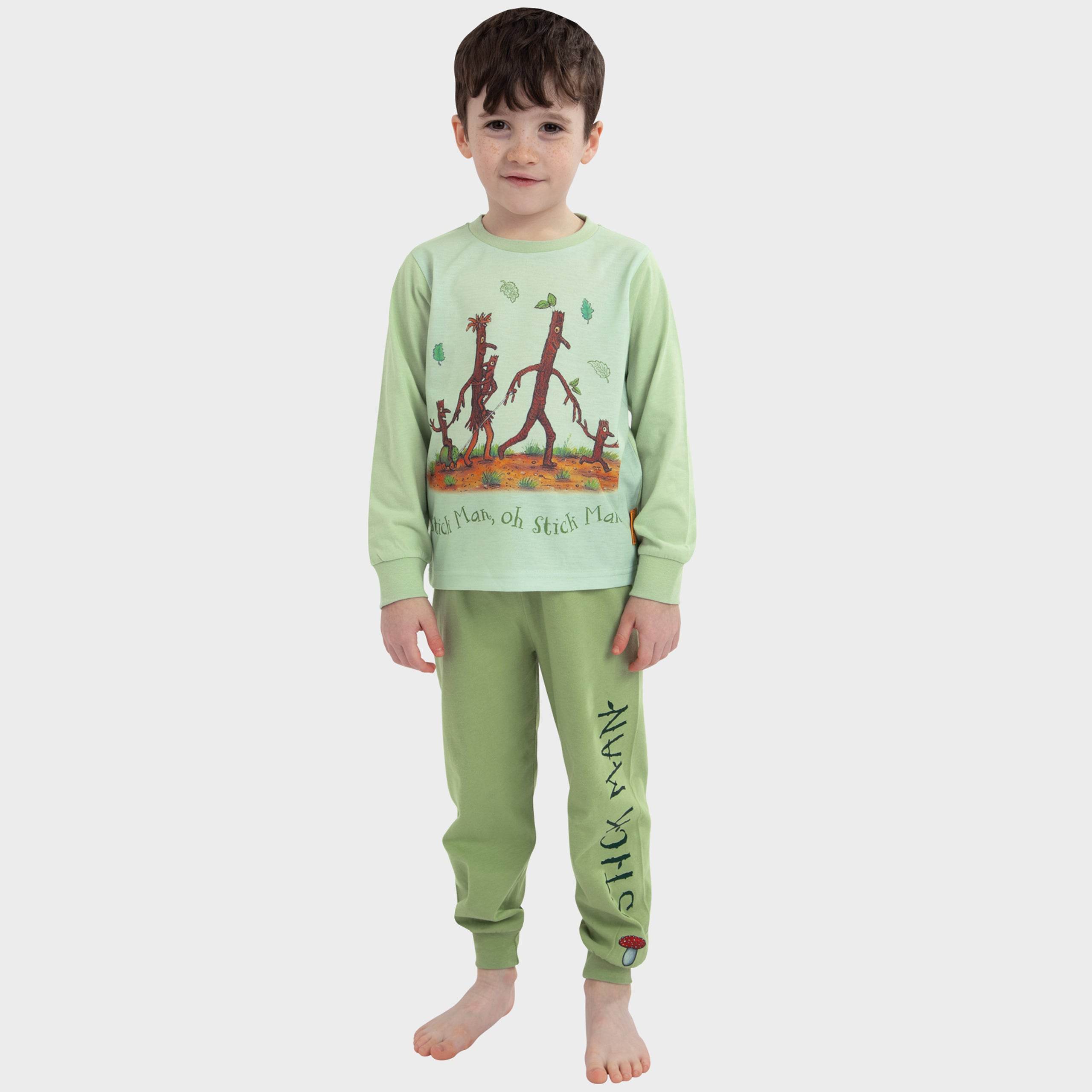 • Matching Magic Pyjamas: The darker green bottoms with "Stick Man" lettering and a cute mushroom detail complete the look.