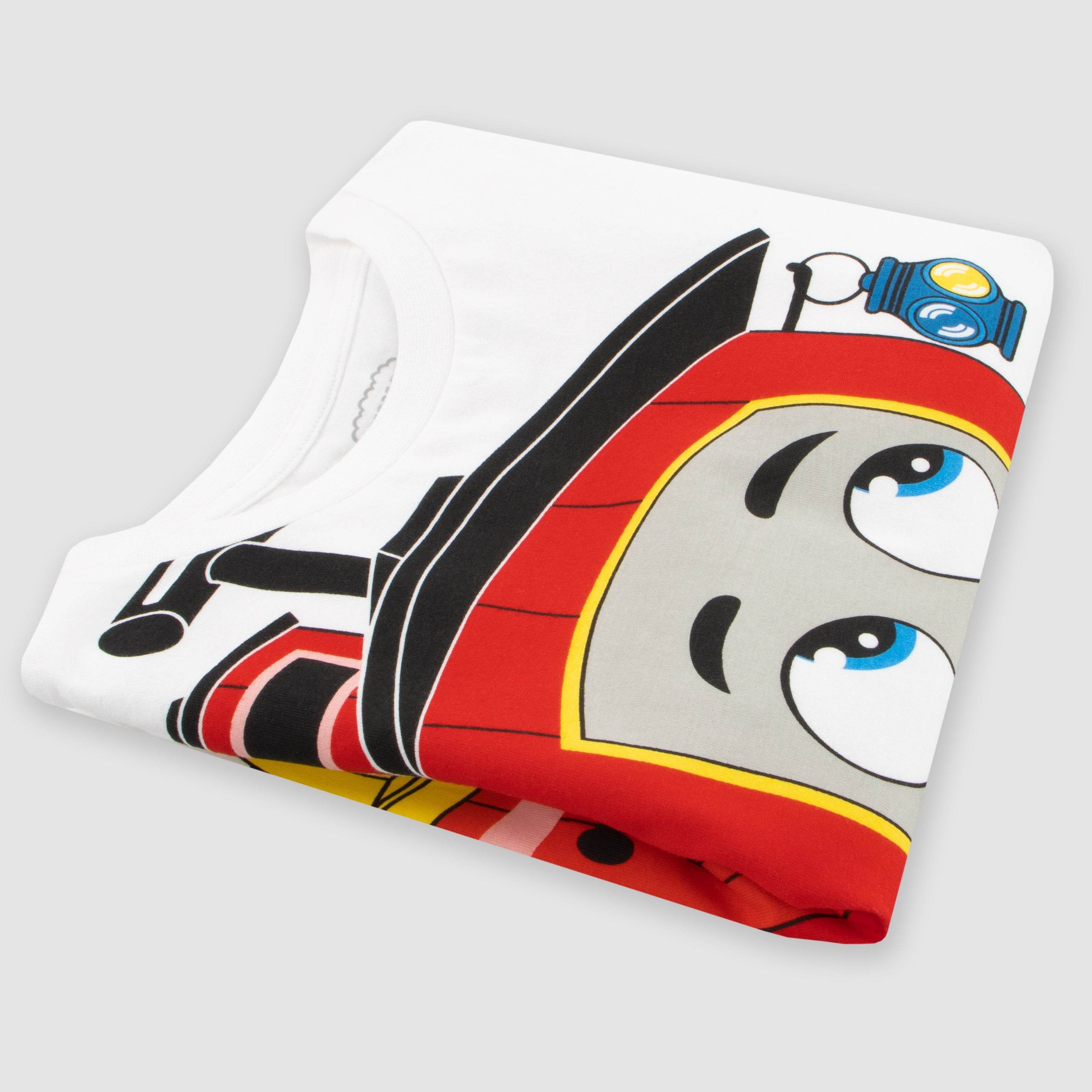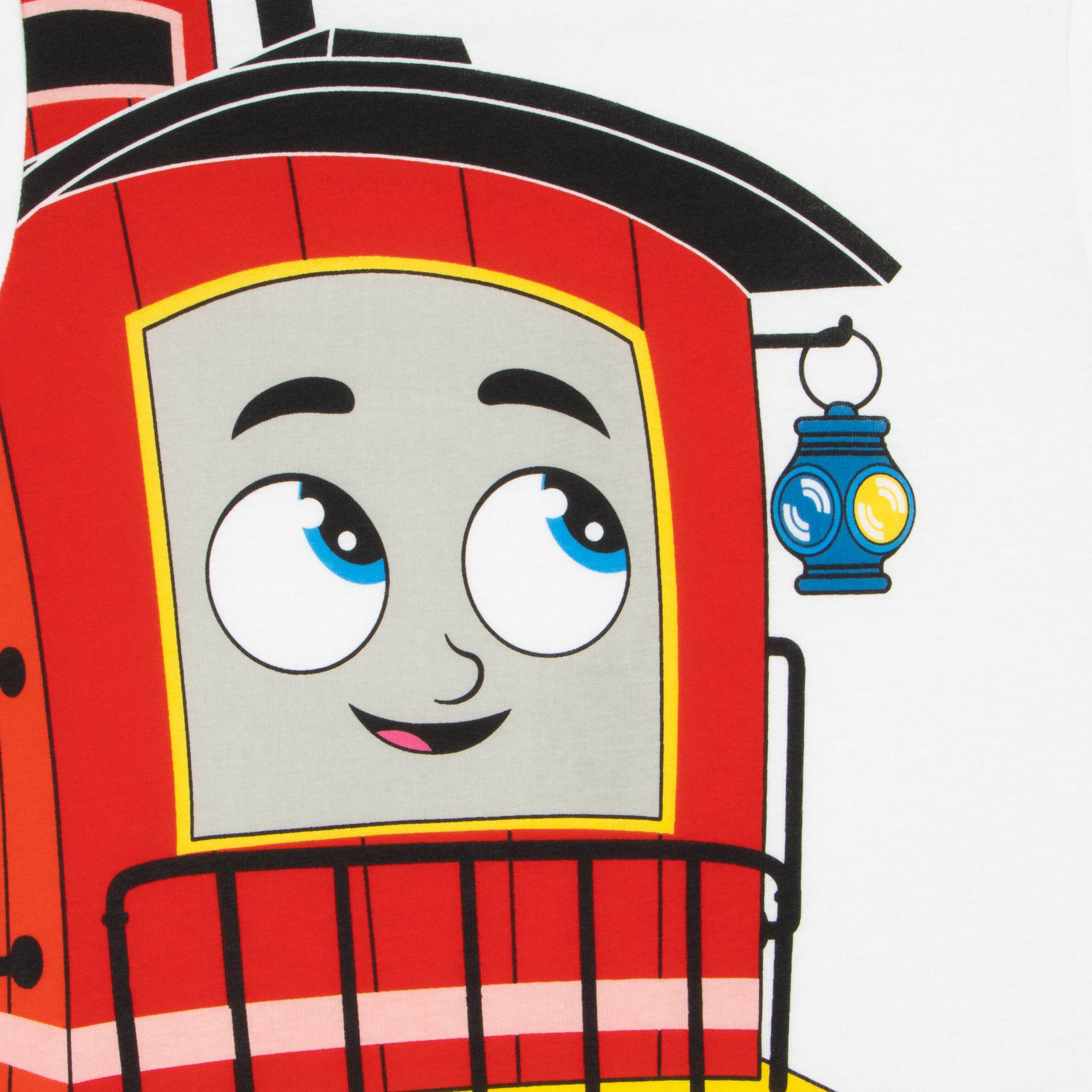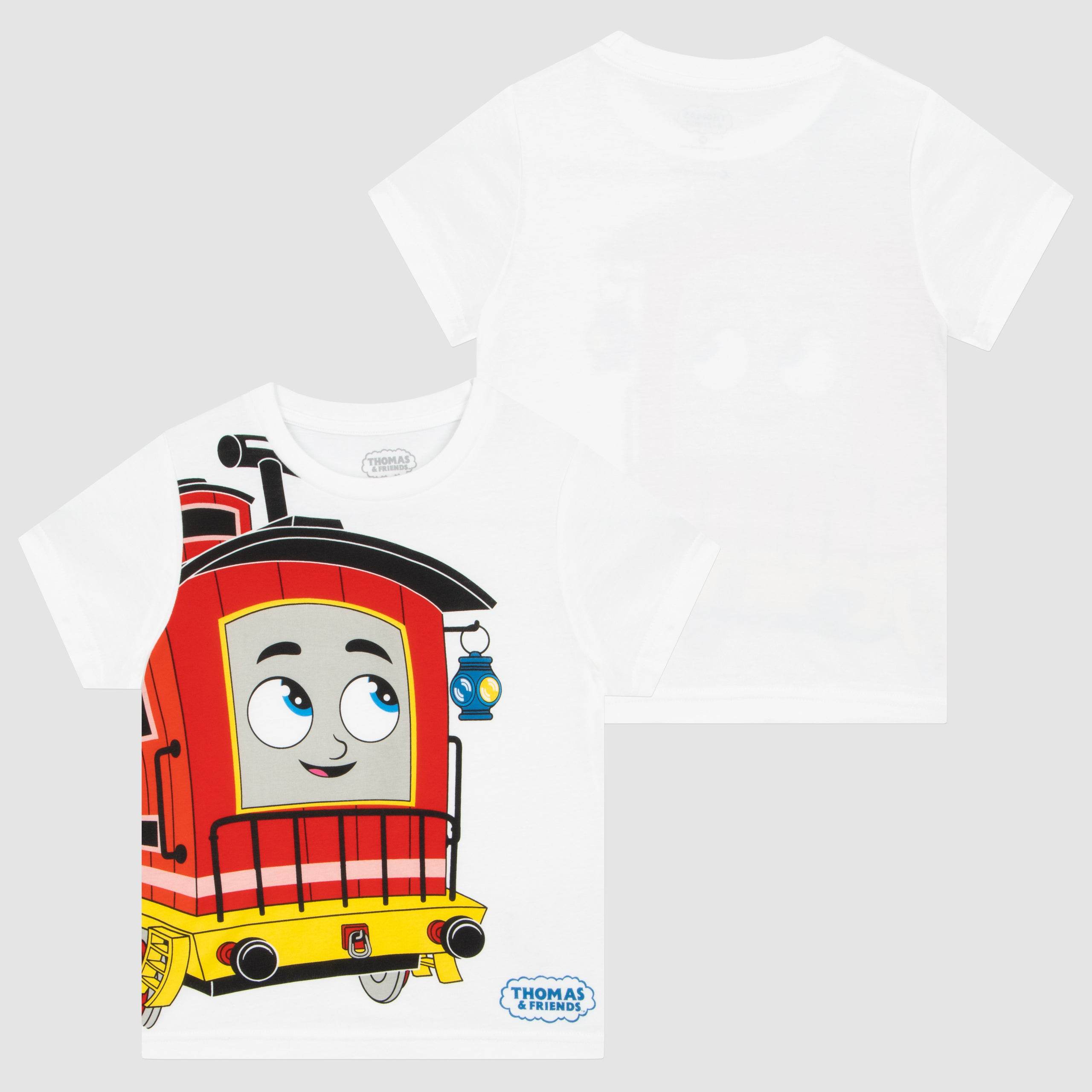 This delightful Thomas and Friends t shirt is a wardrobe essential for any young fan of the beloved tank engine series. With Bruno smiling broadly on the front, set against a pure white backdrop, it's sure to capture the heart of your little one. The vibrant blue logo of Thomas and Friends not only pops visually but also adds an extra layer of fun to this boys' tee. Perfect for playdates, adventures, or just lounging around, it's the go-to t-shirt for comfort and style on any occasion.