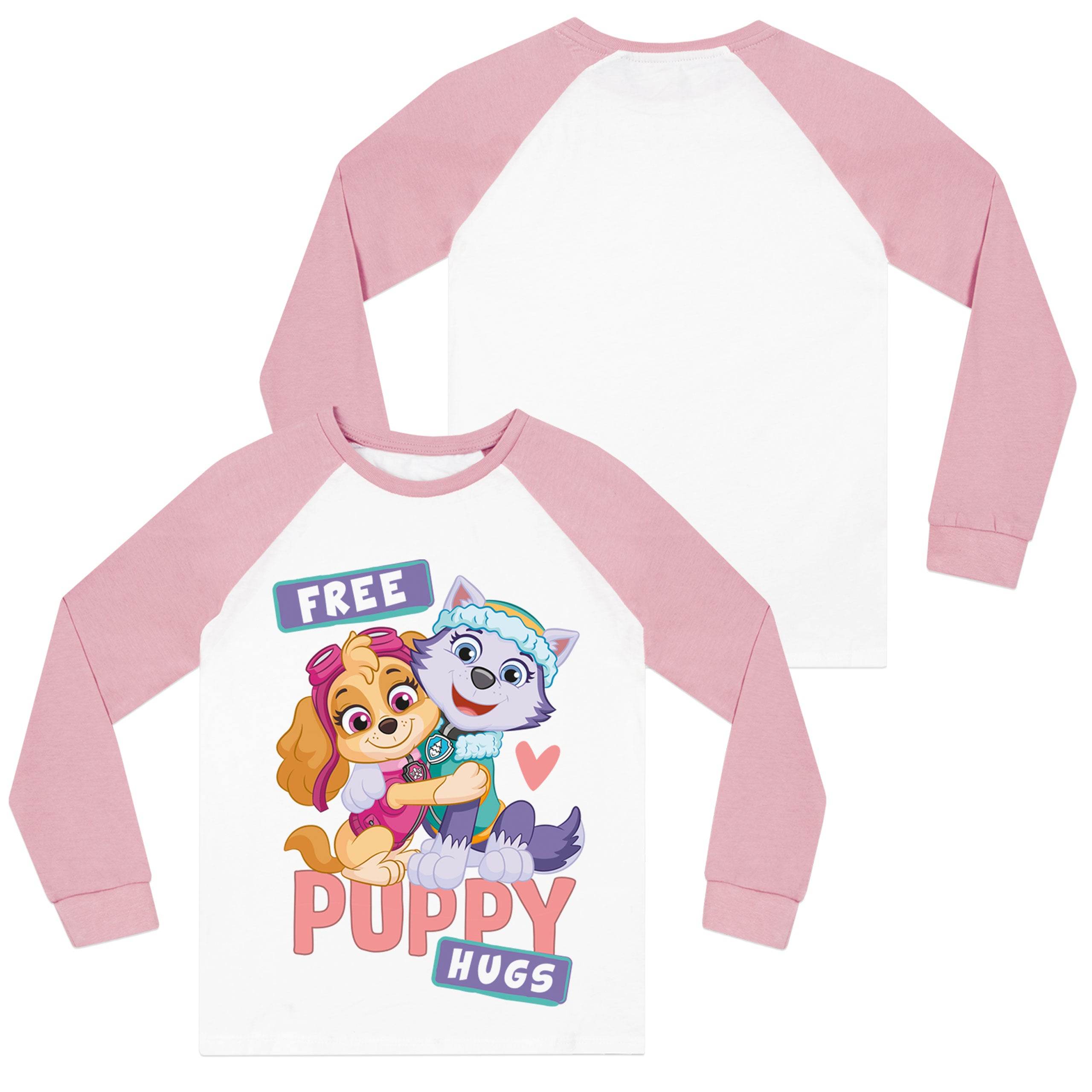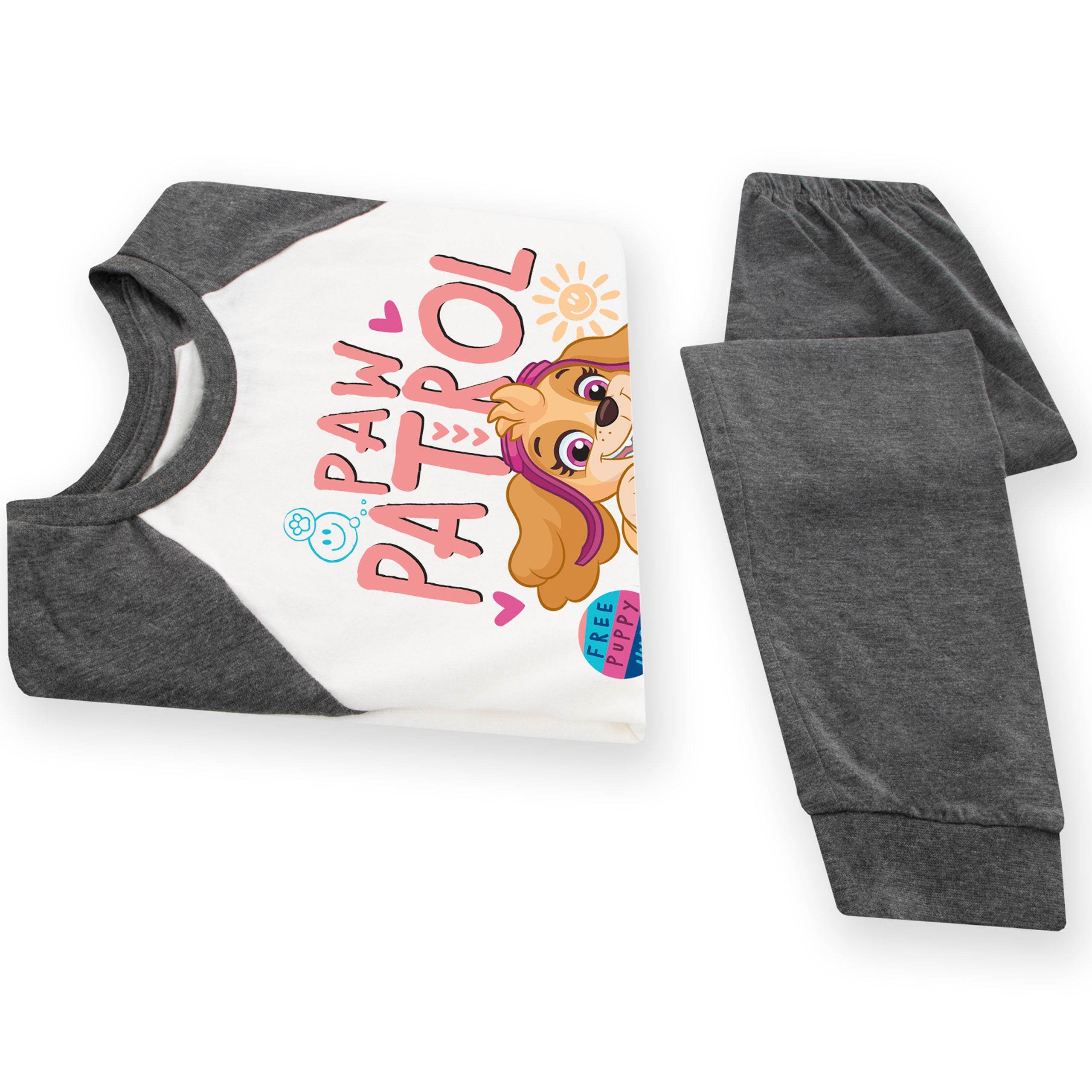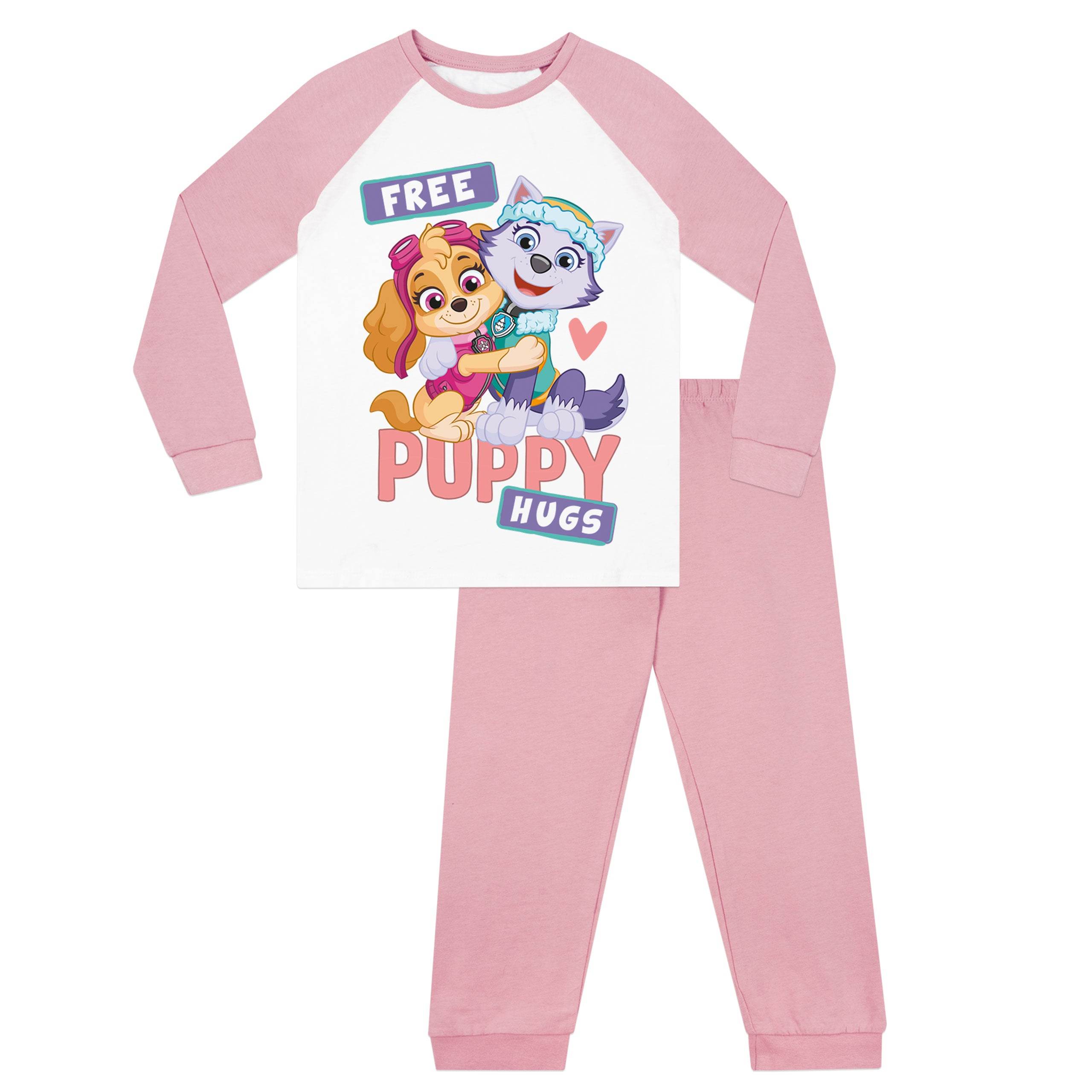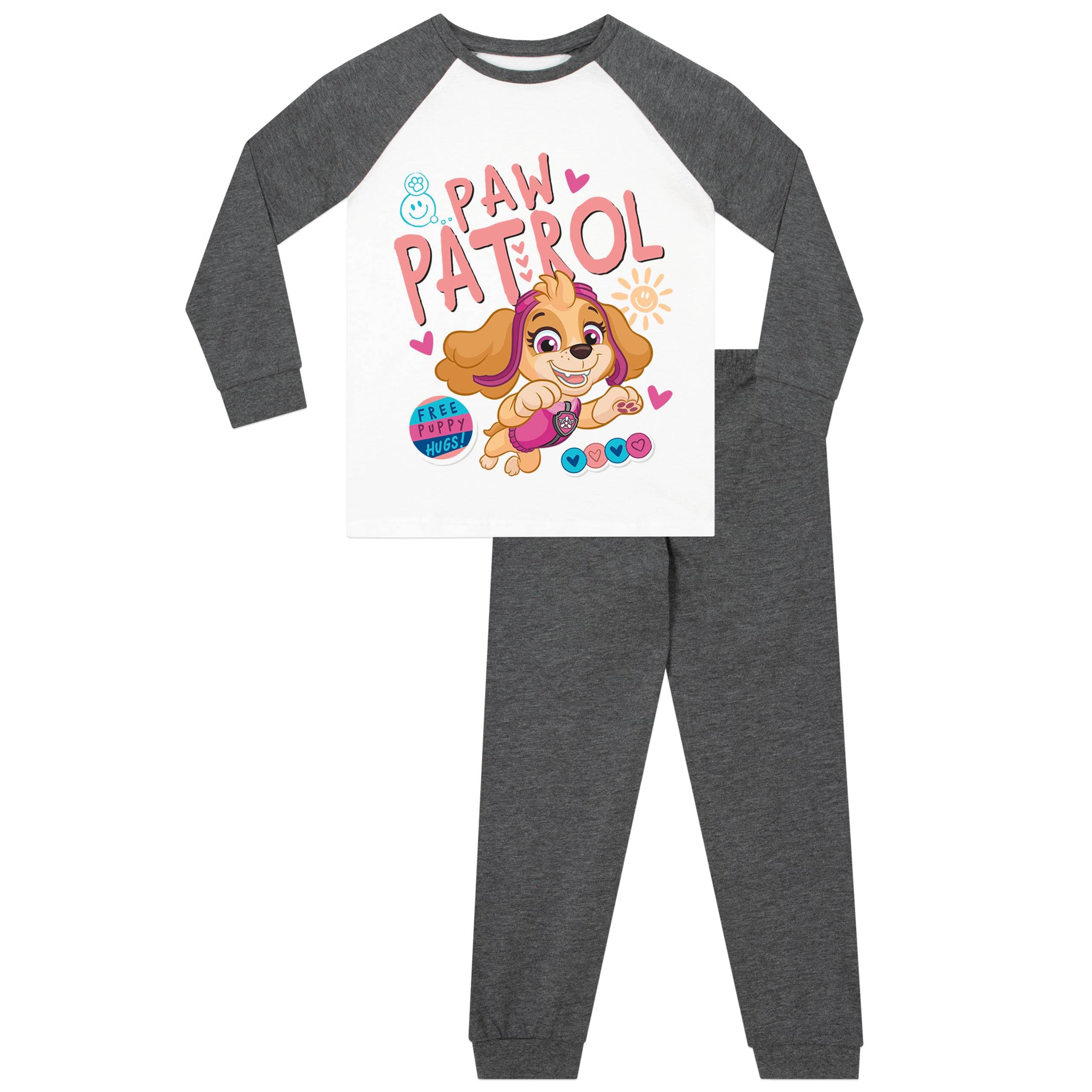 • Fun PAW Patrol Design: These pyjamas come in two fun styles: a pink pair with "Free Puppy Hugs" featuring Skye and Everest, and a dark grey pair with Skye surrounded by hearts and smiling suns.