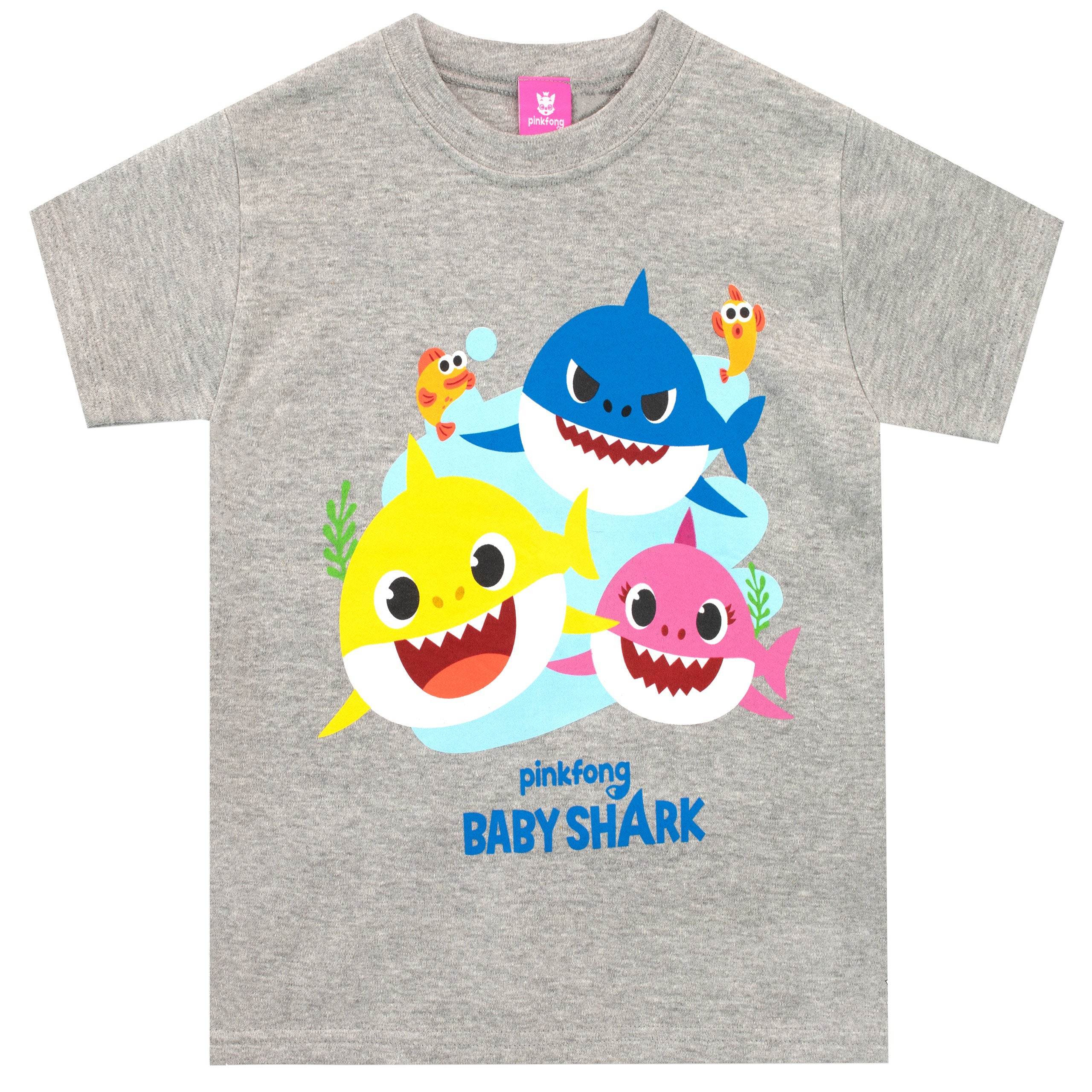 Baby Shark doo doo doo doo doo doo doo! Just like the song, you won't be able to get your little one out of this top! In a soft grey marl fabric and featuring the famous trio of Baby, Mama, and Daddy Shark on the front, this t-shirt is perfect for die-hard fans of the iconic song!