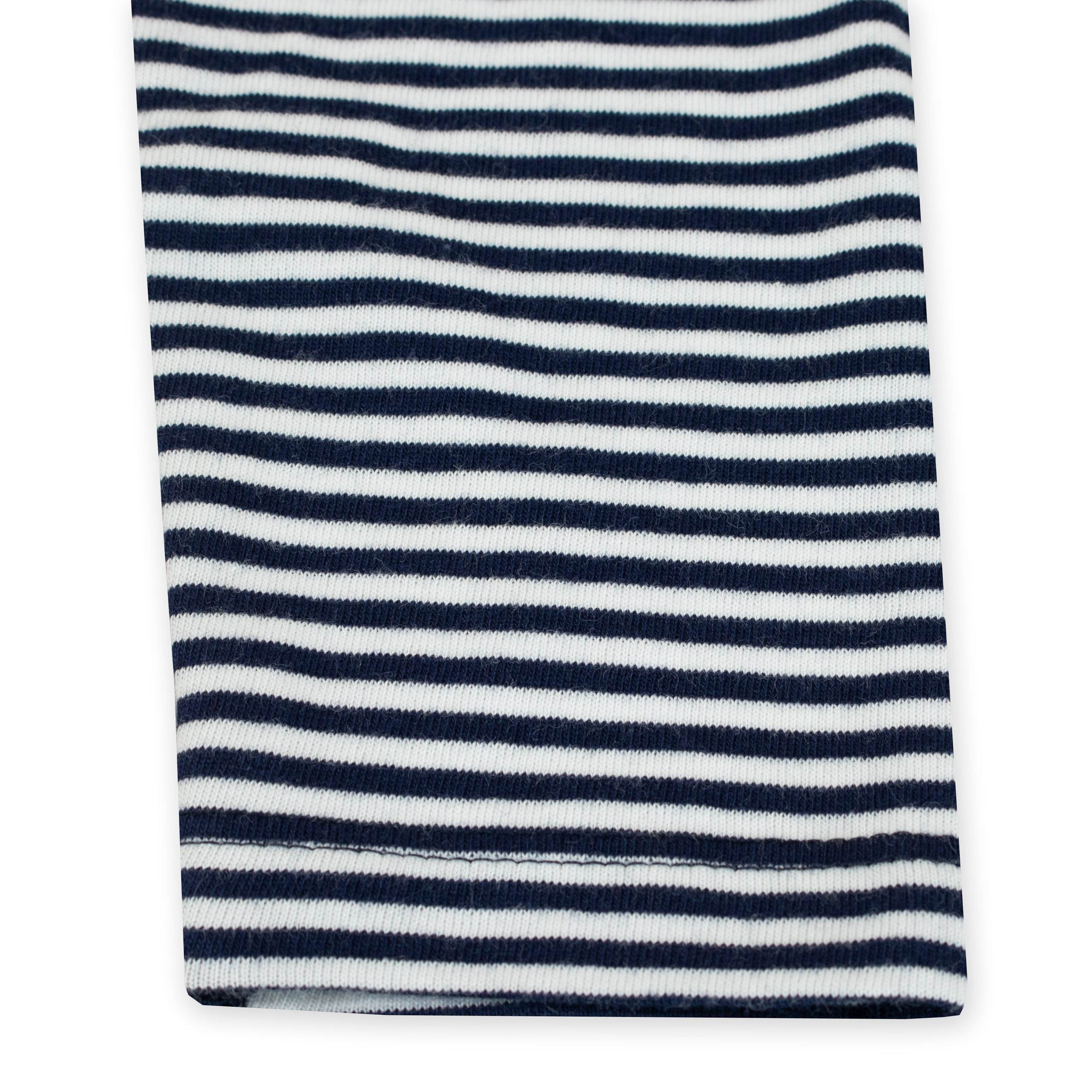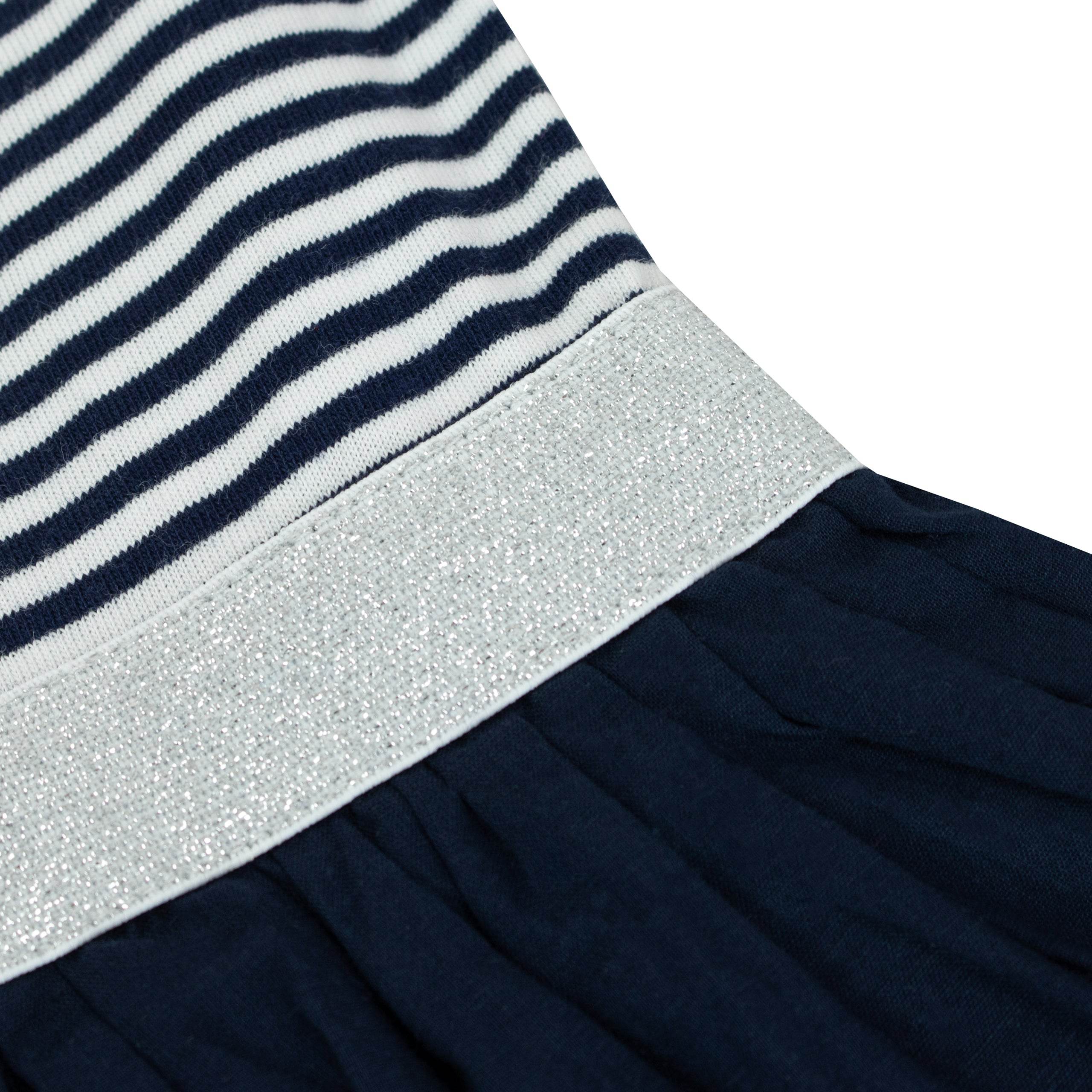 • Striped blue & white top meets a floral navy skirt, all cinched with a shimmering silver glitter waistband.
