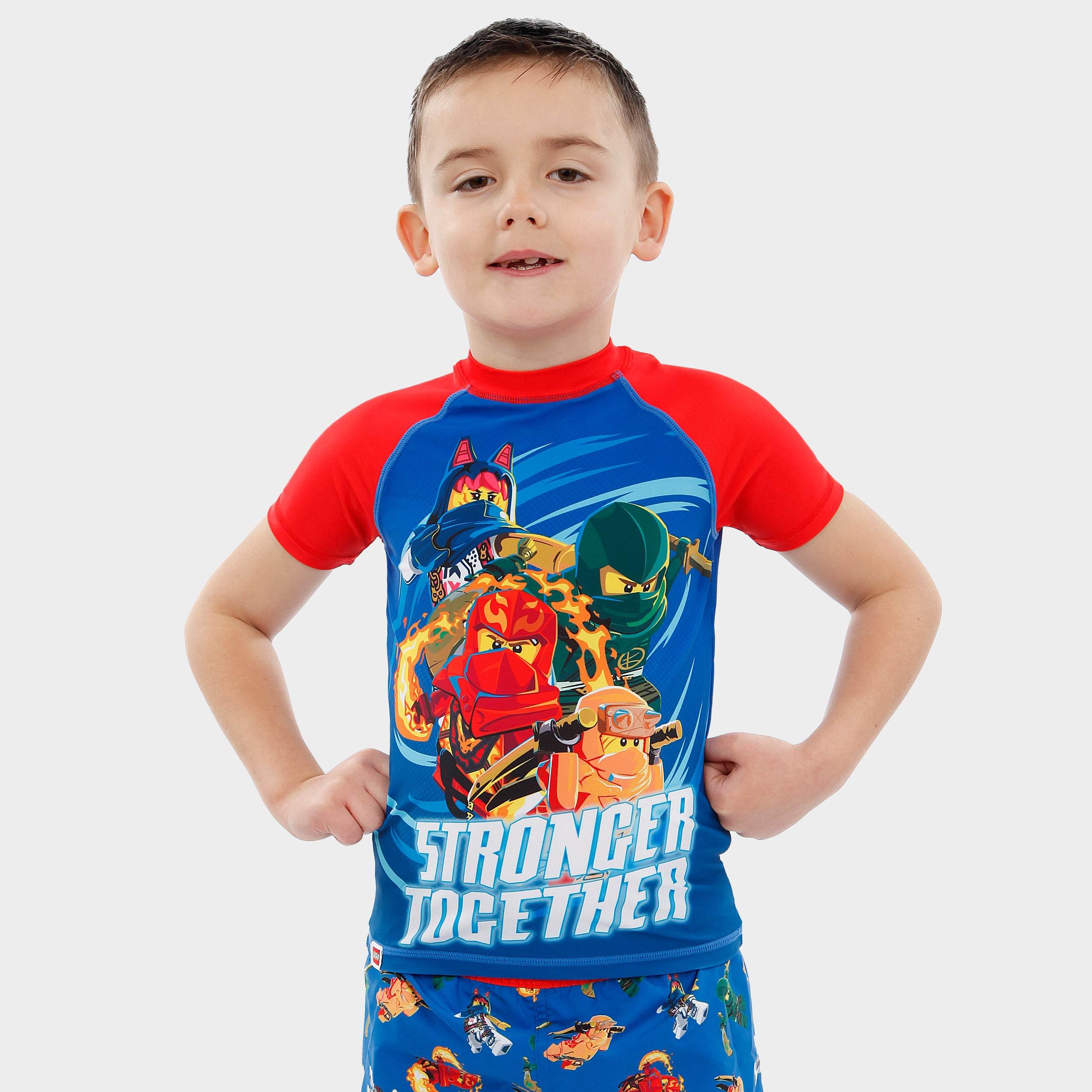 • Stylish LEGO Swimwear: Dive into action with the Boys LEGO Ninjago swim set, showcasing a swimming top with vibrant red short sleeves and a central design adorned with Kai, Lloyd and friends because every water adventure needs a touch of ninja flair!