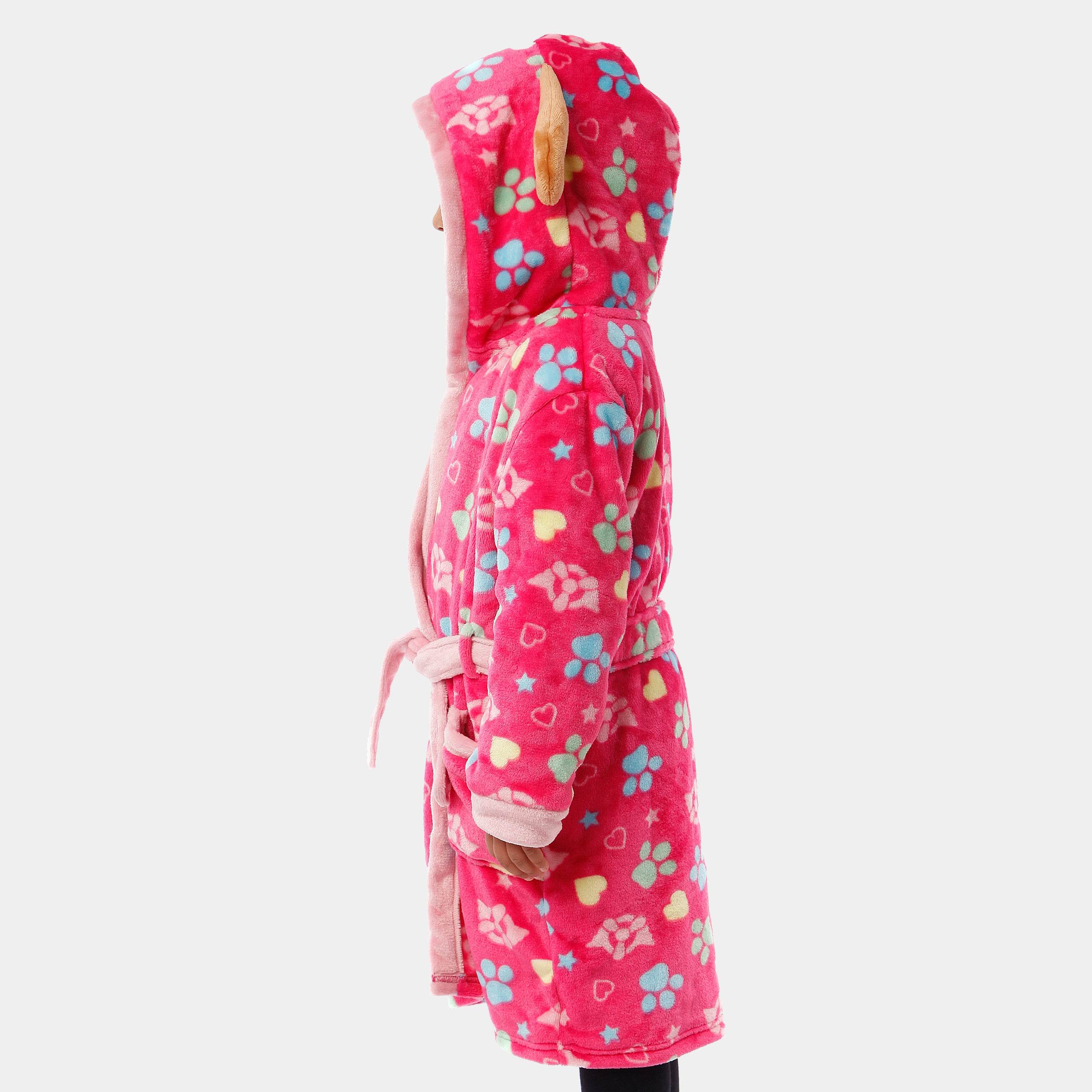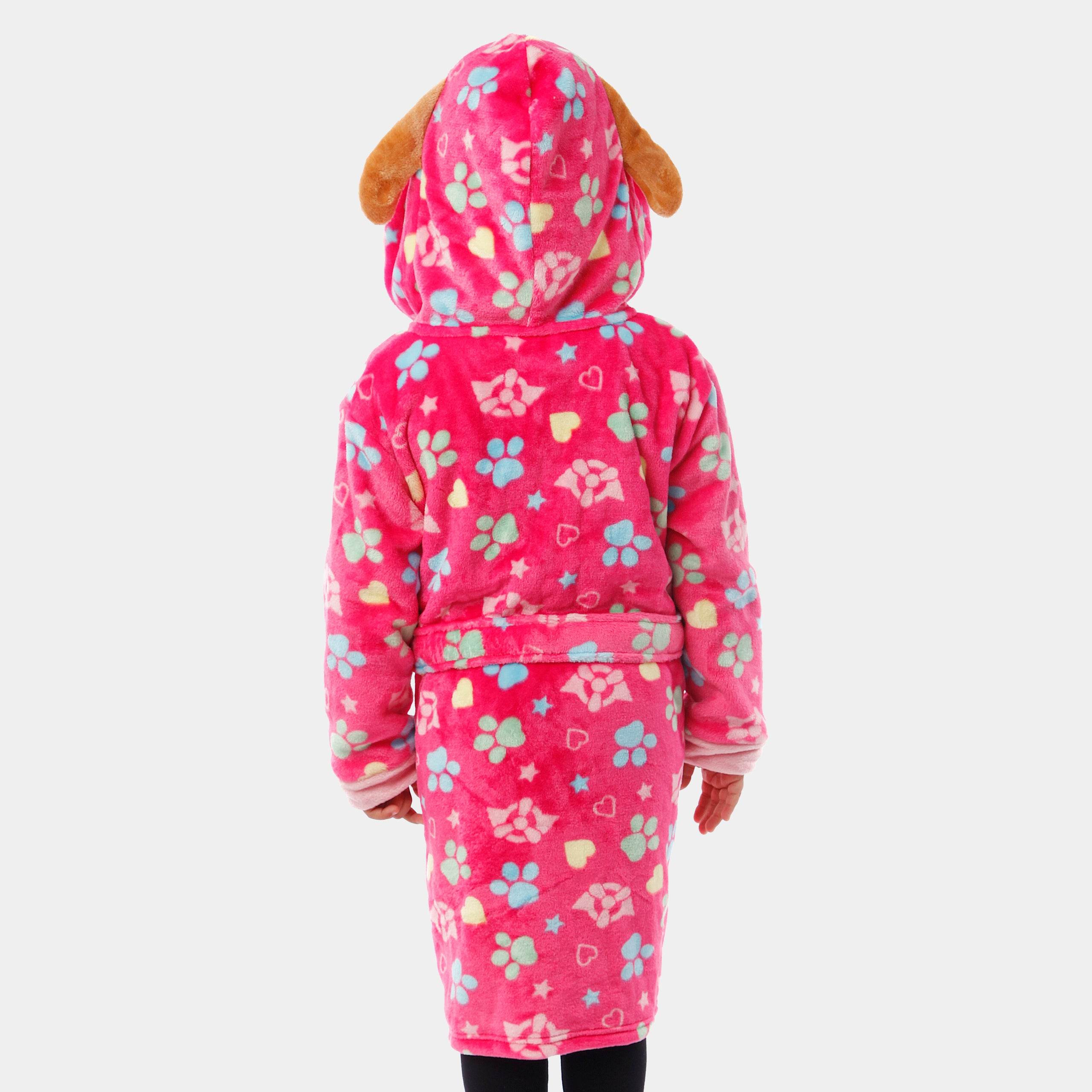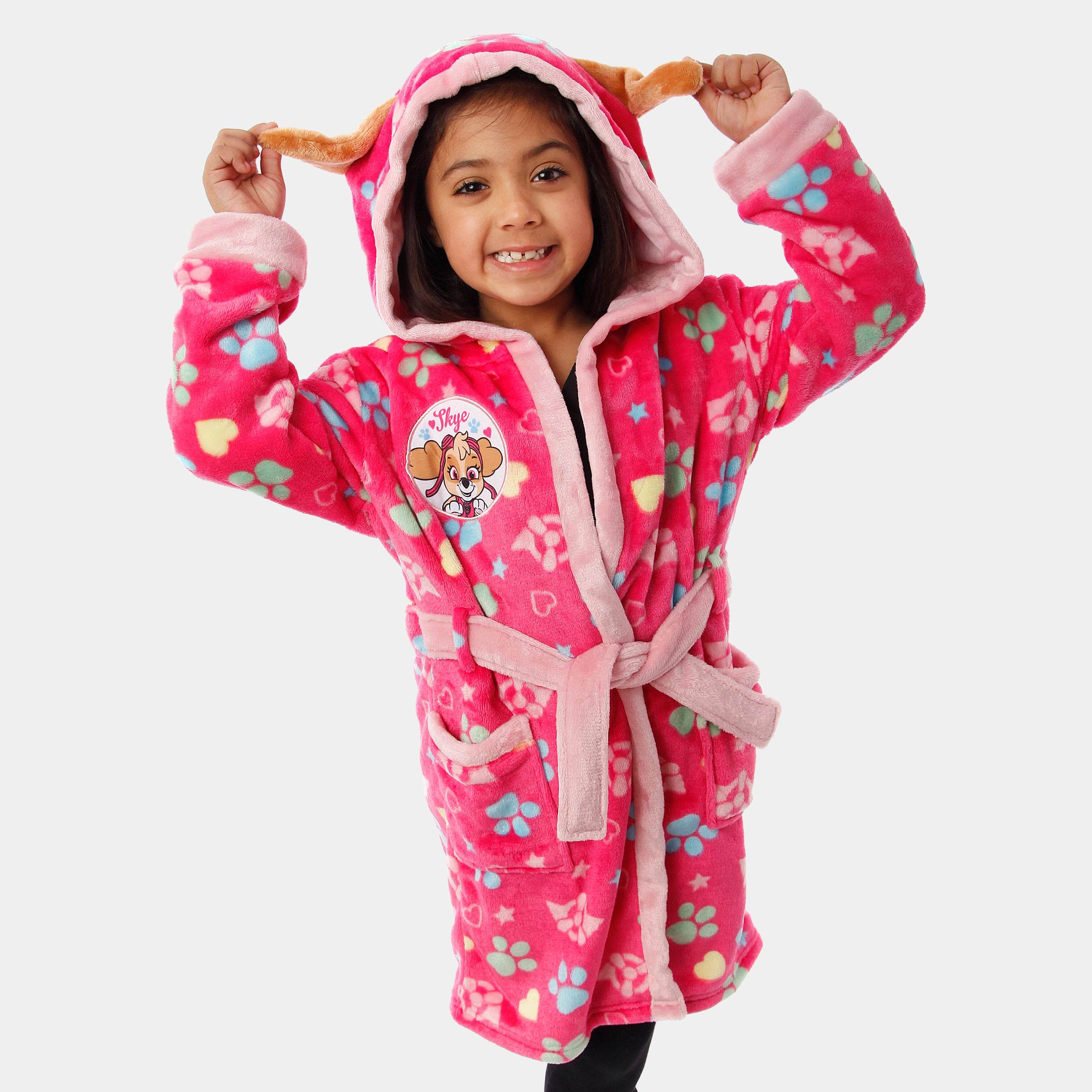 • Paw-Some pink Skye robe with playful patterns of paws, stars, hearts and Skyes Emblem.