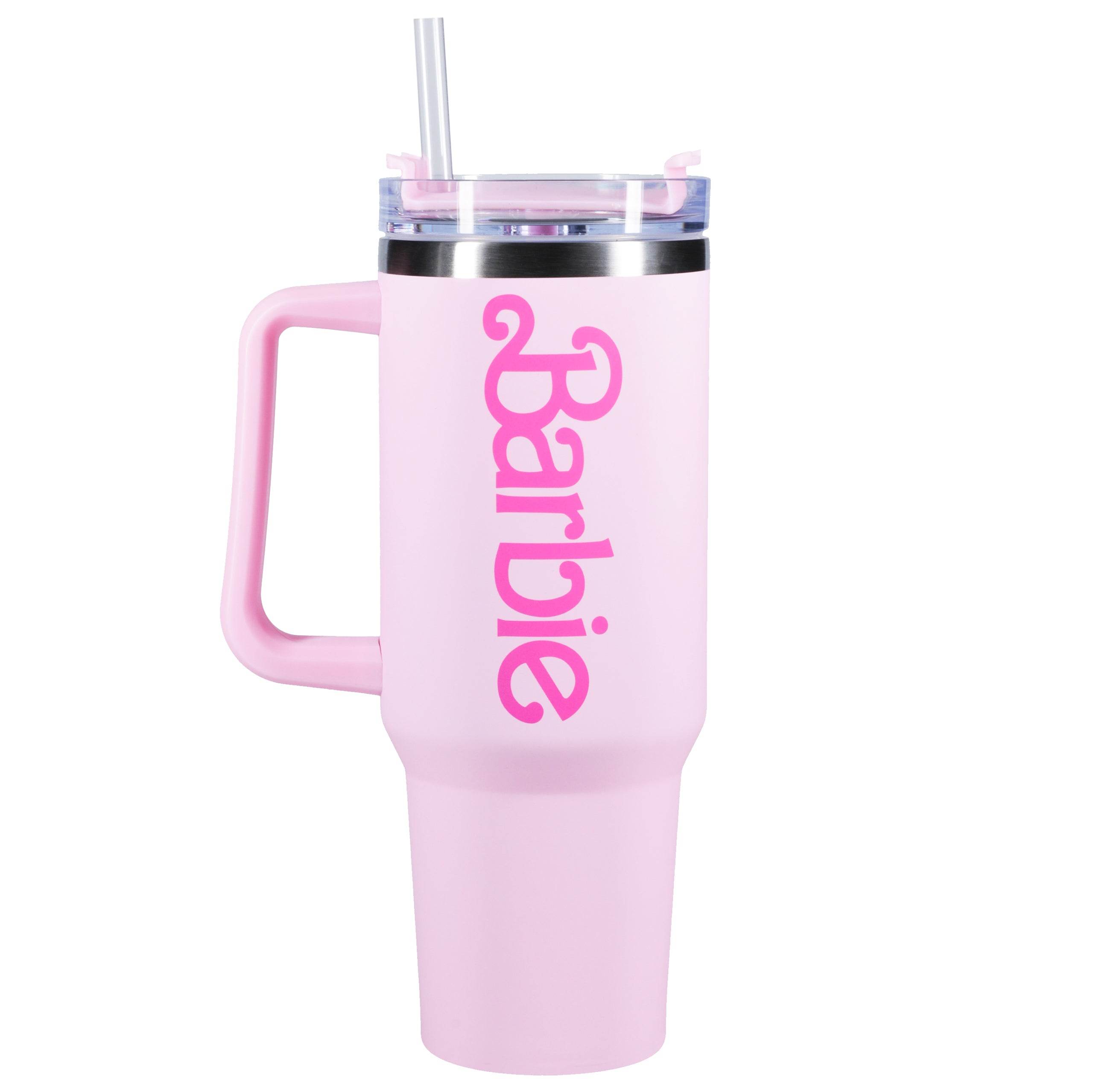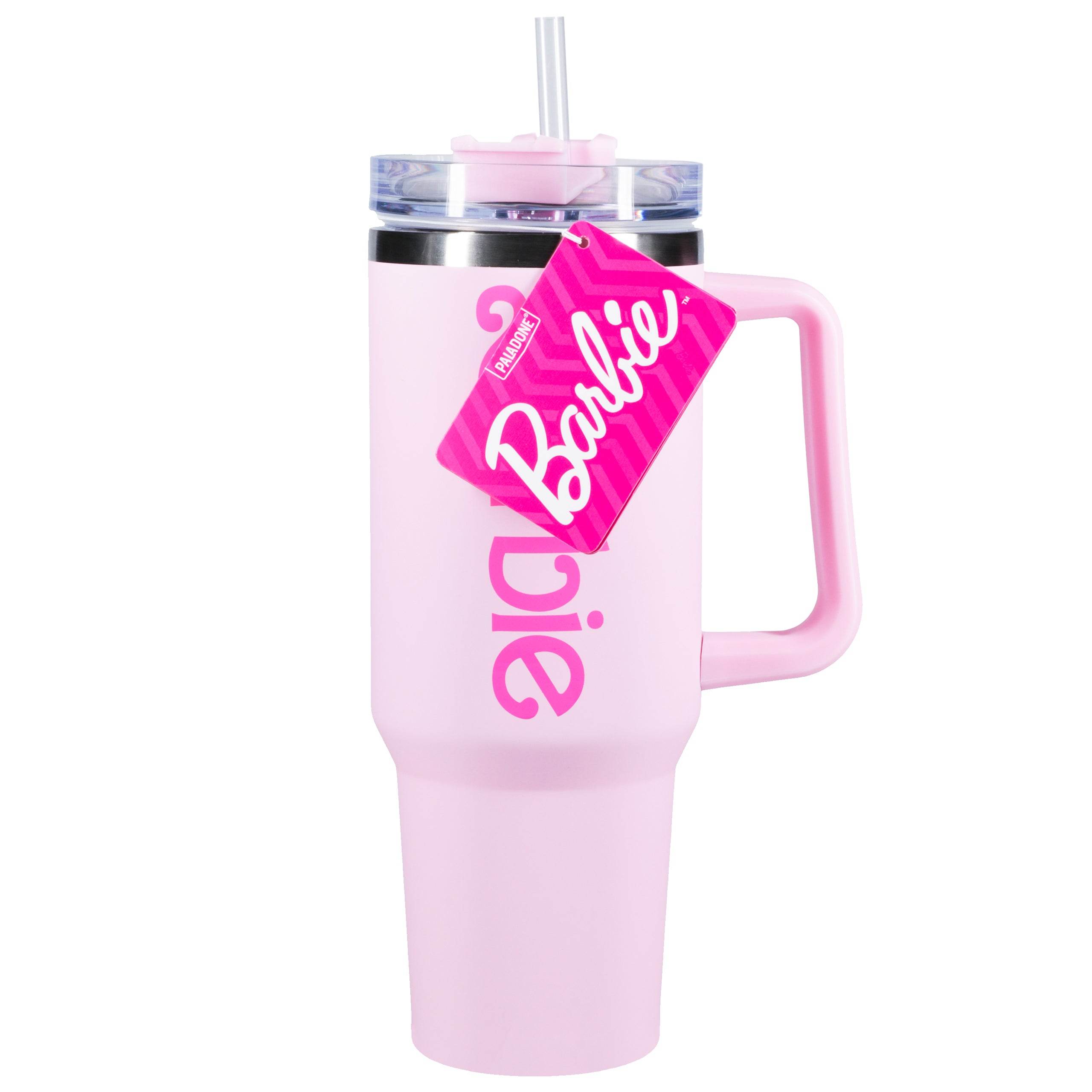 • Sip in Style: The Barbie XL Travel Mug in baby pink is your ultimate travel companion, featuring a chic handle, a clear straw, and a secure locking top to prevent spills.
