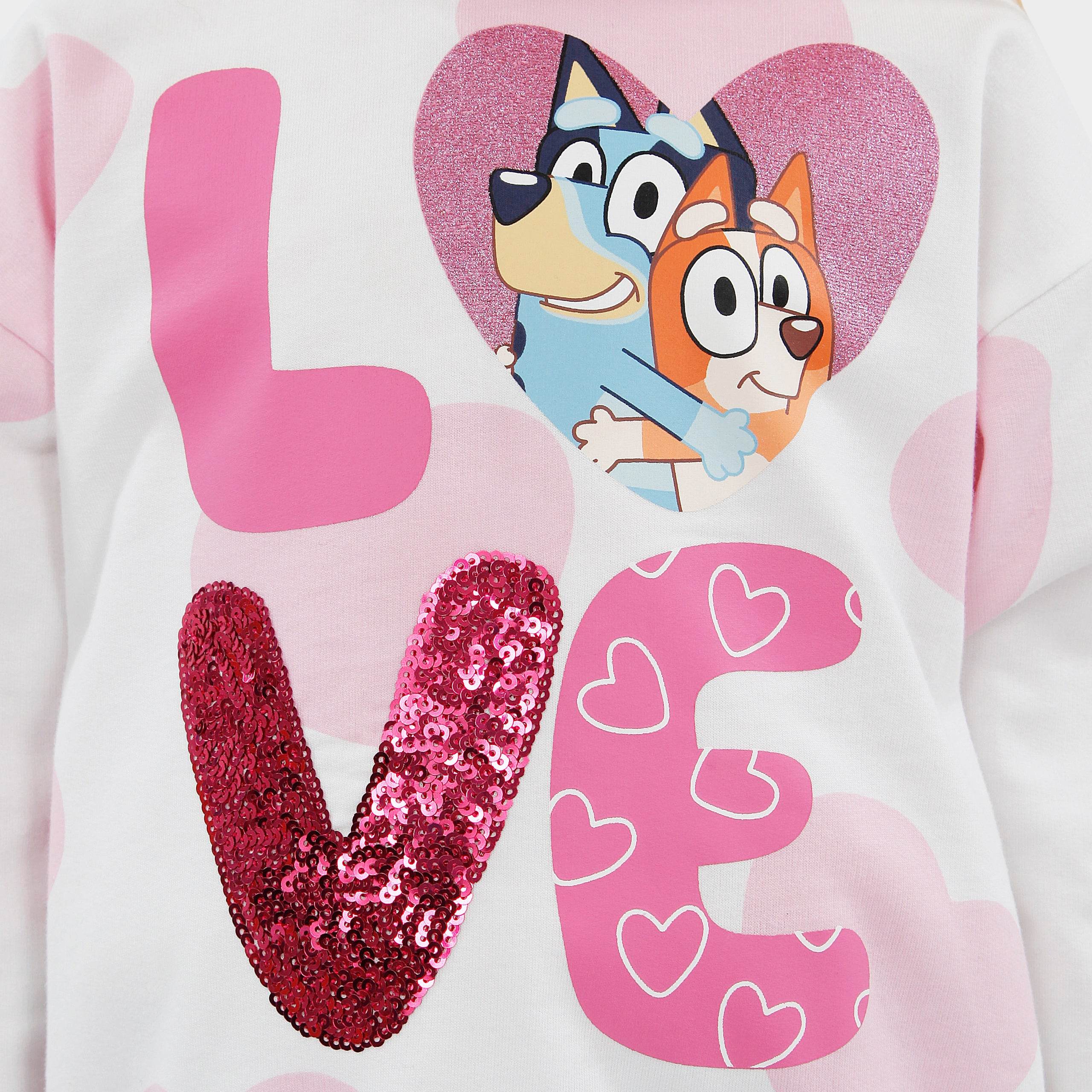 • Glitter and Sparkle with Joy: Let your girl shimmer and shine with this jumper as the letters of "LOVE" are adorned with glitter or sequins, adding a touch of sparkle to her wardrobe while she proudly showcases her favourite Bluey characters.