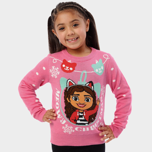 • Dive into Gabby's magical world with a vibrant jumper featuring her, Mercat, and Pandy Paws dancing on a colorful rainbow - made just for superstar kids like you!