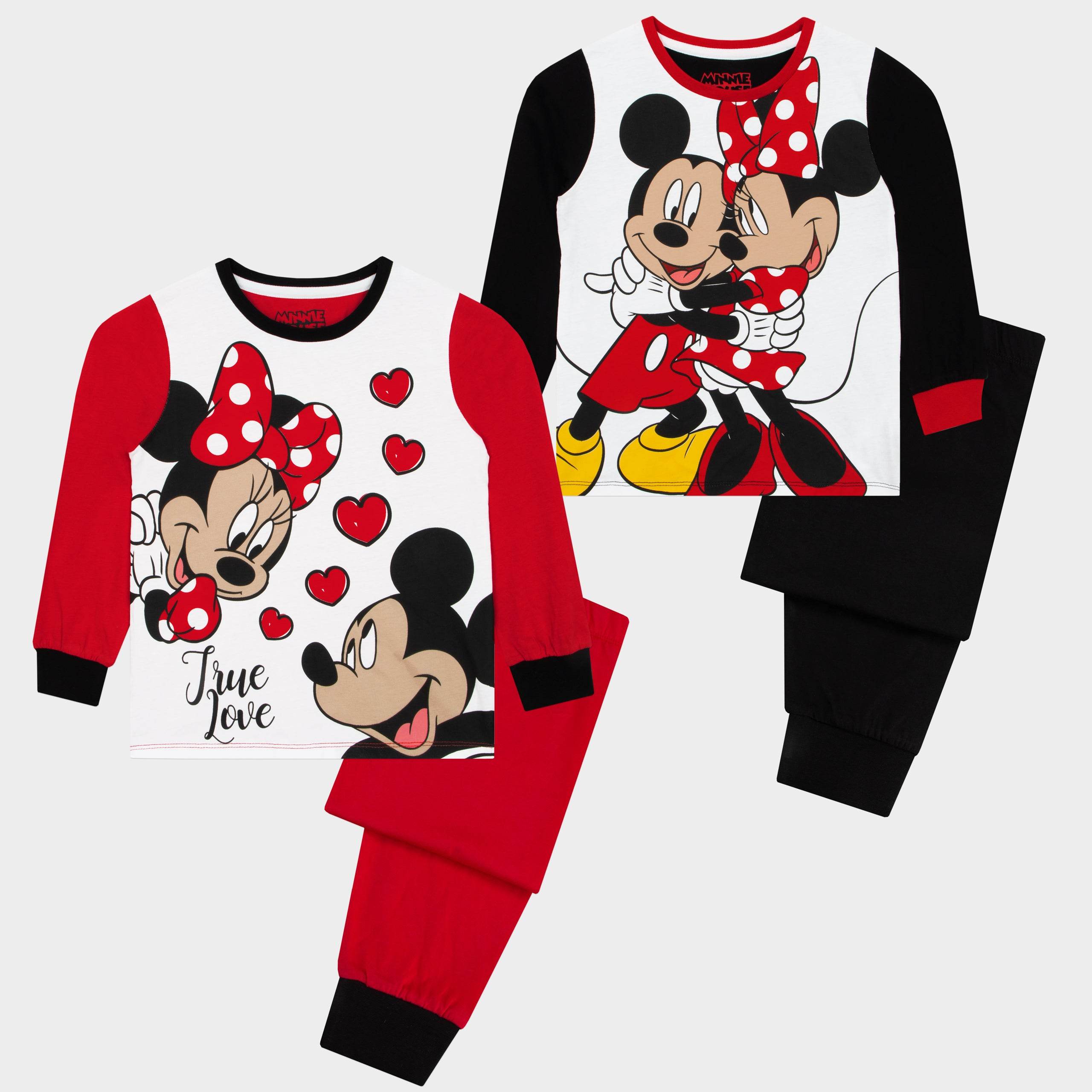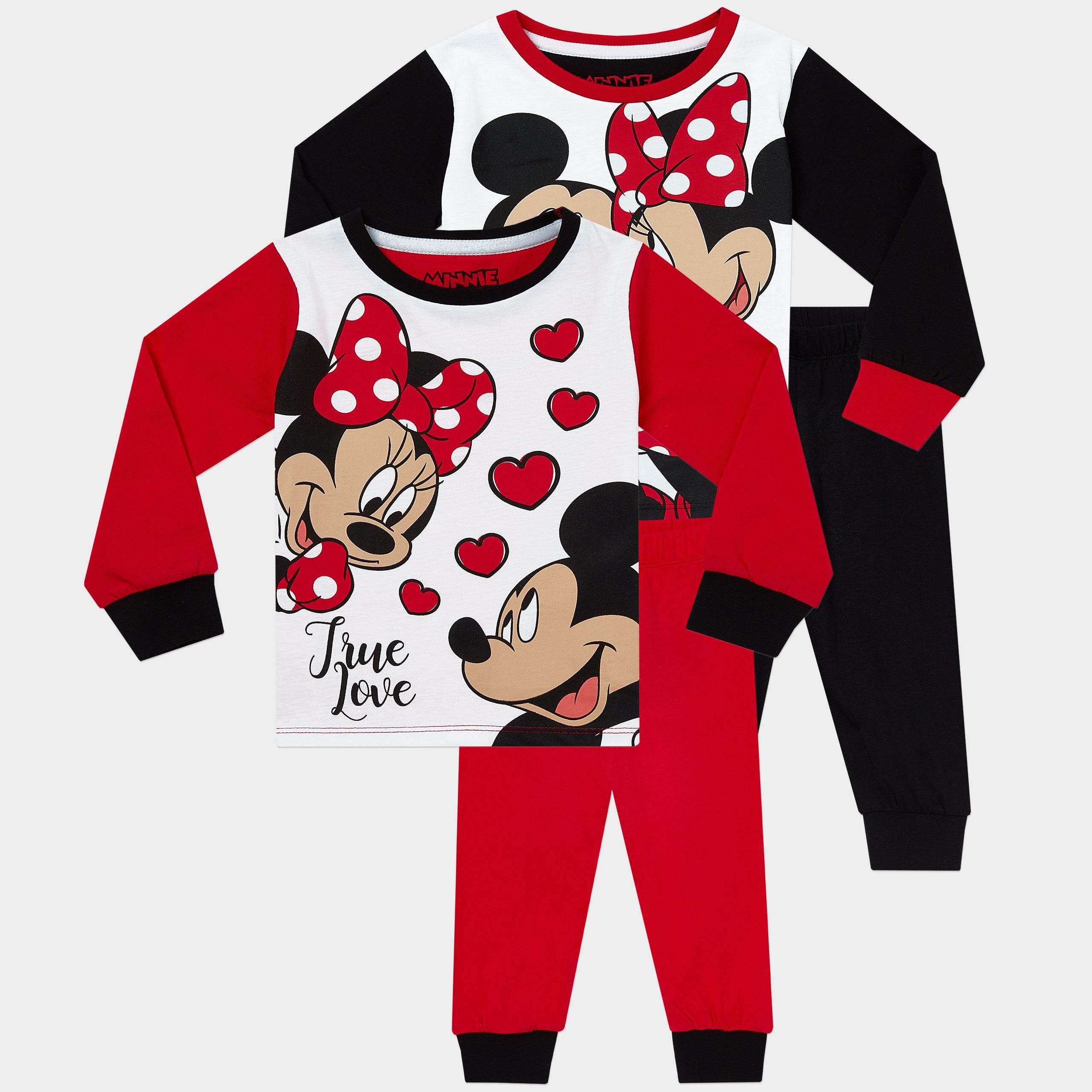 Yoo-hoo! Celebrate Disney's longest standing love story with this ear-resistable twin pack of Minnie Mouse PJs for your little mouse! One pair has a white pyjama top with red sleeves, showcasing Minnie and Mickey Mouse with love hearts and the slogan 'True Love' and is paired with black pj bottoms with an elastic waistband and ankle cuffs. The second pair showcases the classic Disney couple hugging, and has black sleeves with red pyjama bottoms. In this matching sleepwear set, your little Disney dreamer will look as adorable and stylish as Minnie herself every night!