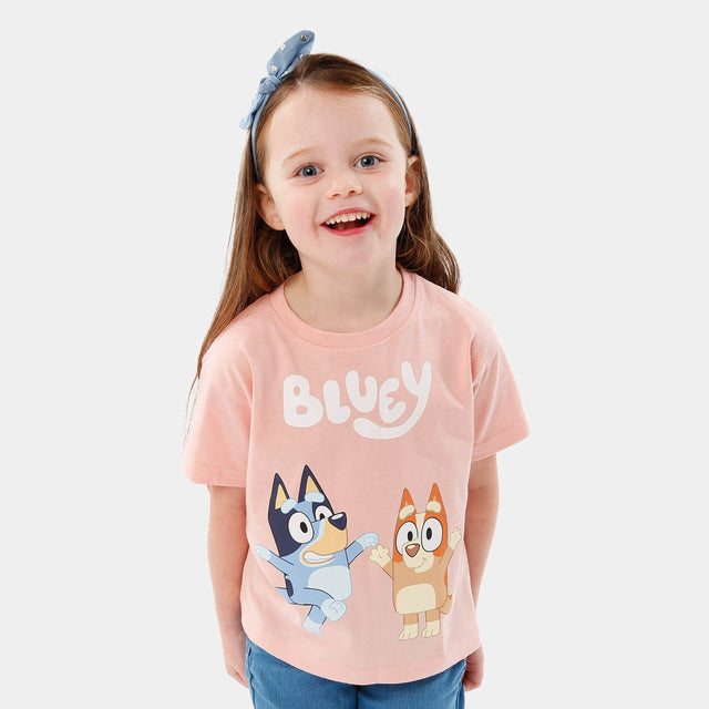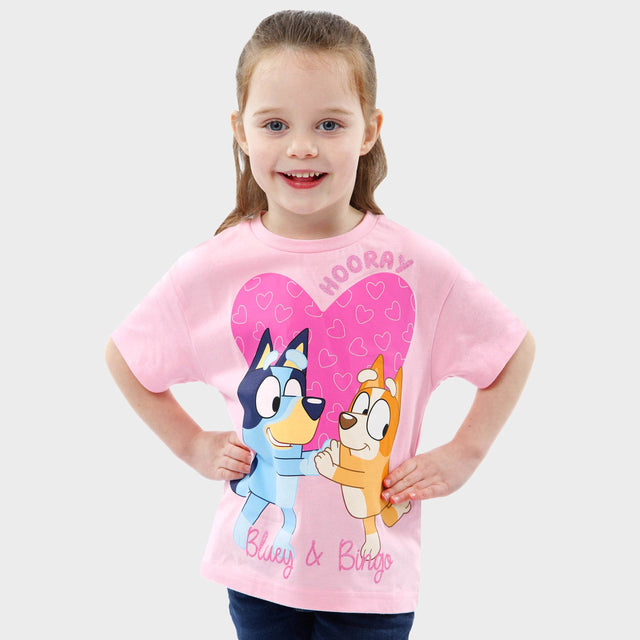 Child wearing a pink 'Stitch' themed nightshirt with Stitch and Angel cartoon characters on a blue background
