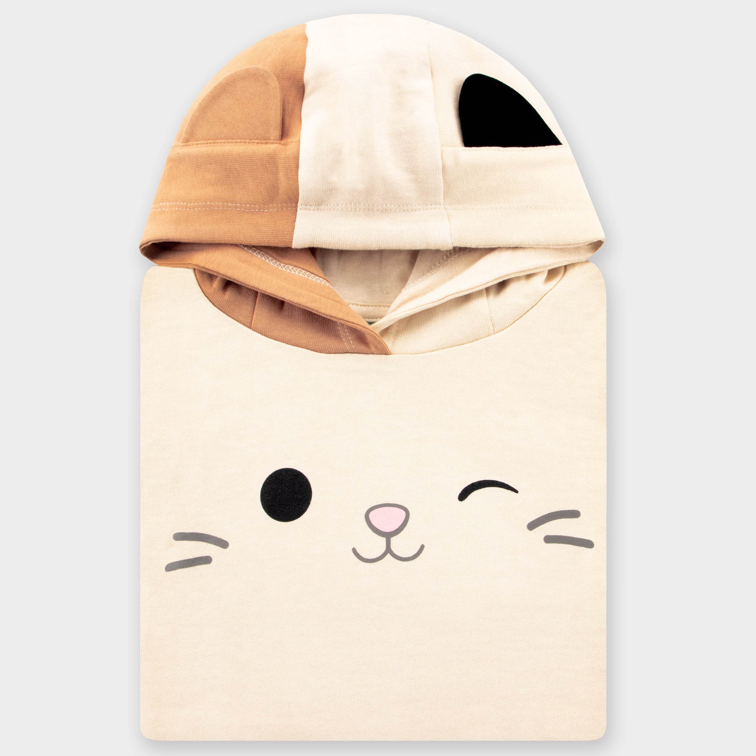 Wrap your little Squishmallows fan in purr-fect comfort with this Cam the Cat hoodie! Featuring 3D ears and Cam’s signature brown and black patches, this longline sweatshirt is as playful as it is cosy. Cam’s sweet face on the front adds a dash of cuteness, while the official Squishmallows tag guarantees that it’s the real deal. Whether they’re lounging at home or playing with friends, this girls hoodie is the ultimate cuddle companion.