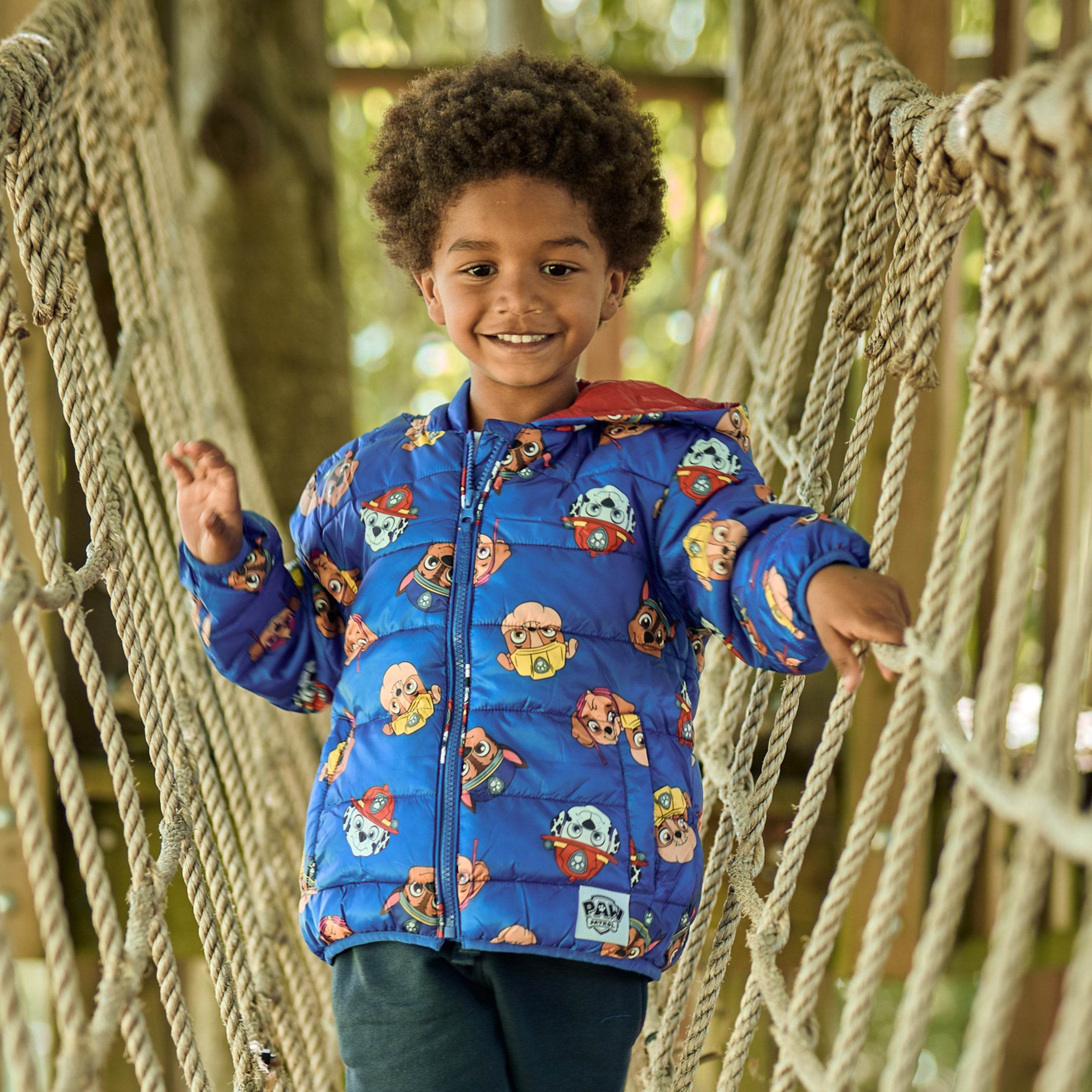 Adventure Bay still needs the Paw Patrol team! Get your little pup up in this cute padded Paw Patrol puffer jacket and send them on their way! This navy hooded coat includes pockets and features an allover print of favourite characters, Marshall, Rubble and Chase, along with a woven badge of the Paw Patrol logo. Mighty pups are on a roll!