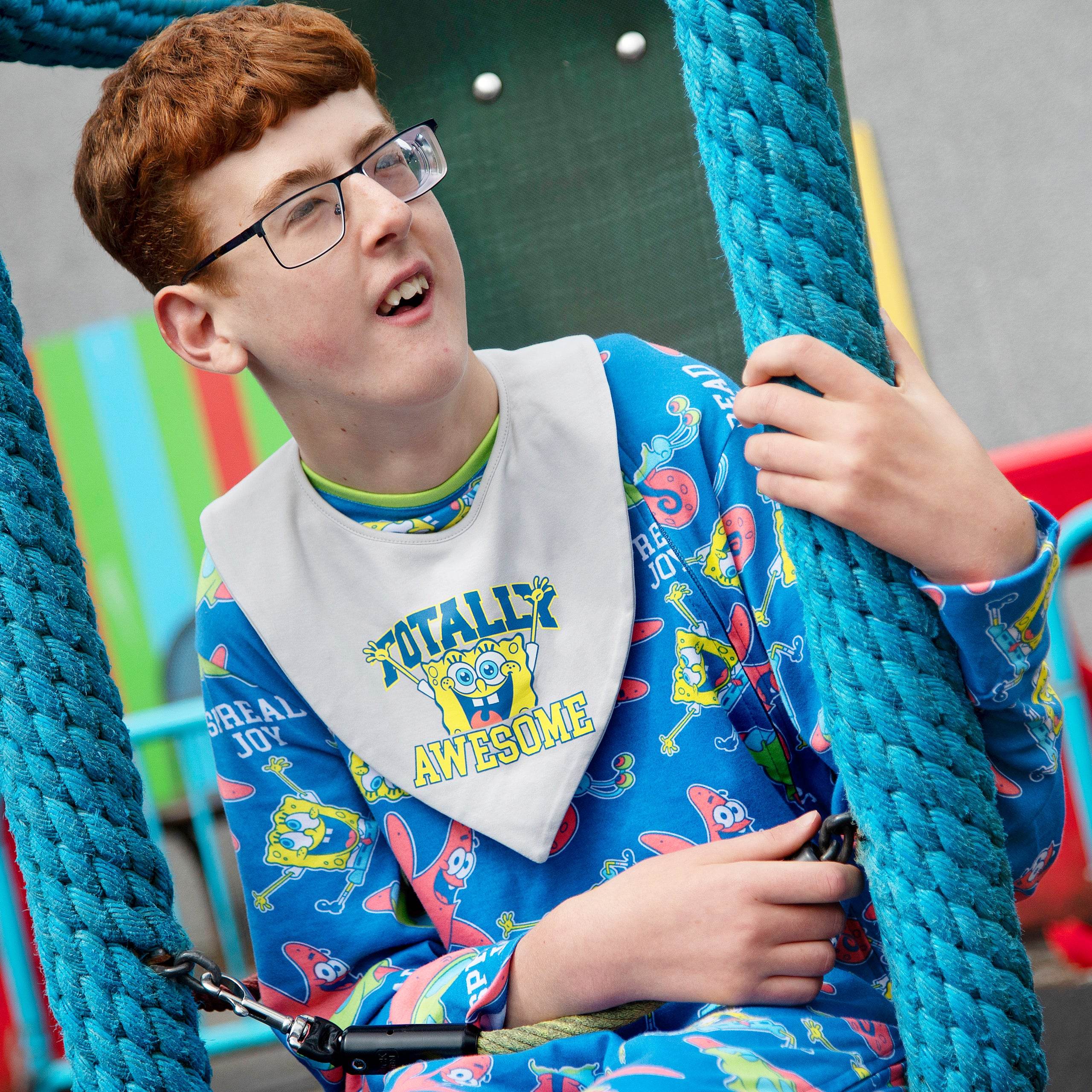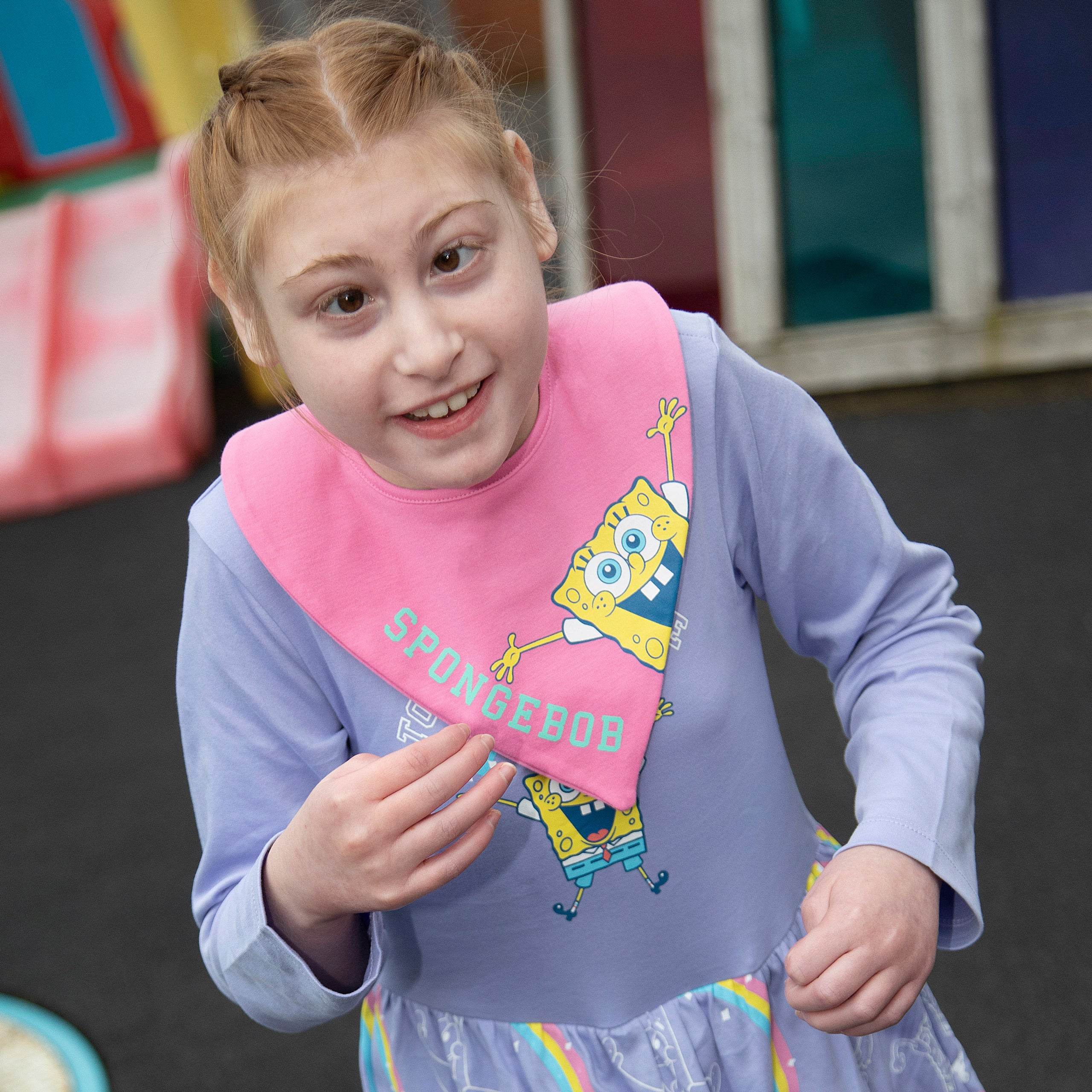 Our designers worked closely with a focus group of parents and carers to create this adaptive range, ensuring it truly meets their needs. With discreet design features for easy dressing, combined with bright and inspiring designs, we believe this Adaptive range will be loved by kids, parents and carers alike. Crafted in ultra-soft 100% cotton jersey fabric, this pink SpongeBob SquarePants dribble bib for girls comes with a label free design to ensure itch-free t that is soft and gentle against delicate skin. This adaptive accessory has tape fastening at the back of the neck to provide ease of wear. Finished with a cheery and official SpongeBob design, fans will adore.