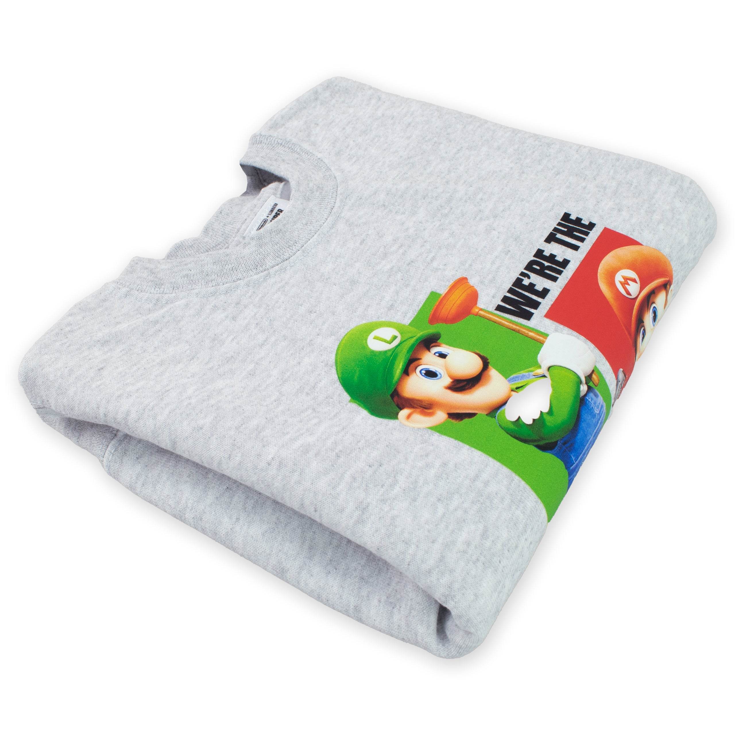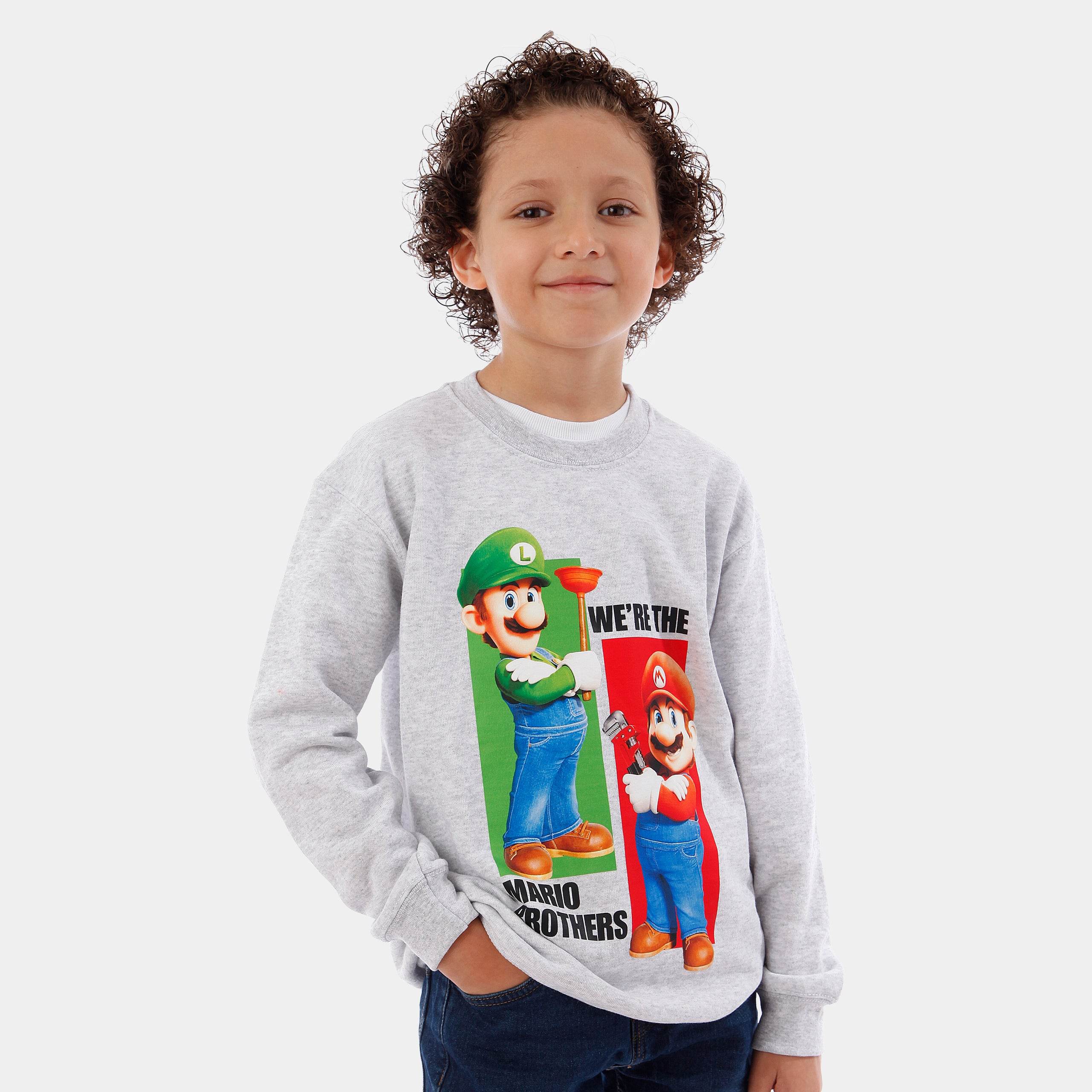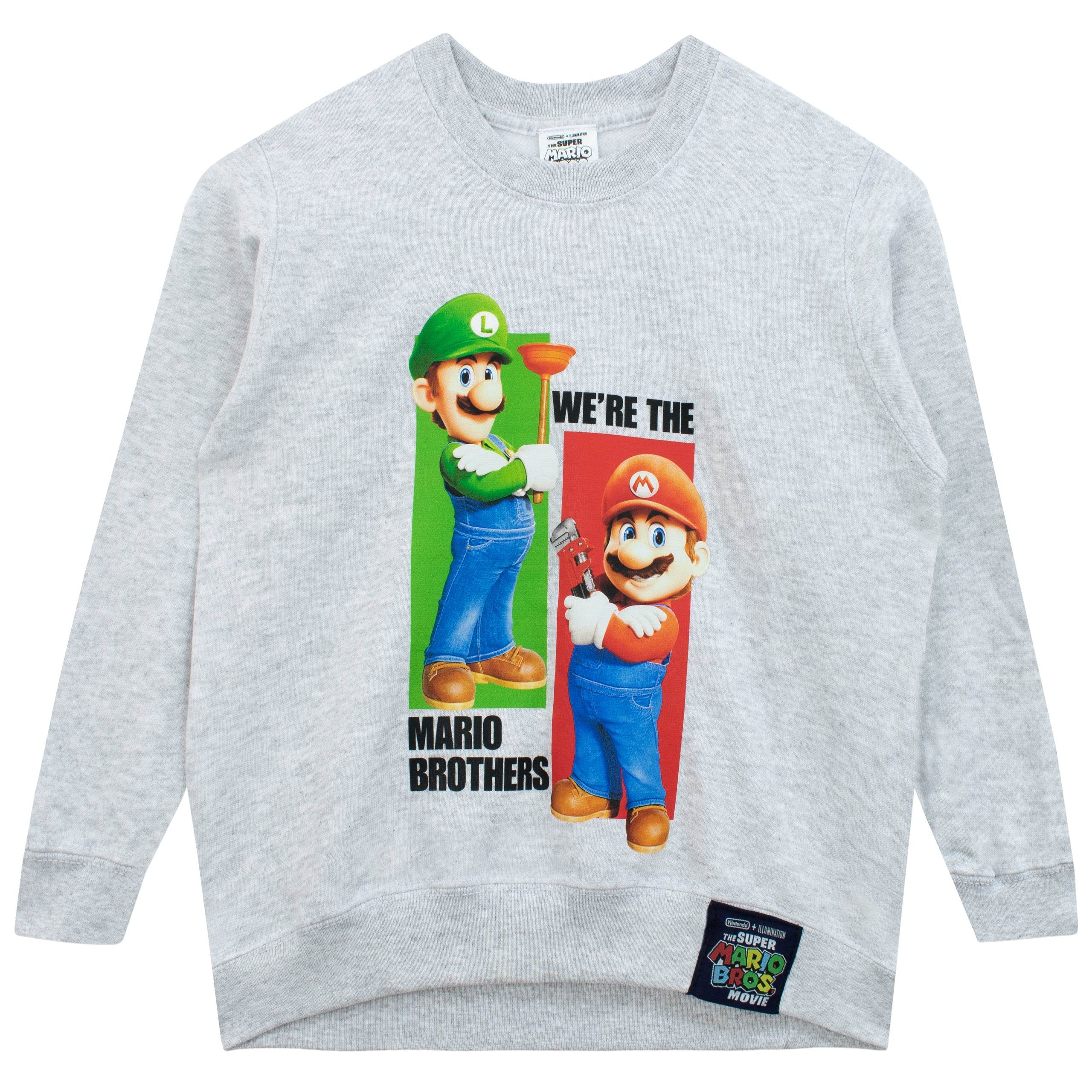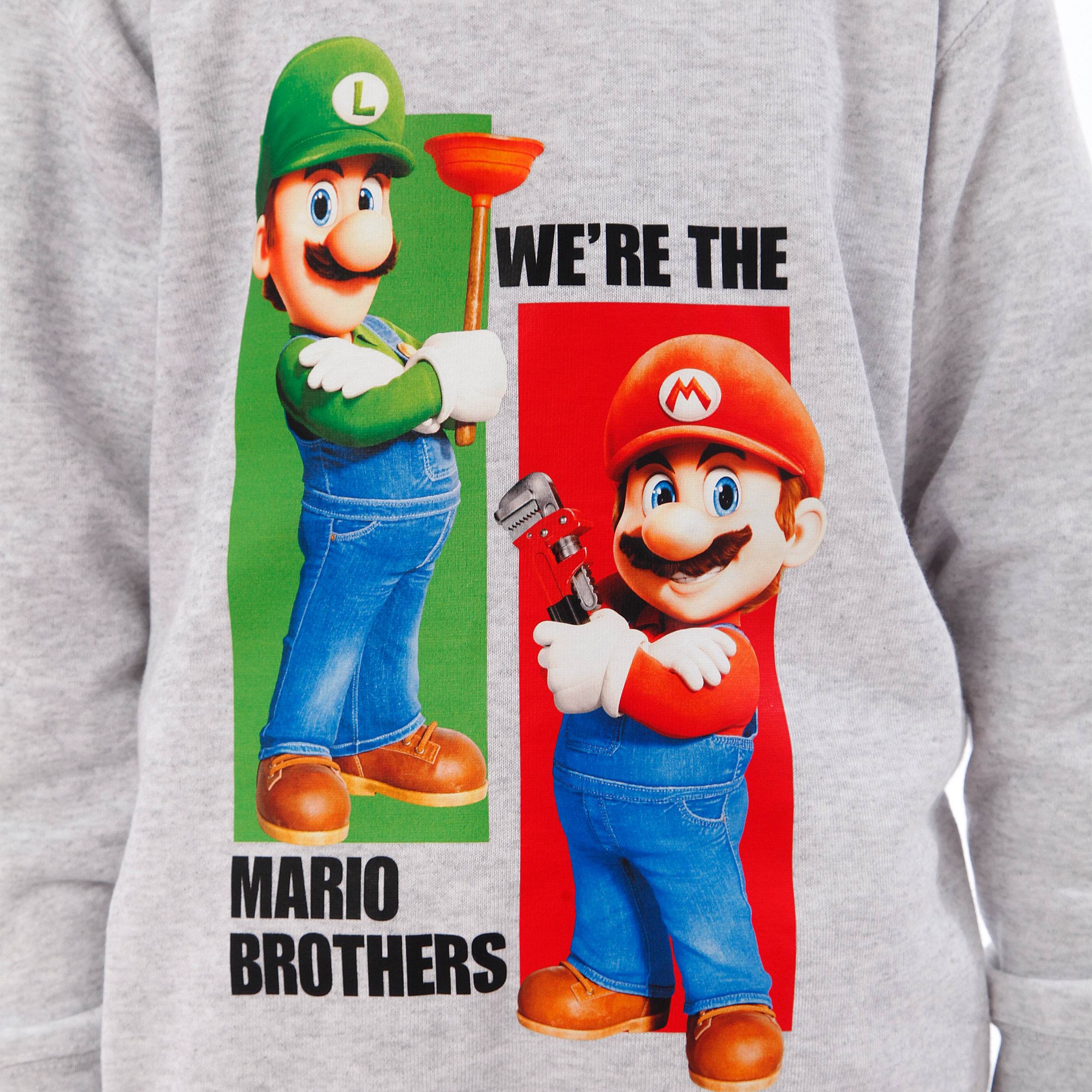 Jump into the world of the Mushroom Kingdom with this grey Mario and Luigi jumper! Featuring our favourite plumbing duo striking a pose with their trusty tools, it's a playful nod to classic gaming. The green and red rectangles add a splash of vibrant colour, and that Super Mario Bros hem tag? Just the cherry on top of this retro delight!
