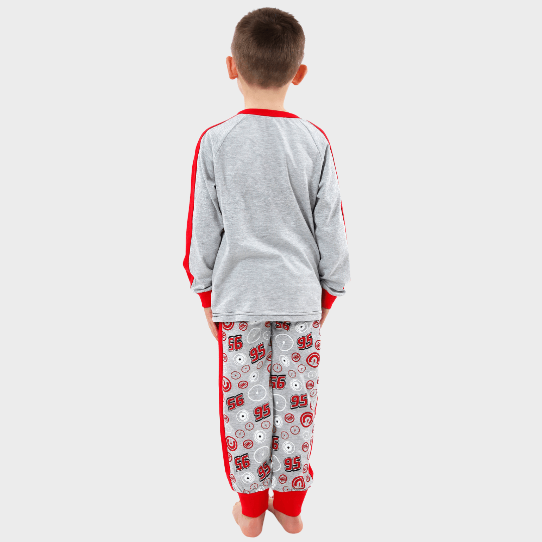 He'll love racing to bed in these Disney Pixar Cars pyjamas. Made from soft 100% cotton, this pj set includes a long sleeved top and full length bottoms. The top has a bright and bold print of Lightening McQueen, Mater and the slogan Full Power Speed Run with red and grey sleeves while the bottoms have an all-over red and white gauge print and a comfy elasticated waist. See you at the finish line!