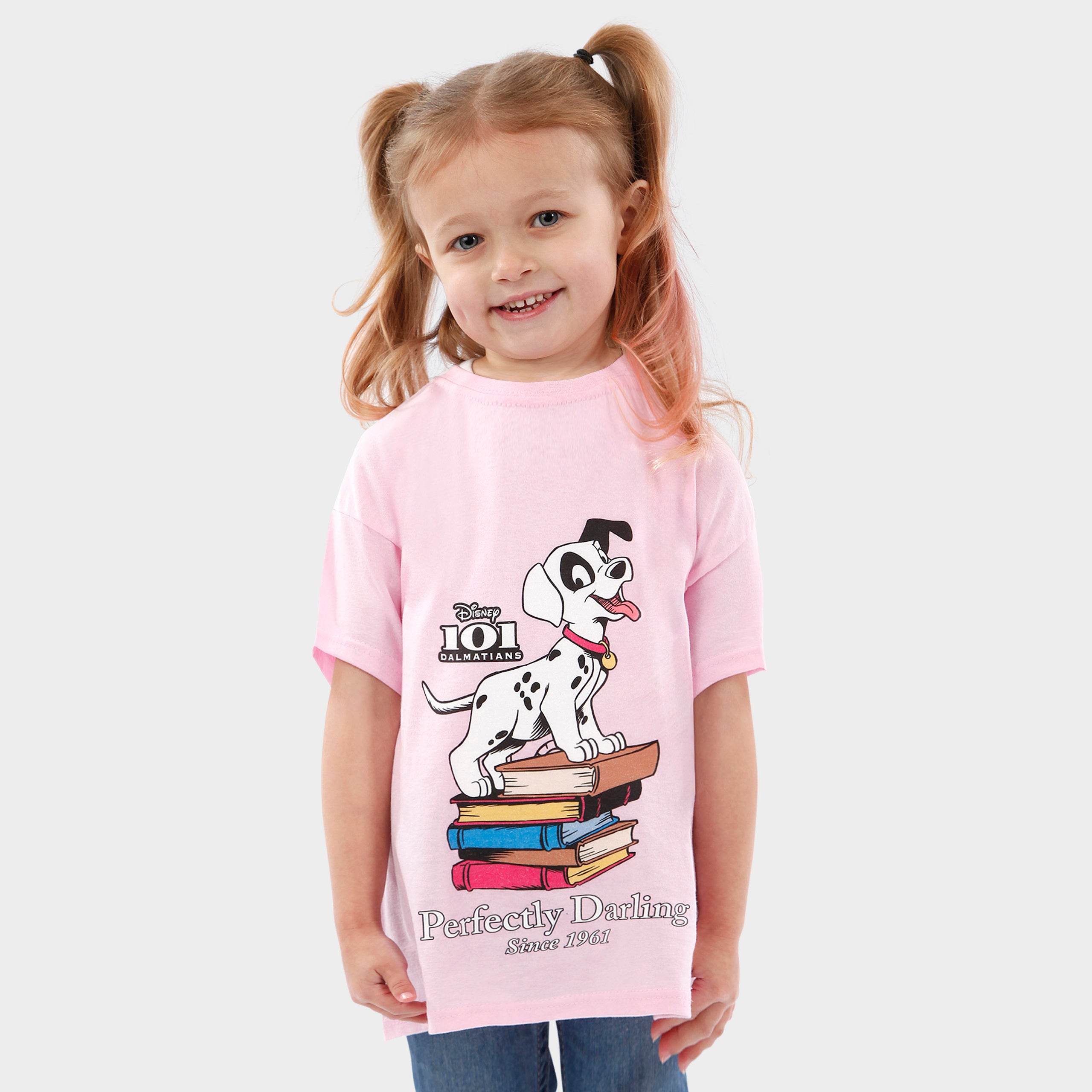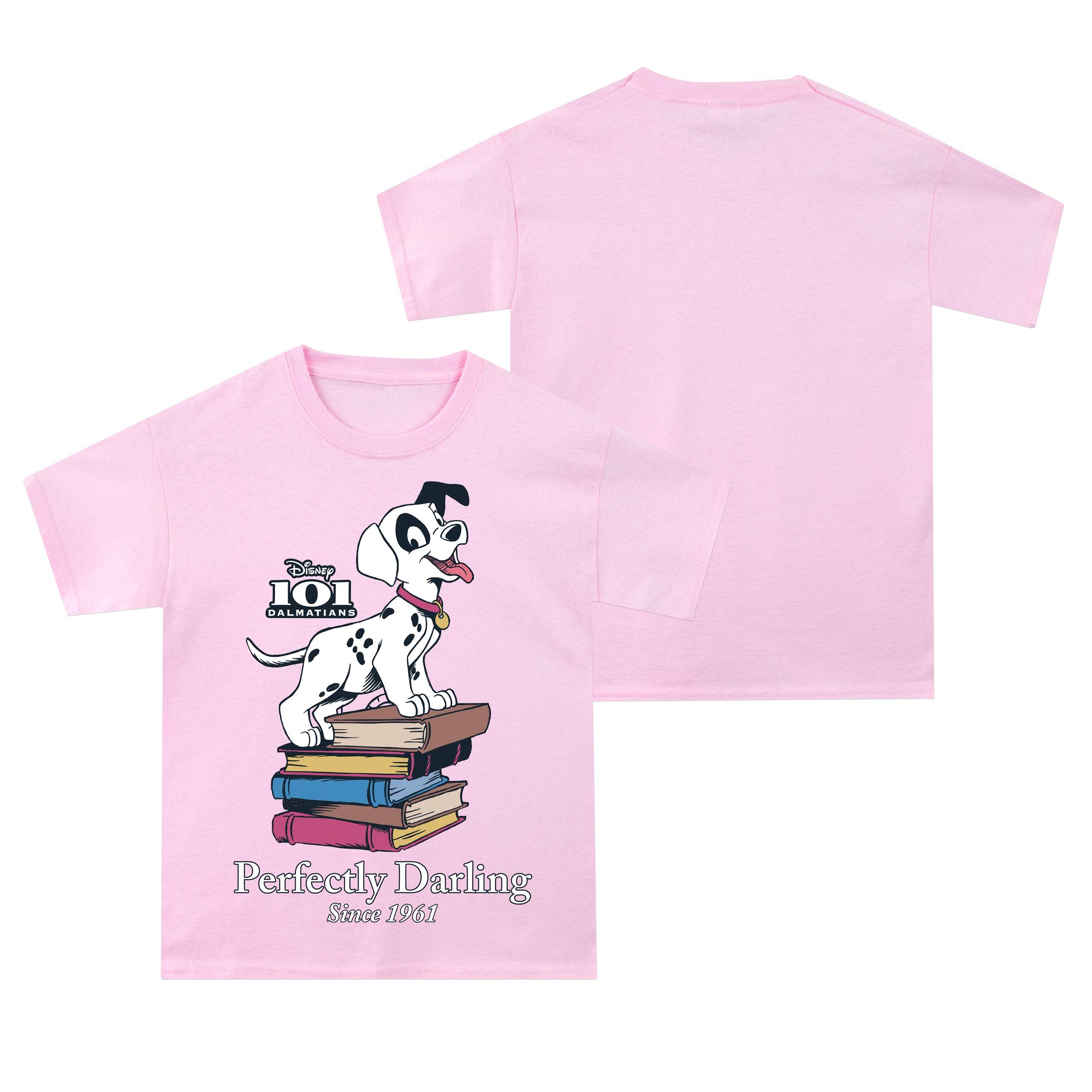 Get ready to bark with joy over our 101 Dalmatians t-shirt for girls! This playful tee showcases Patch, the lovable dalmatian, standing on a tower of books, accompanied by the classic Disney logo. Below the books, it boasts the whimsical slogan "Perfectly Darling since 1961." Crafted from officially licensed Disney merchandise, this shirt is the ideal choice for young book enthusiasts and Disney fans alike.