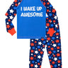 Wake up on the right side of the bed every morning in these awesome PJs! Designed by Harry Bear, this cool long sleeve pyjama set features a blue top with 'I Wake Up Awesome' in a raised print with a red, white, and blue star motif on the sleeves . Paired with matching star pattern pyjama bottoms with an elasticated waist and cuffs for ultimate comfort, these epic jammies are the perfect addition to any dreamer's wardrobe. These pyjamas come in a cosy snug fit. We recommend ordering a size up for a little extra room. Finished with hand-tied Harry Bear ribbon to make the perfect gift.