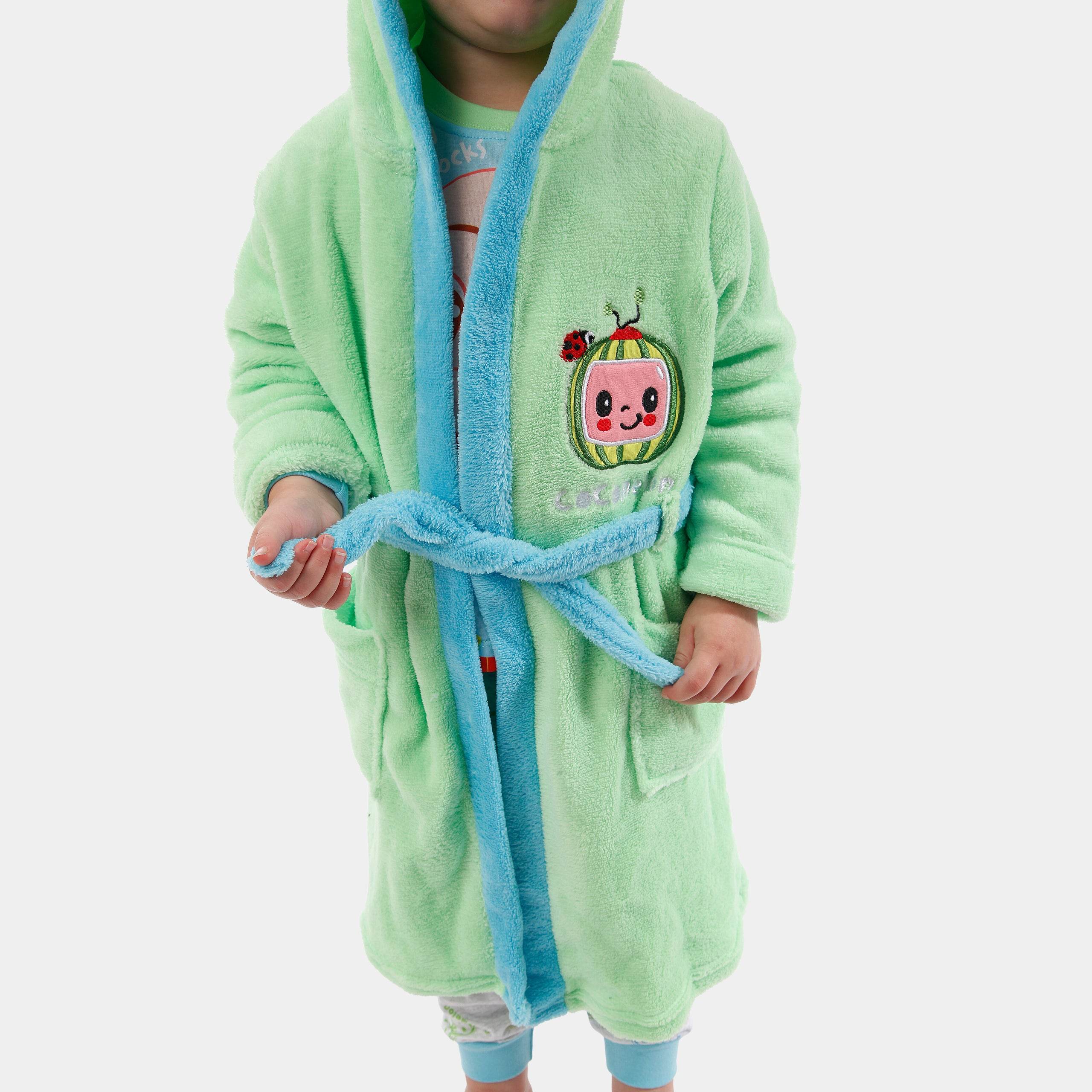 • All Aboard the Sleepy Train: Snuggle up with Jay Jay in our cosy CoComelon PJ set and soft, light-green fleecy dressing gown, perfectly crafted for your little adventurer's dreamy night rides!