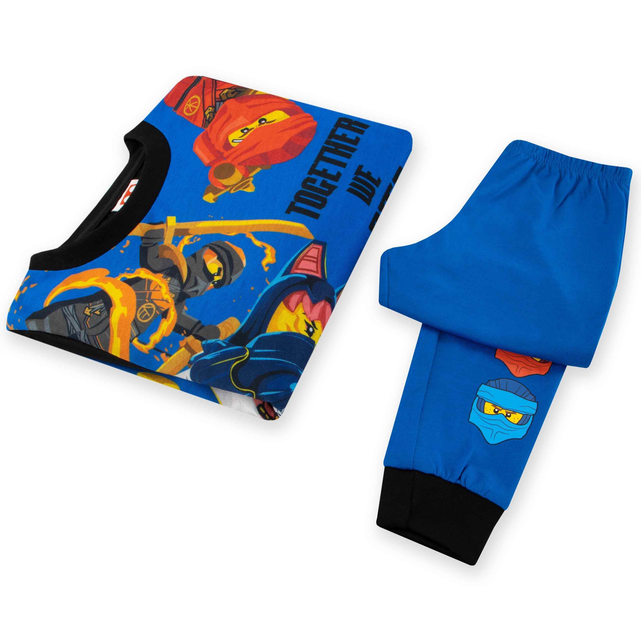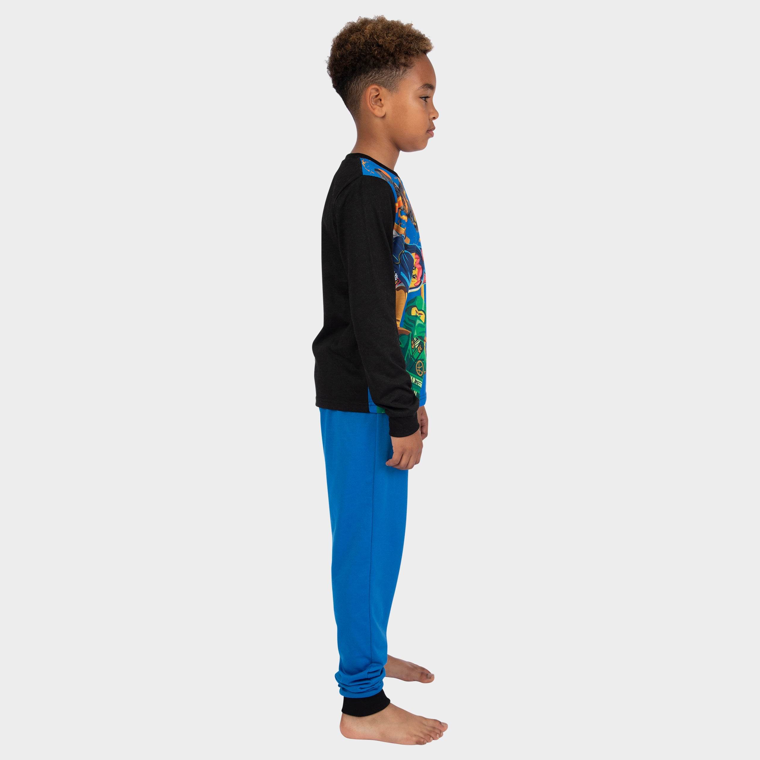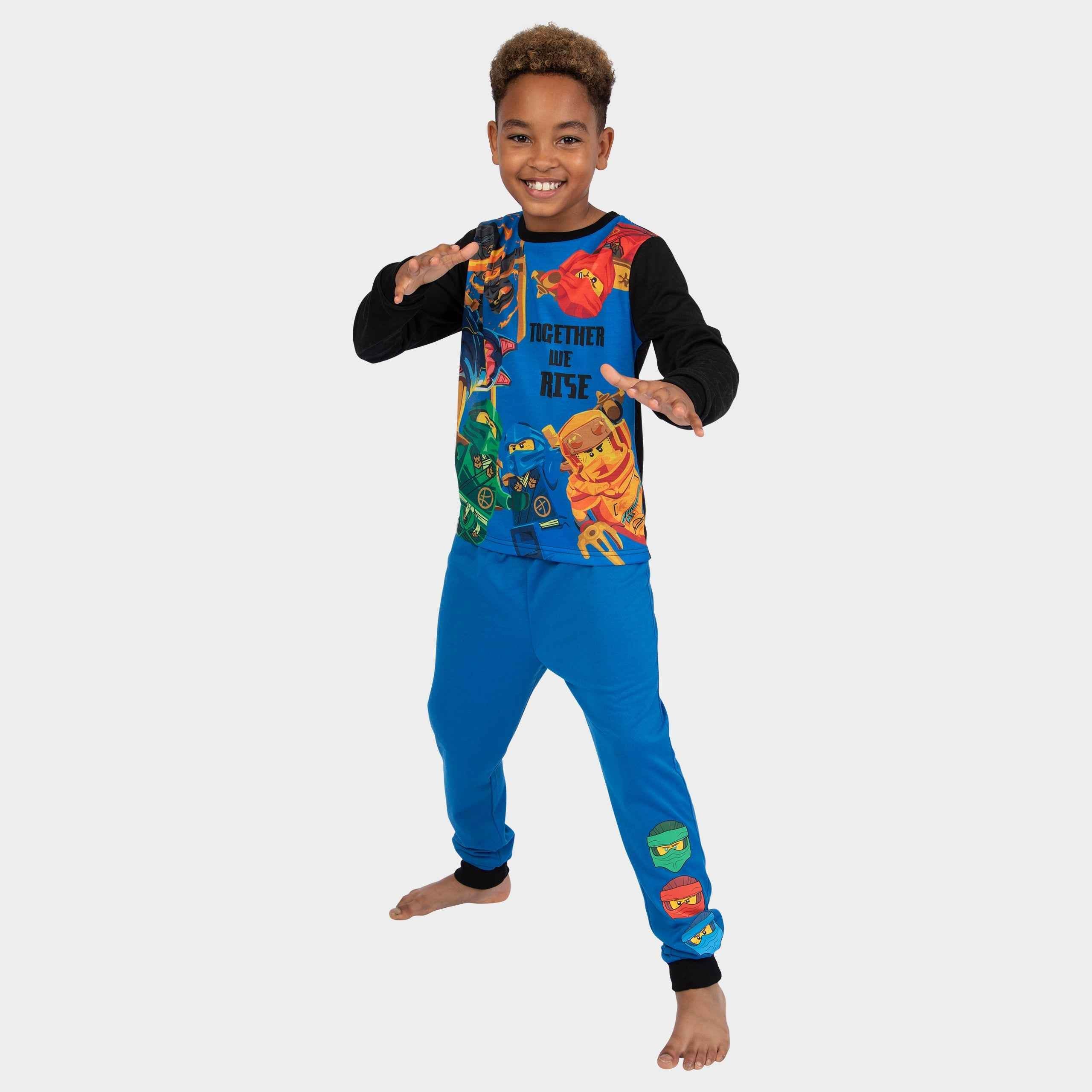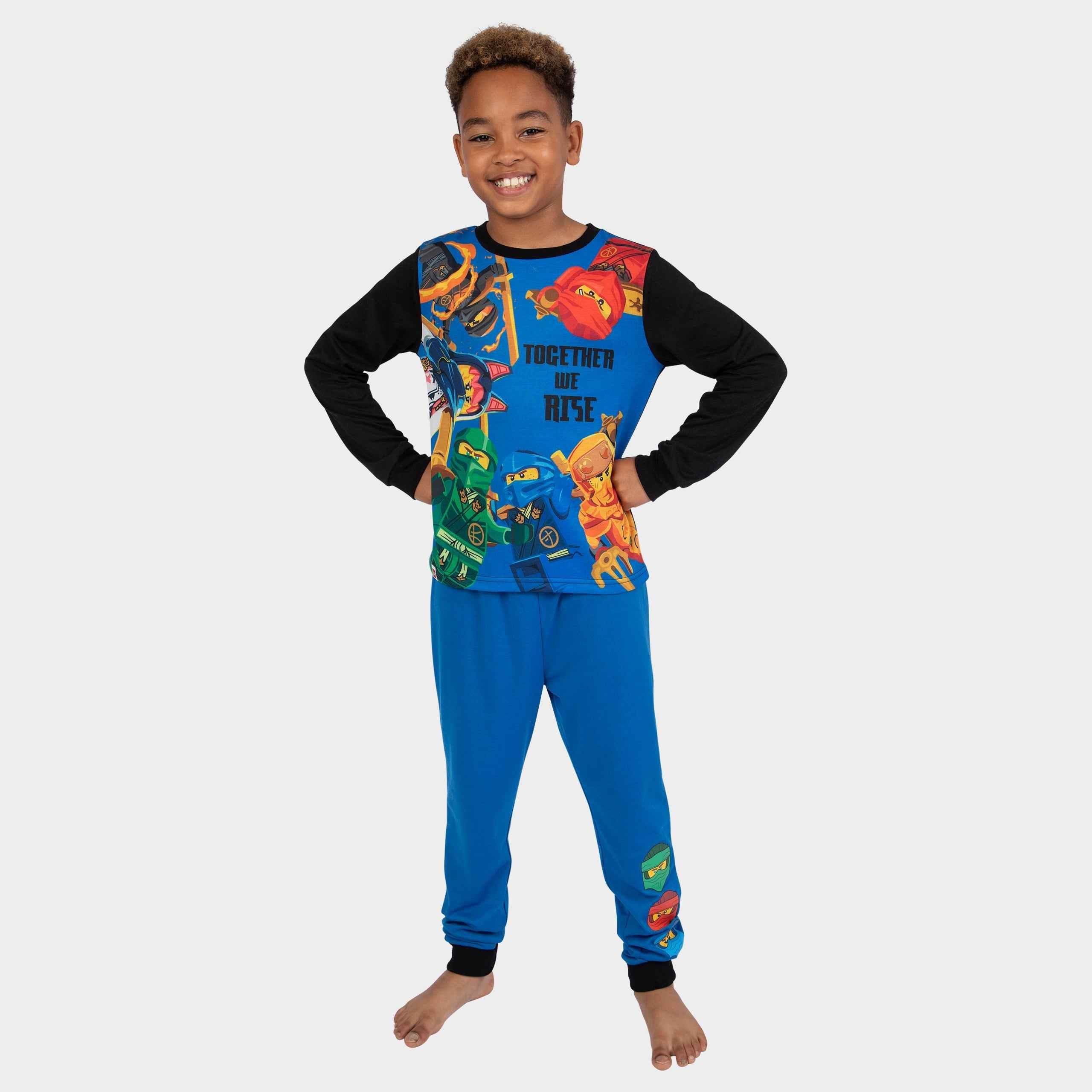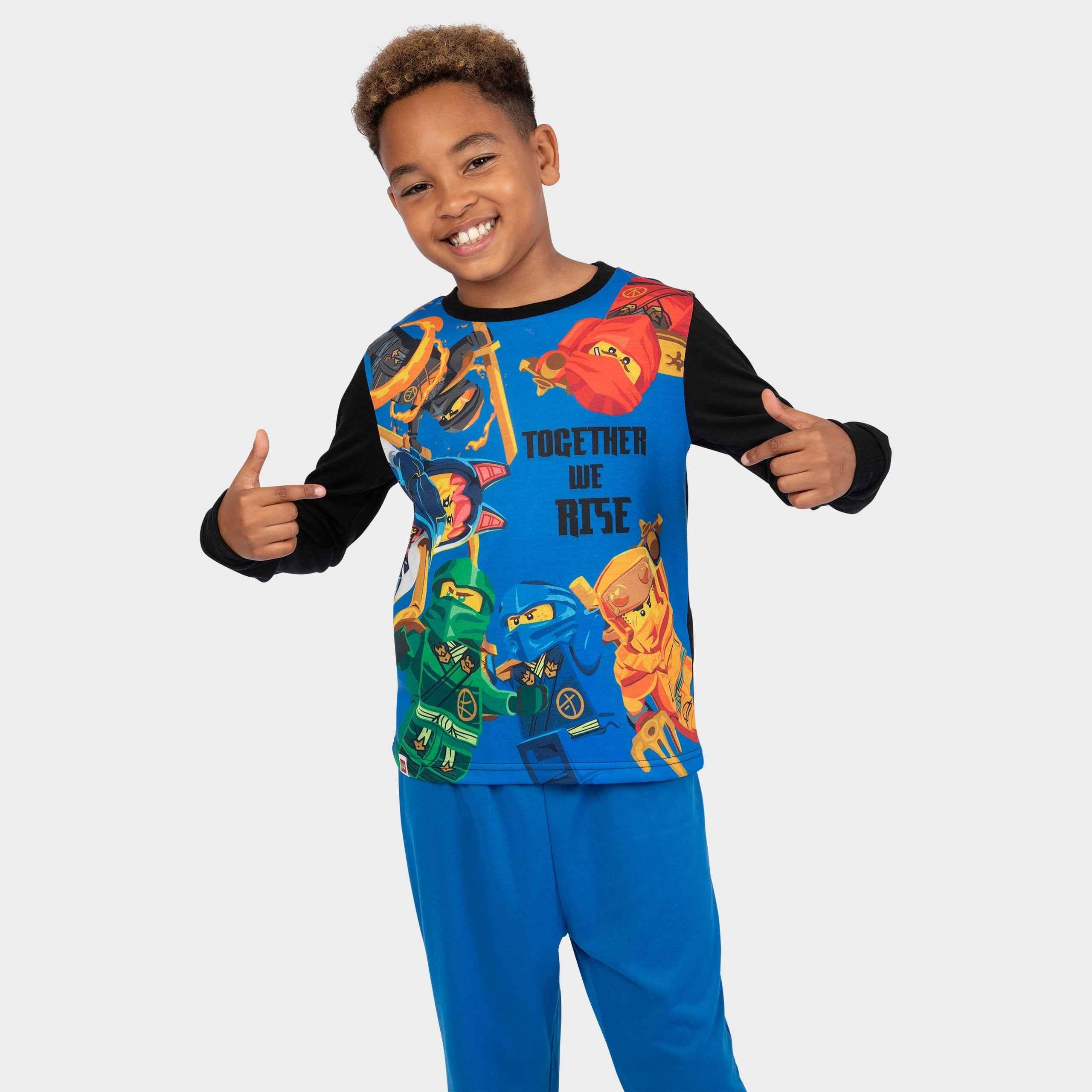 These cool boys pyjamas bring iconic Ninja designs to life with their b"Together We Rise" slogan on the top, surrounded by blue and black accents. The matching bottoms feature ninja heads for an extra dose of fun, while the black cuffs and collar complete the stylish look. Perfect for any boy who loves action and adventure, this pyjama set is ready for nightly ninja dreams. Let your little one suit up for sleep and awaken their inner Ninja!