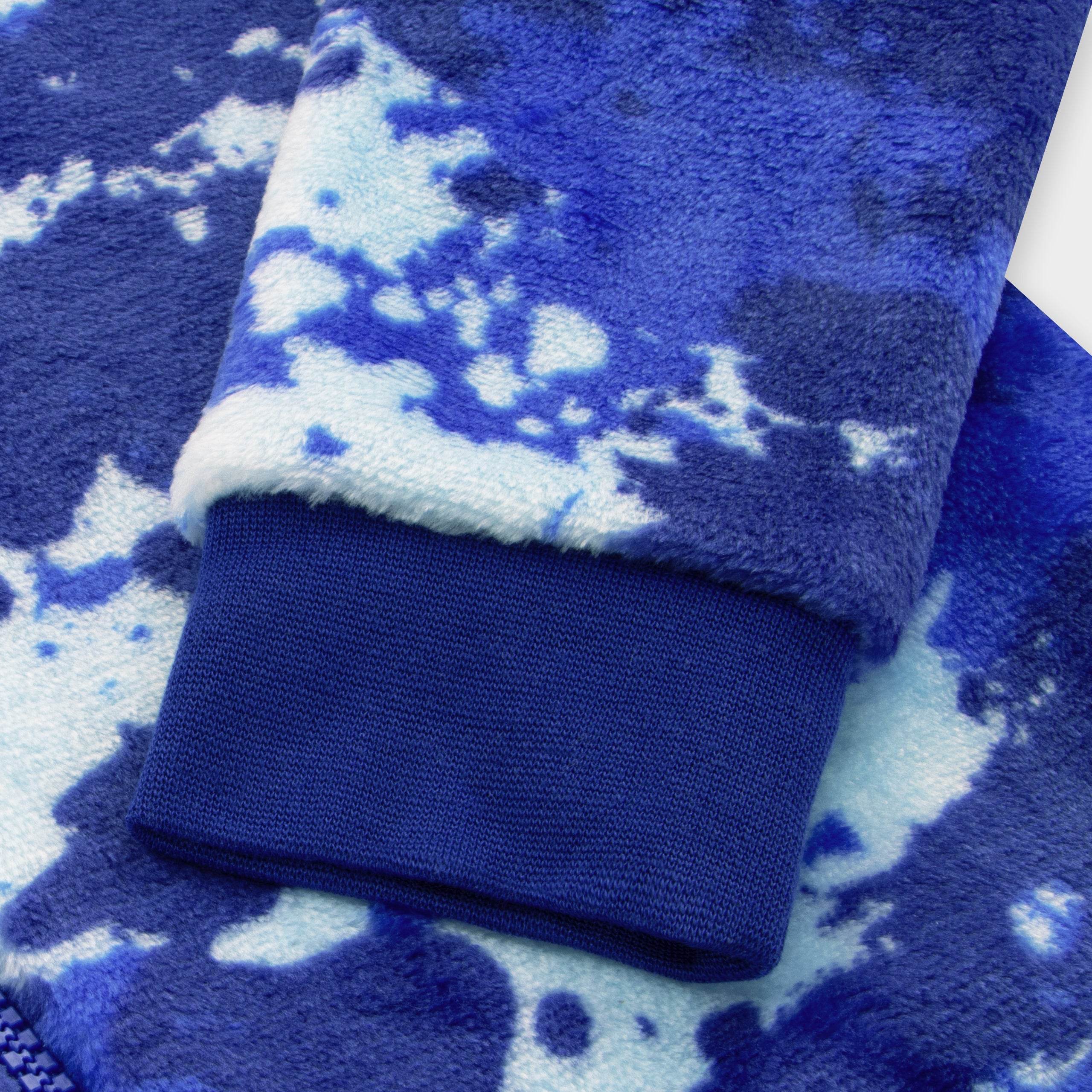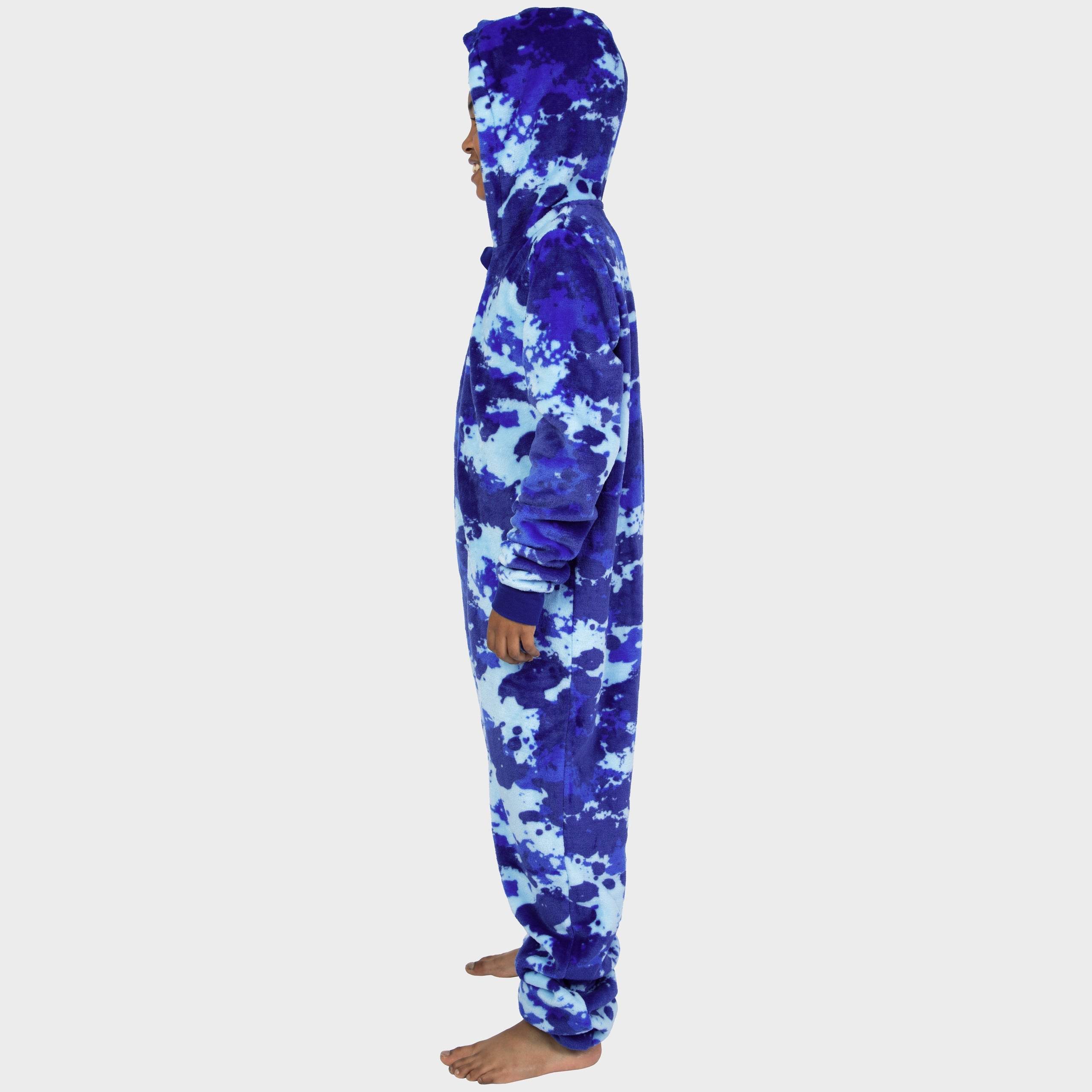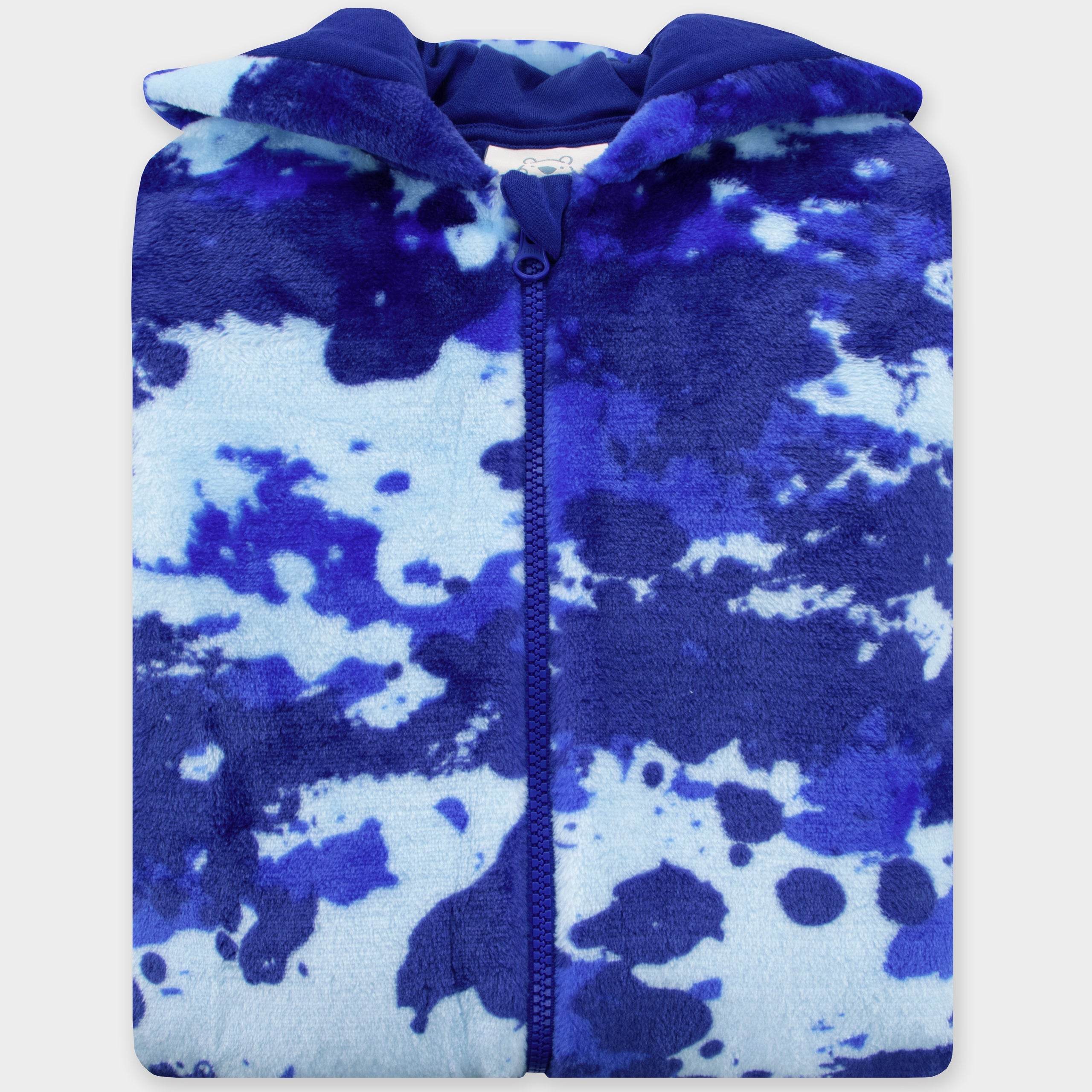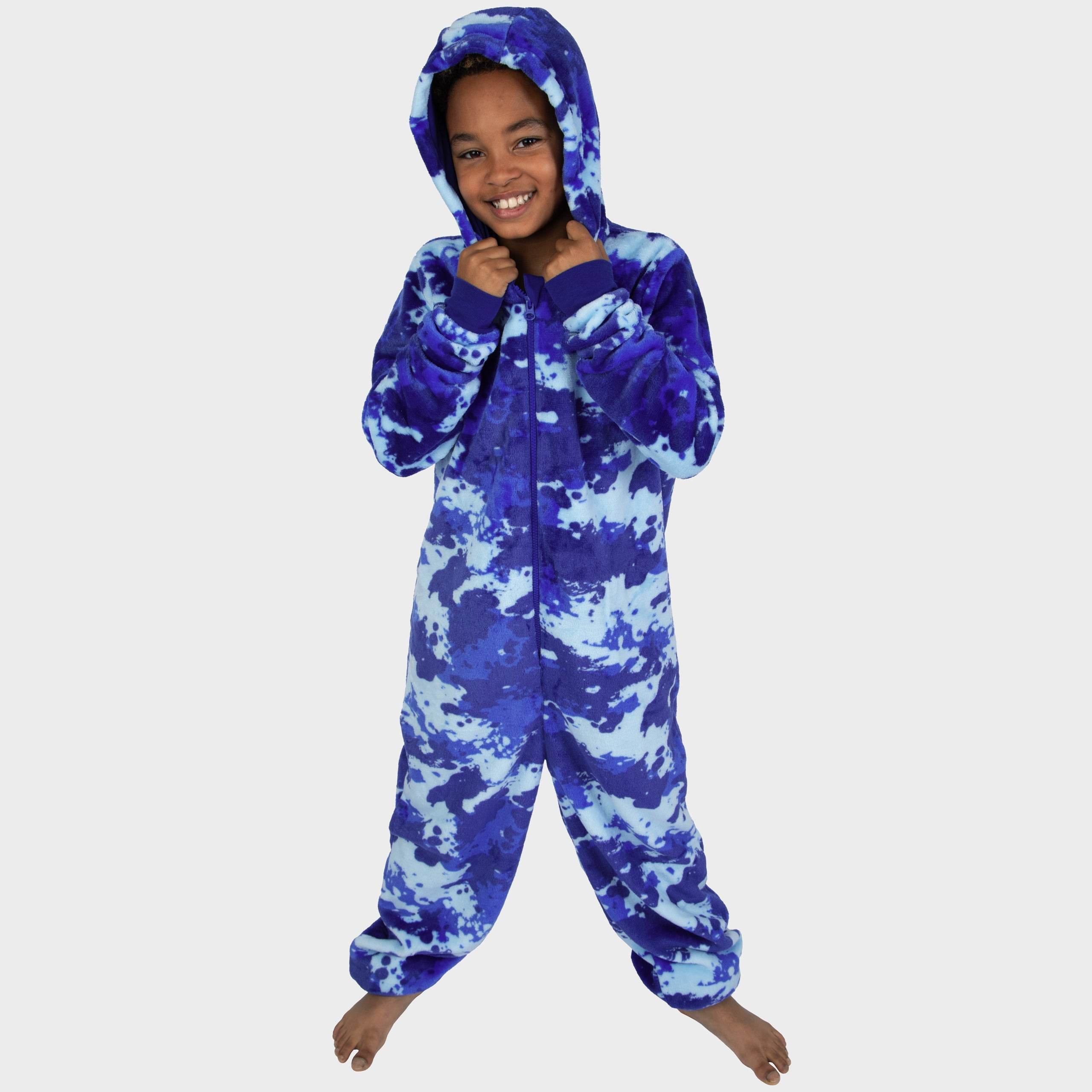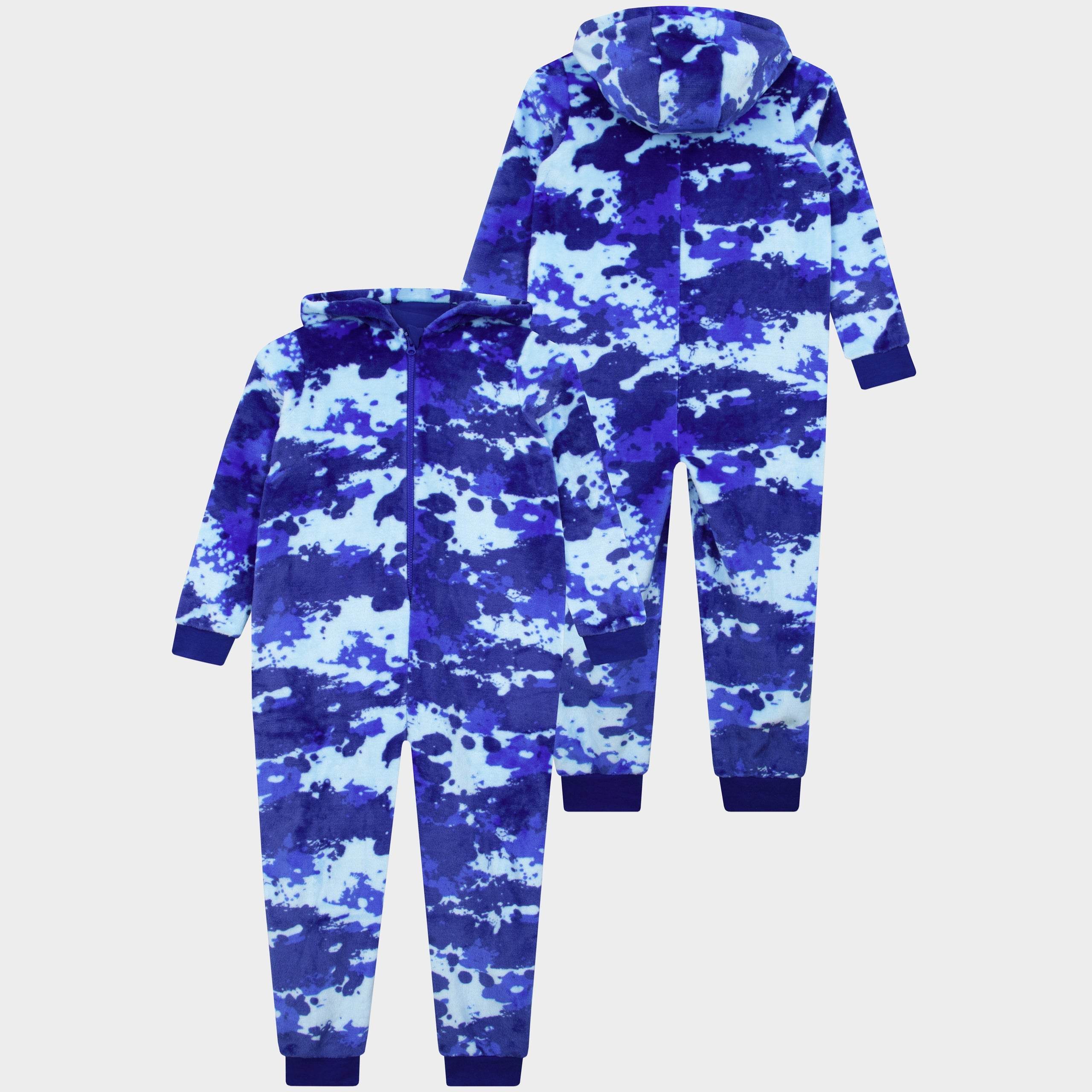 This boys onesie combines warmth and style with an all-over blue camouflage pattern that s as cool as it is comfy. Designed for chilly days, it has elasticated cuffs and a cosy hood for extra comfort. The zip-up front ensures easy dressing, making it ideal for active little ones. Perfect for winter lounging or outdoor play, this camo onesie is the ultimate comfy sleepwear.