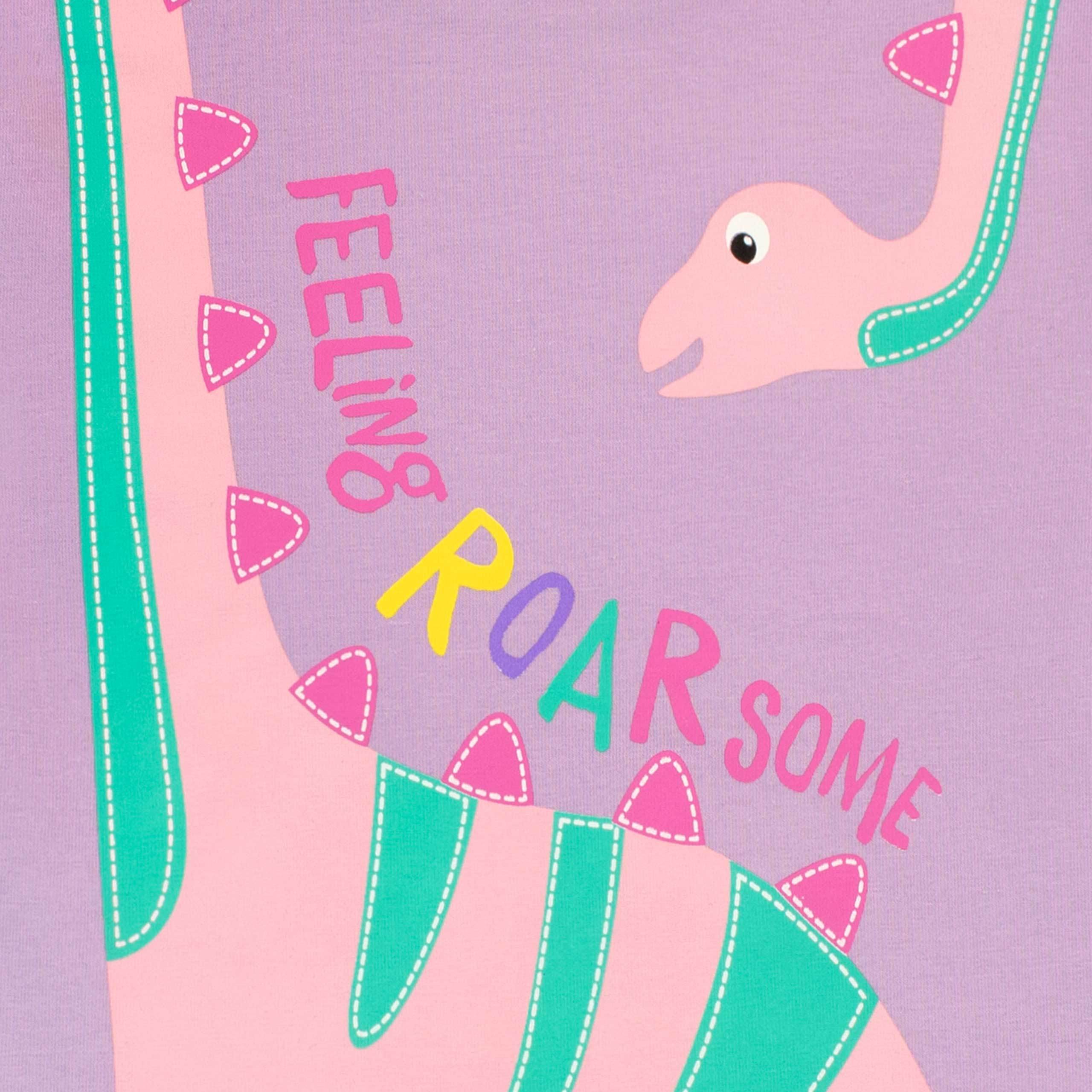 Make boring bedtimes extinct with these purple dinosaur pyjamas! Dino fans will have roarsome dreams of prehistoric beasts with these dinosaur PJs! Designed by Harry Bear, this lilac dinosaur pyjama set features the slogan "Feeling ROARsome" with an adorable diplodocus motif! Matching striped bottoms with cosy cuffs will keep them warm through the next ice age. Crafted in a super soft and stretchy cotton, these premium quality dino pyjamas are snug fit for comfort (we recommend ordering a size up for a little extra room).