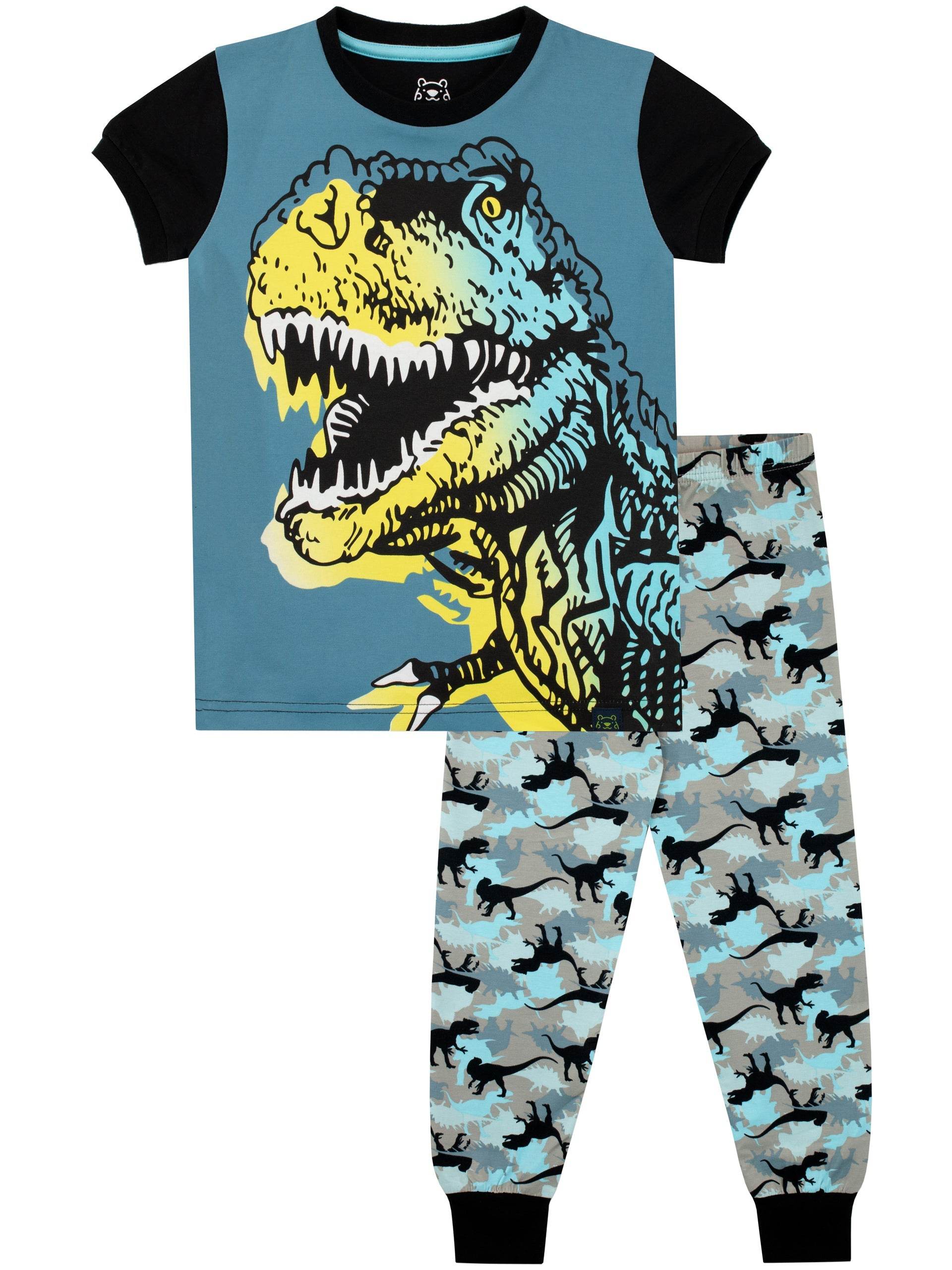 Take a trip back in time to the Mesozoic era, in these Dino mighty short sleeve pyjamas! Your intrepid archaeologist will dig this epic Jurassic pyjama set which comes with a bold print of a T-Rex on the top and a camo dinosaur motif on pyjama bottoms. Crafted in super soft stetchy cotton, these premium quality PJs are snug fit for comfort. We recommend ordering a size up for a little extra room.