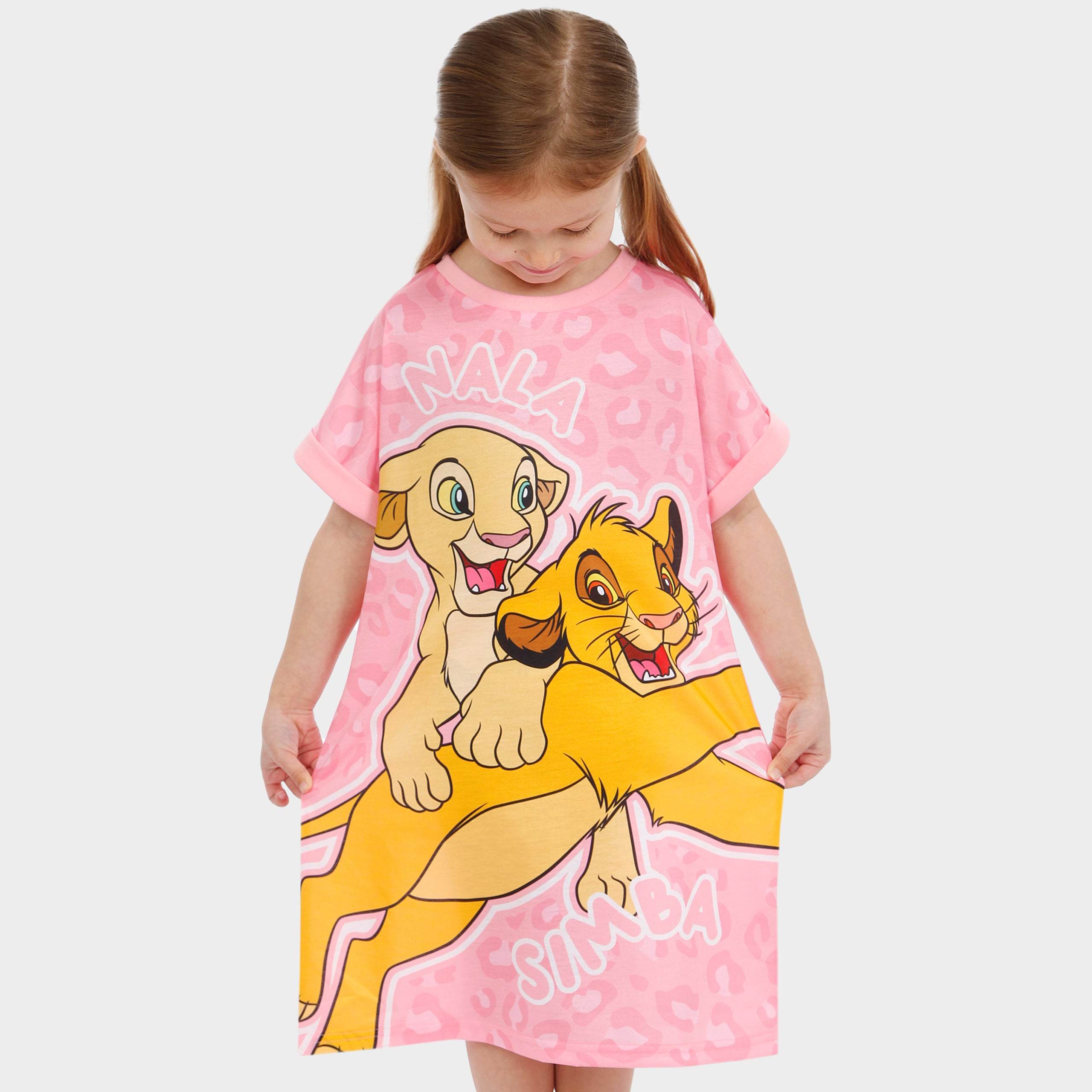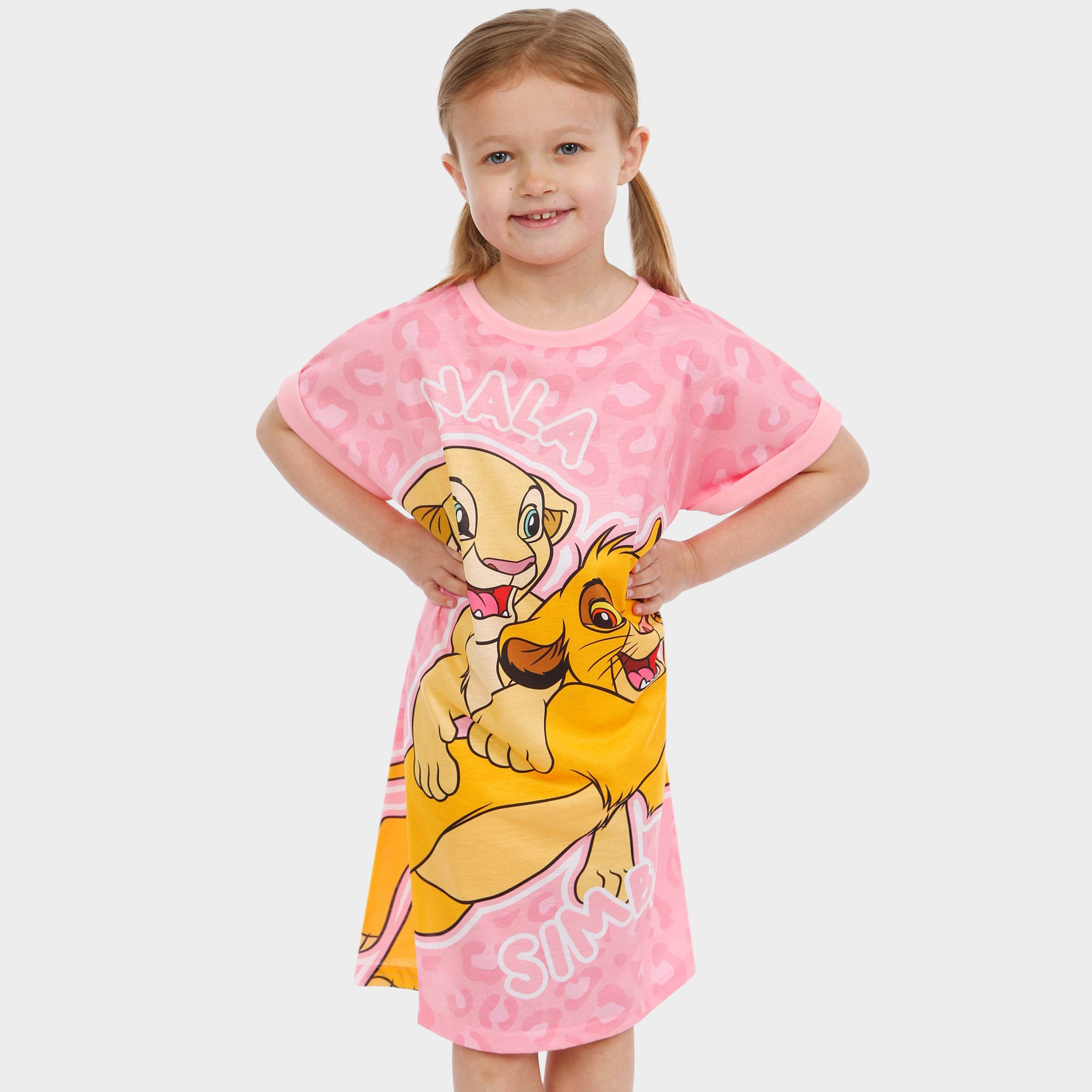 This delightful Lion King nightdress for girls showcases a playful scene with Simba and Nala frolicking over a chic animal print background in vibrant pink. Designed with rolled-up sleeves, it provides added comfort for a cosy night's sleep. Perfect for any little Disney fan, these pjs blends fun design with practicality. Make bedtime a roaring adventure with this adorable piece of sleepwear!