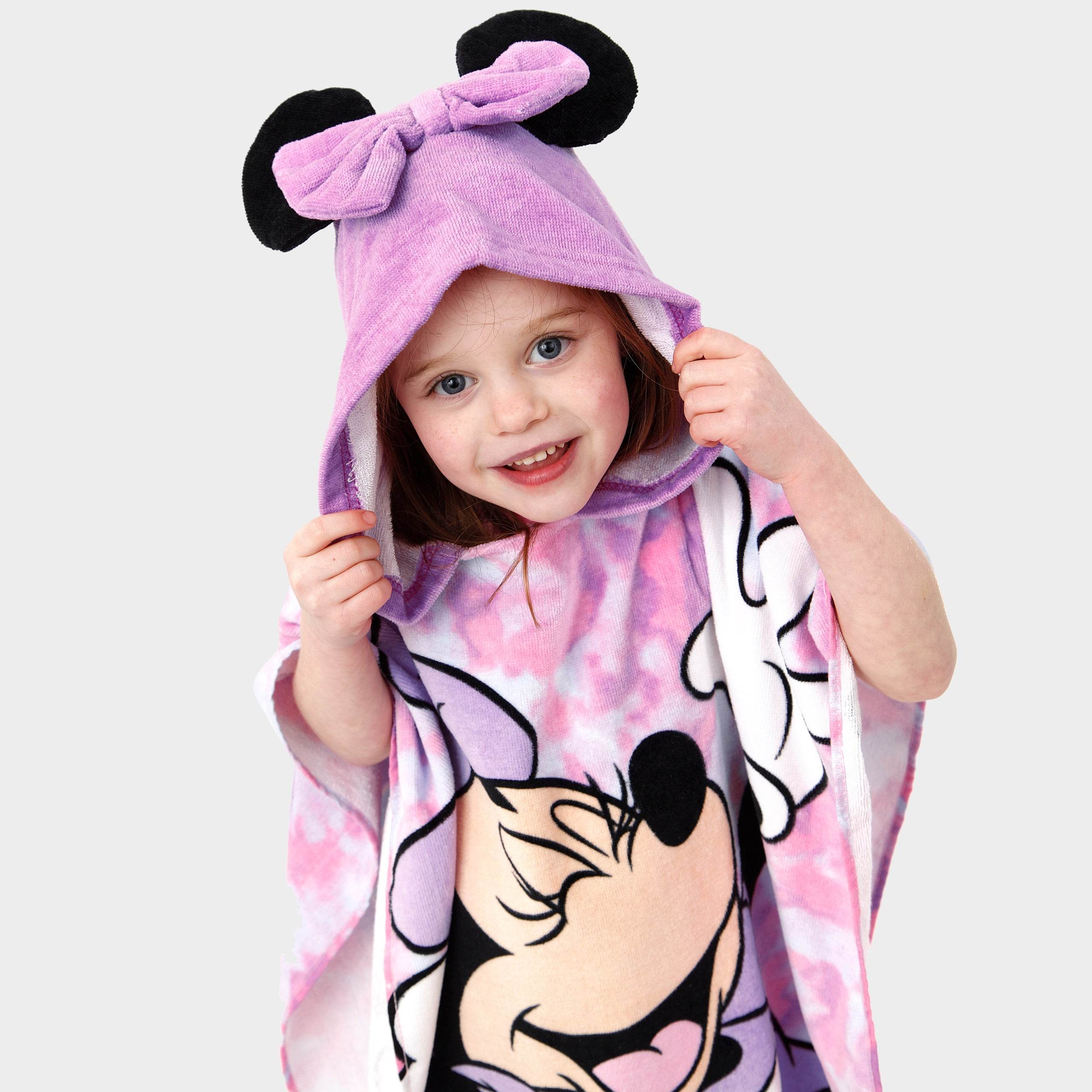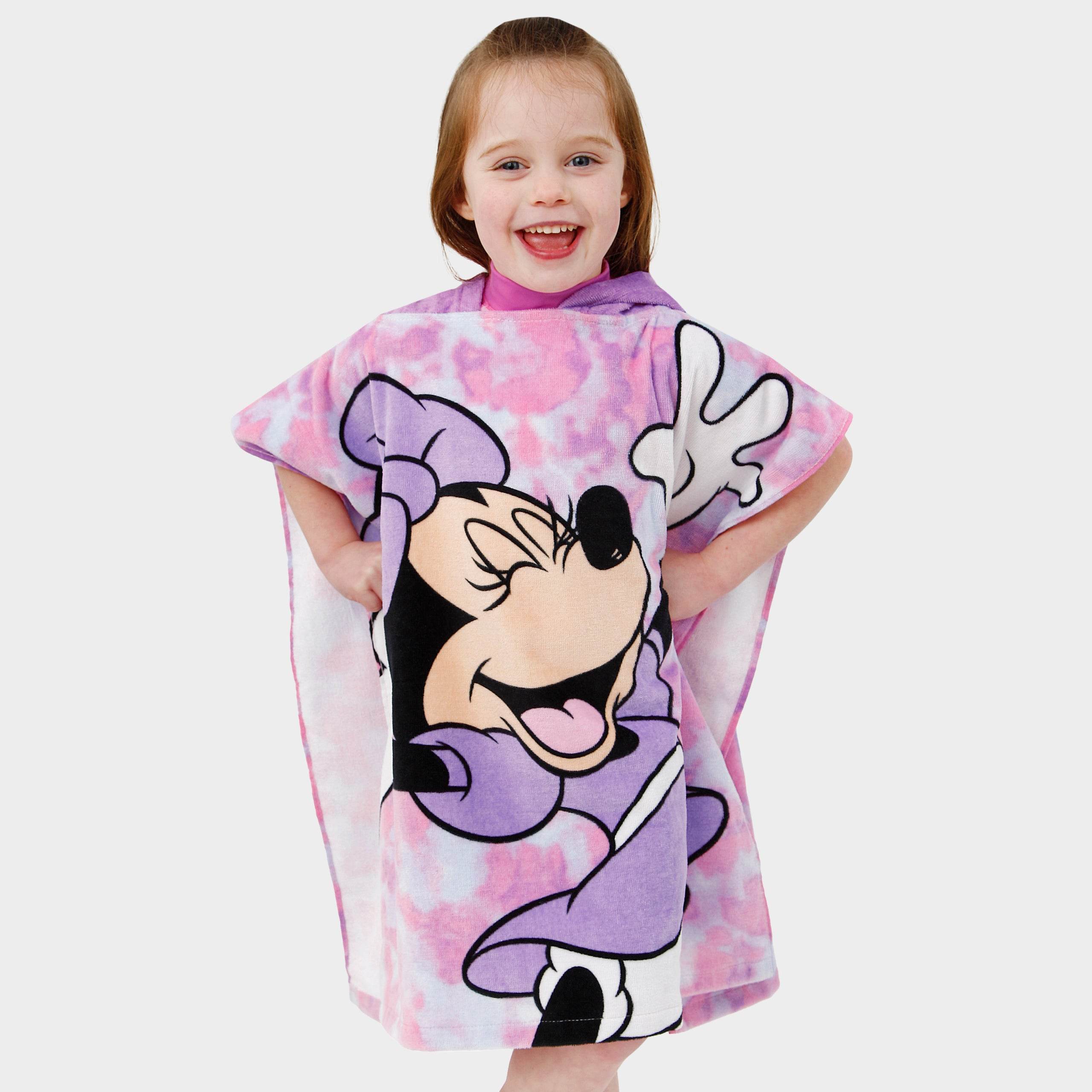 • Comfy And Cosy Girls Beach Towel: Wrap your little one in Disney delight with a poncho towel that pops in pink, white, and purple tie-dye, featuring Minnie herself!