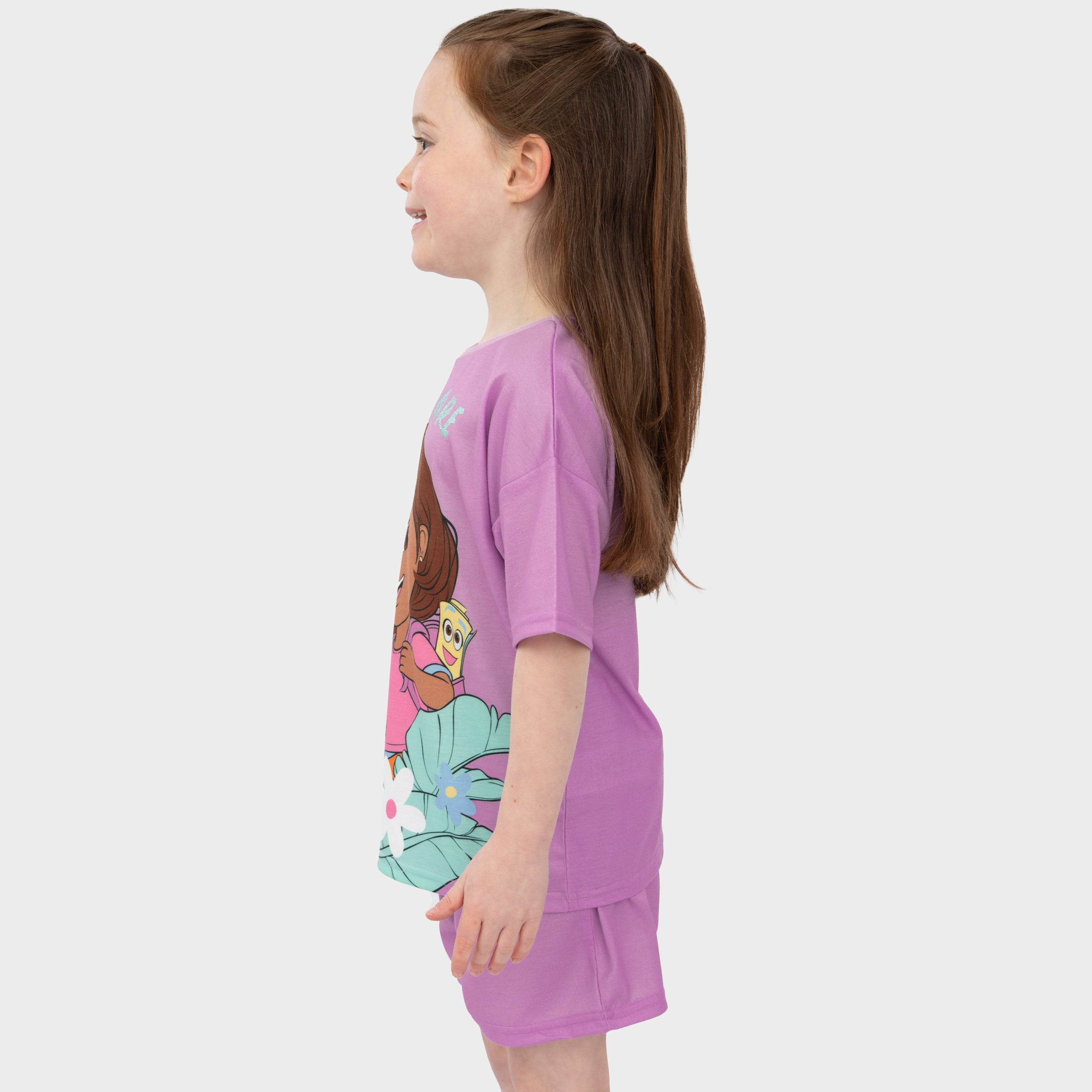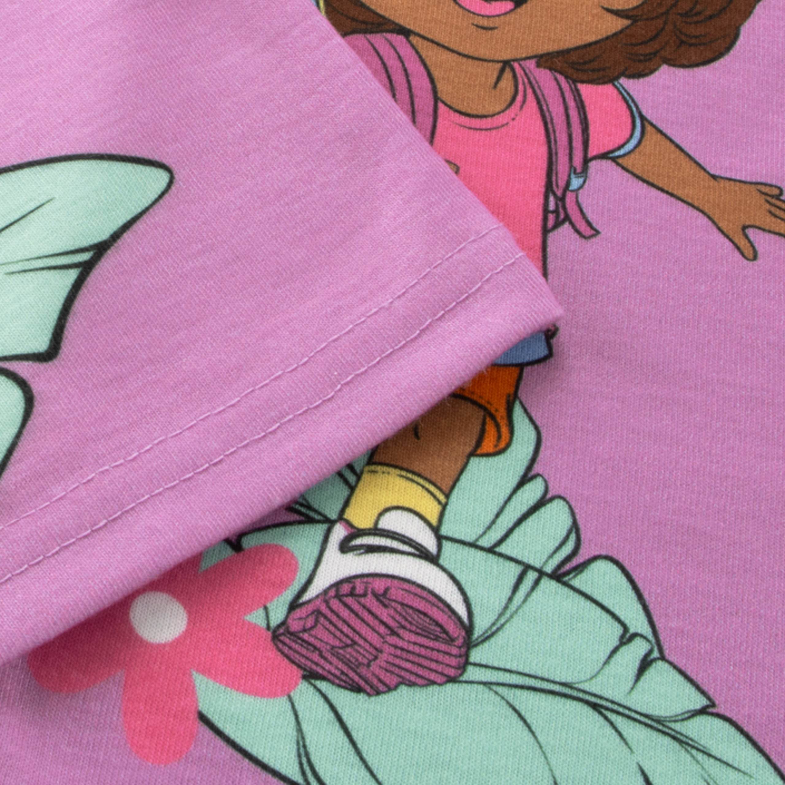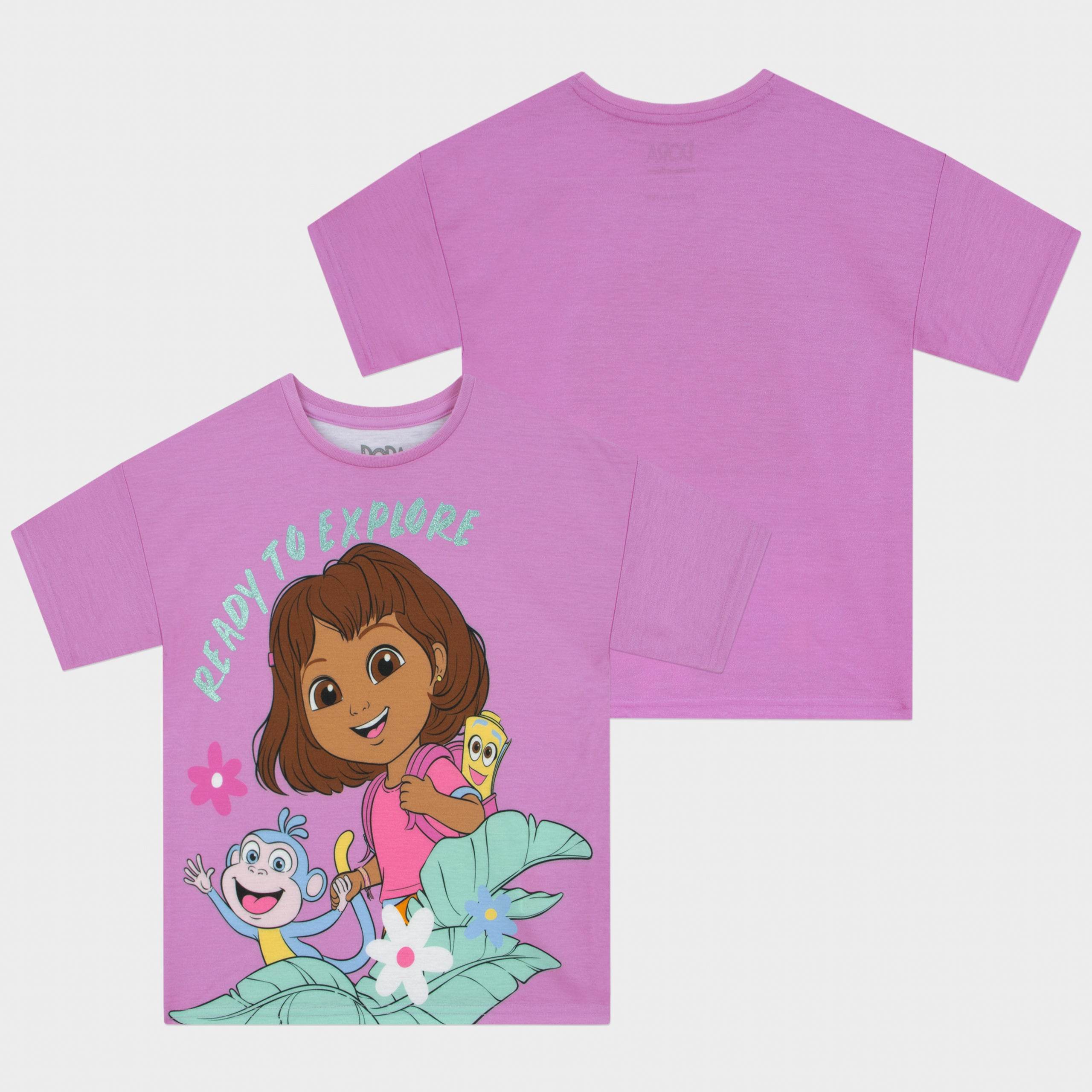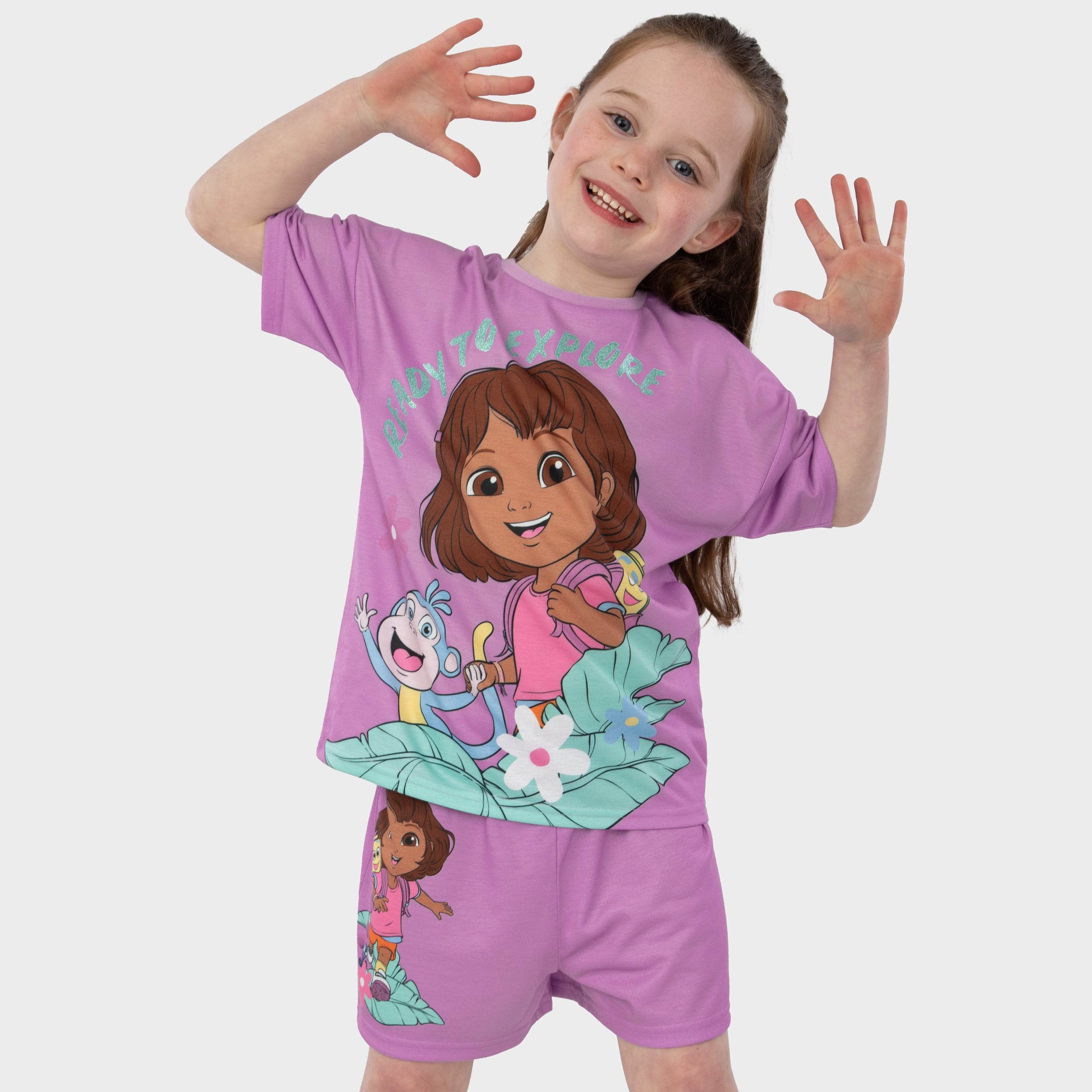 Little Dora fans will love bedtime with this fun and colourful Dora pyjama set! The short sleeve top features Dora, Boots, and Map with sparkly “Ready to Explore” text, perfect for adventure-filled dreams. The matching shorts add even more fun with a playful print and a comfy elastic waistband. Made from soft polyester, it's designed for dreamers aged 2 to 8 who love to sleep in style!