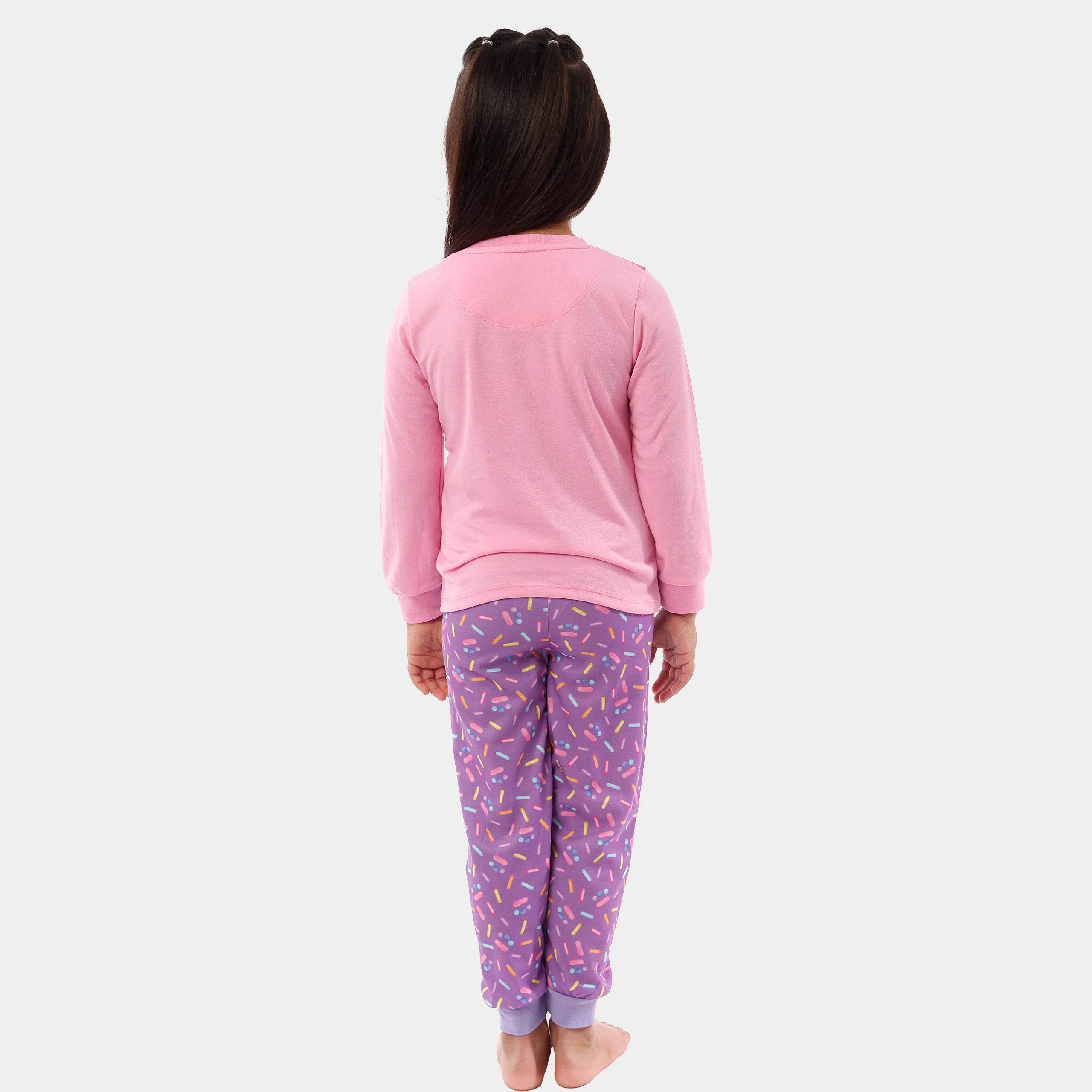These colourful Gabby's Dollhouse pyjamas are purr-fect for fans ofGabby and her feline friends! The long sleeve top features Mercat, Cakey Cat and KittyFairy and the stars of the show, Gabby and Pandy Paws. Completing the set are lilac bottoms with asweet all over print of hundreds and thousands. Your little doll will be dreaming of adventures in the dollhouse every night with these pretty PJs