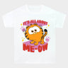 Dress your little one in this adorable Garfield t-shirt, and watch them strut their stuff with the confidence of the world's most famous orange tabby. Featuring a playful mix of pink and red writing amidst a star-studded background with pink paw prints, it's a wardrobe must-have for any Garfield admirer. Not only does it capture the essence of everyone's favourite sarcastic kitty, but it also radiates a cheeky charm with the "It's all about ME-ow" message. This t shirt is perfect to add a little fun and feline flair to your child's everyday style.