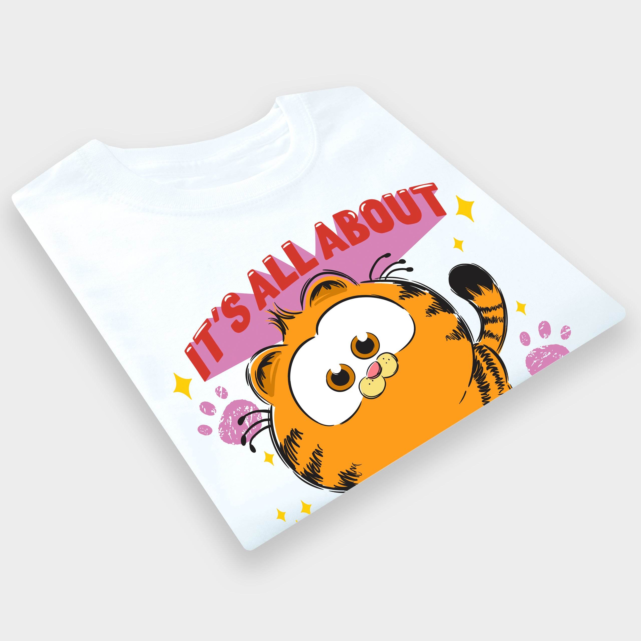 • Purr-fectly Stylish Tshirt For Girls: This Garfield tee sprinkles a dash of sass with its "It's all about ME-ow" slogan, surrounded by twinkling stars and pink paw prints.