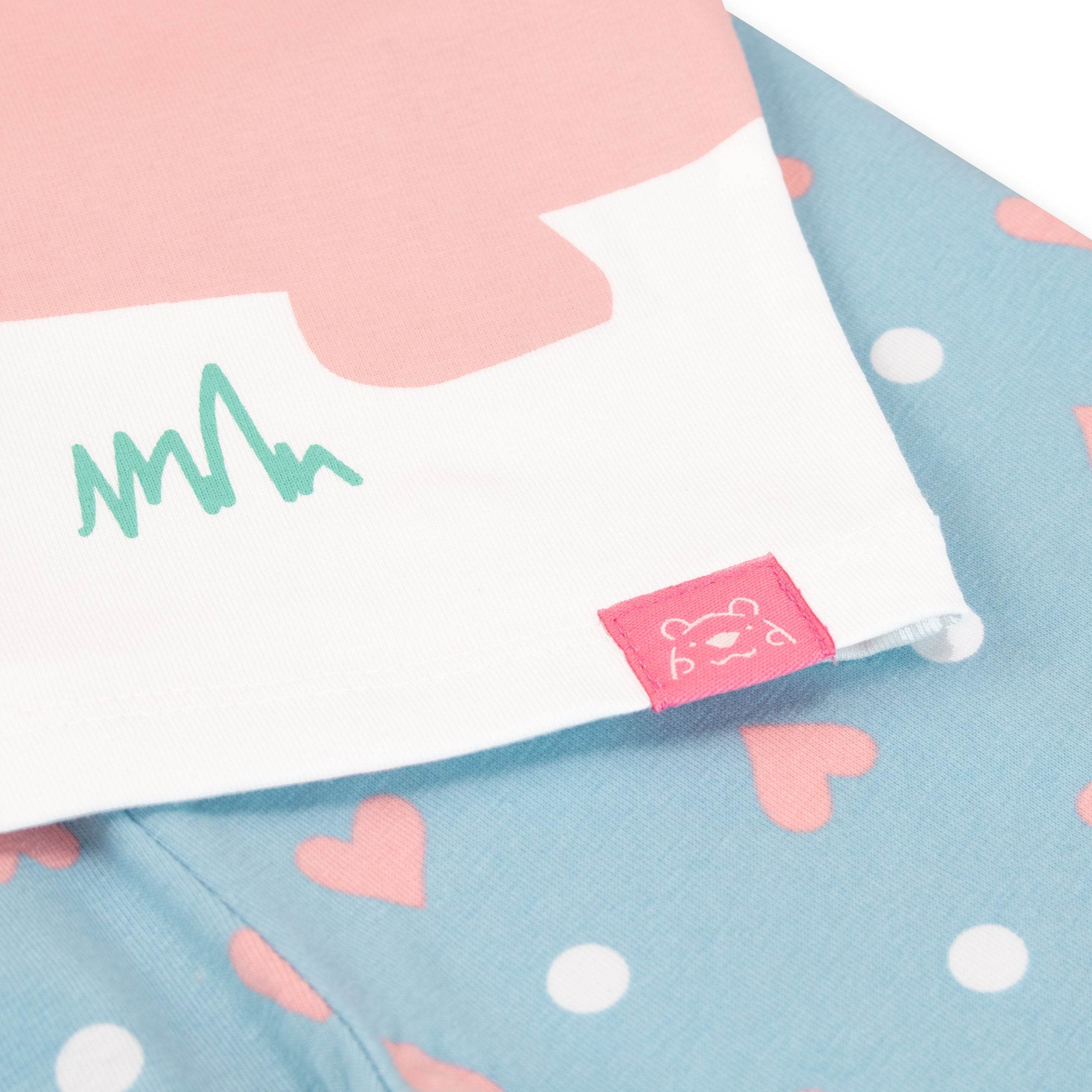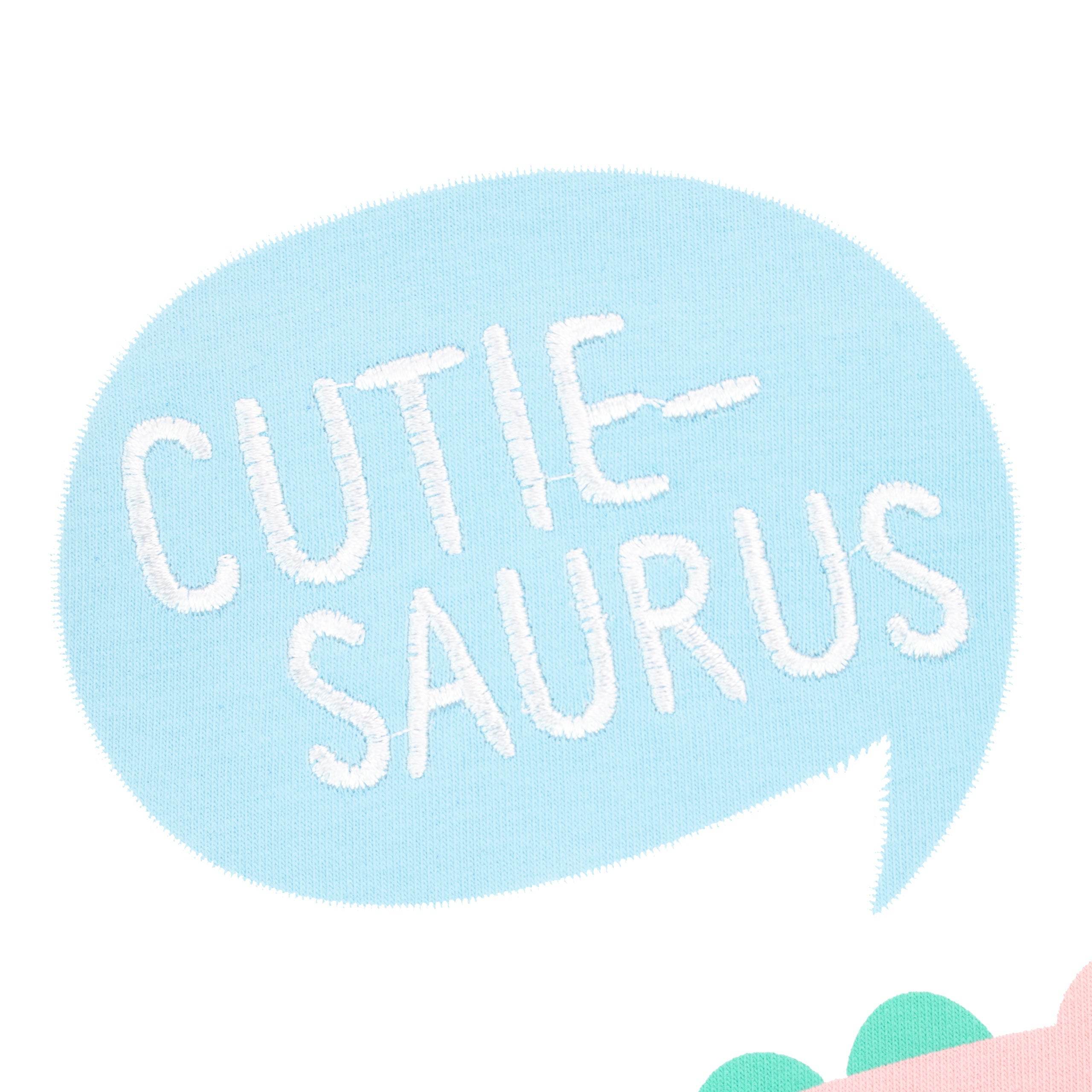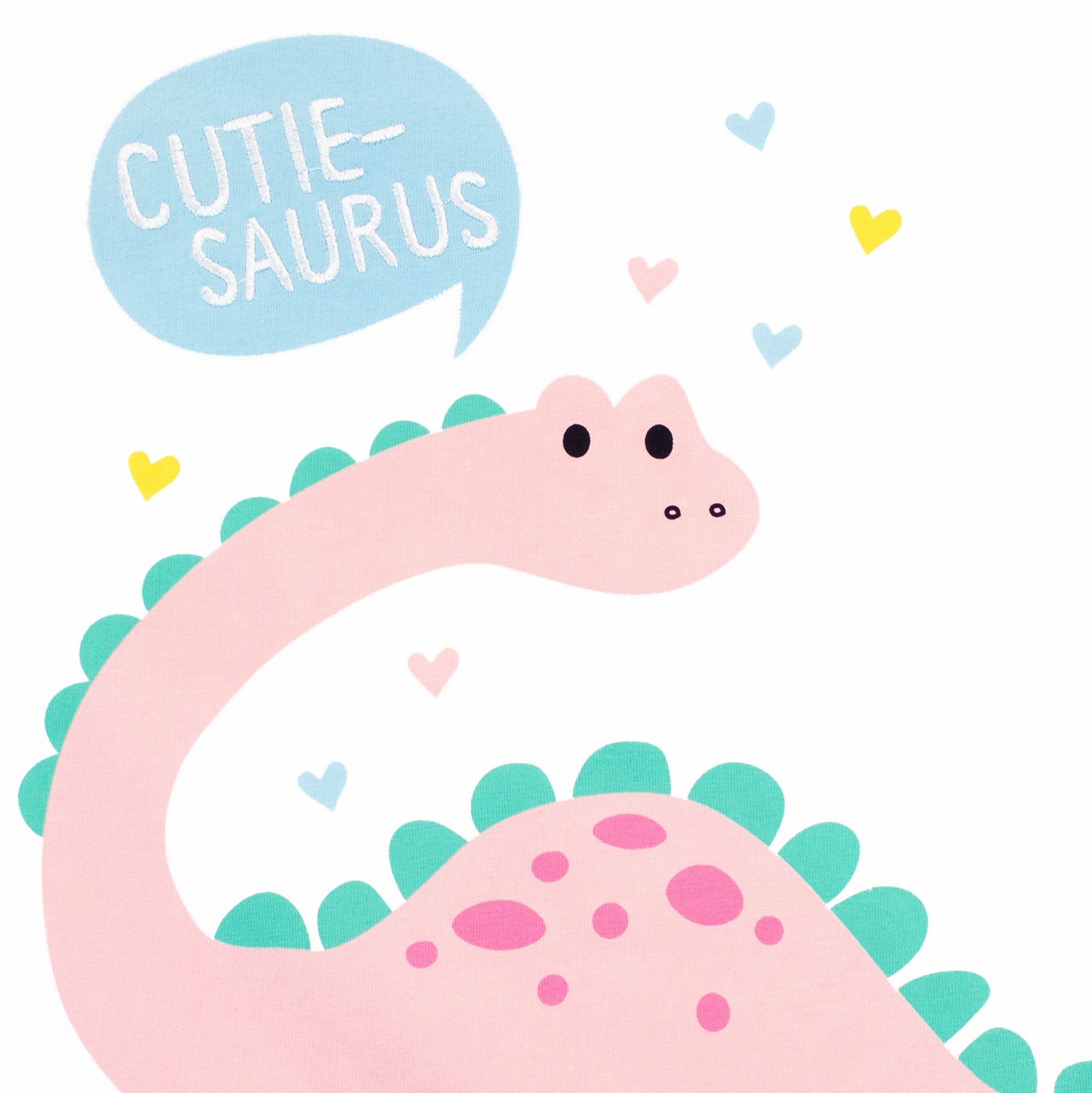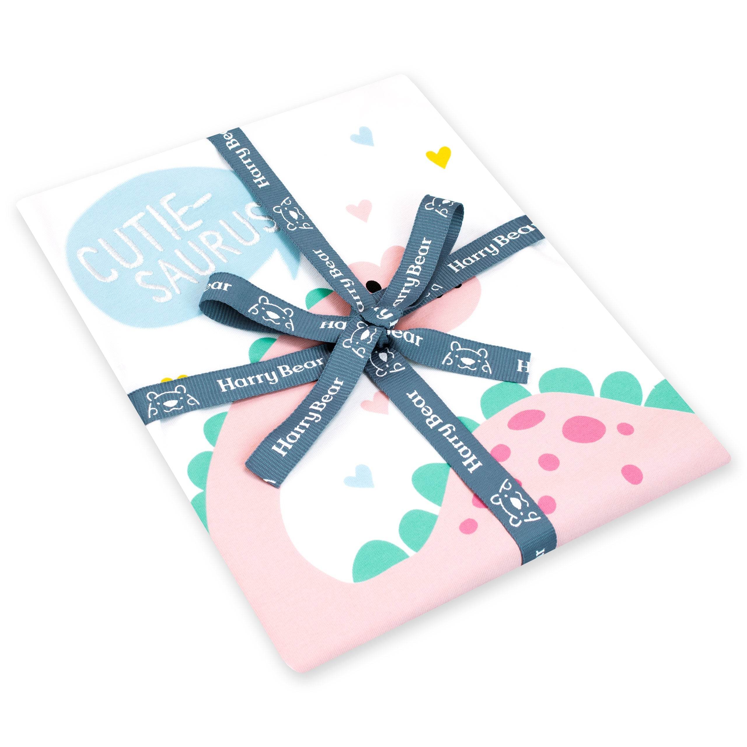 This roarsome jammie set will have your little one dino-soaring straight to bed in this adorable pyjama set! Designed by Harry Bear, this awesome pj set features a dinosaur motif with 'Cutie-saurus' written above. No prehistoric fossil finder would be complete without the matching bottoms that have an all over heart and dots print. Complete with an elasticated waistband, perfect for plenty of prehistoric dreams! Get ready for plenty of dino-snores in these pjs. Crafted to be snug fitting for comfort. For a little extra room we recommend ordering a size up.