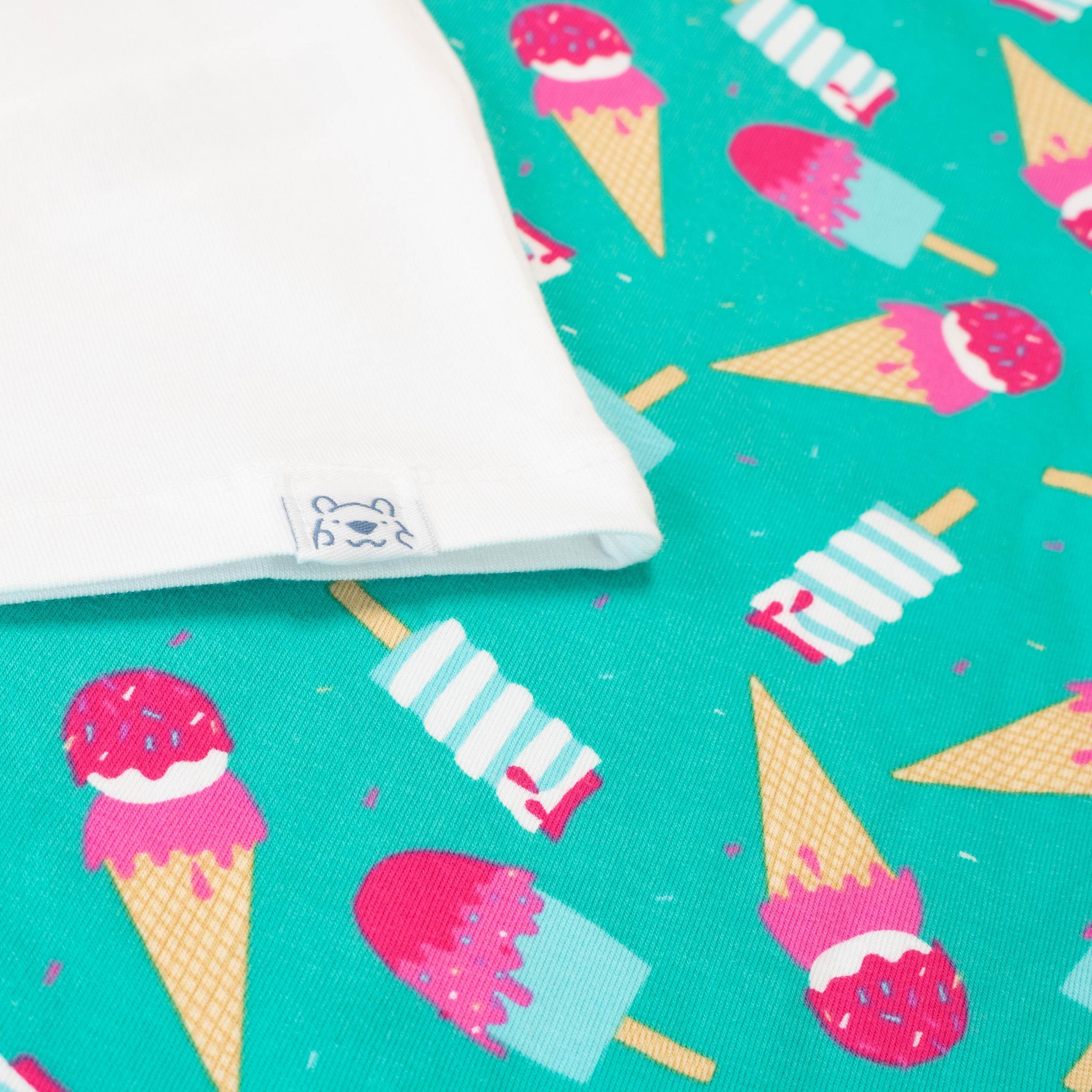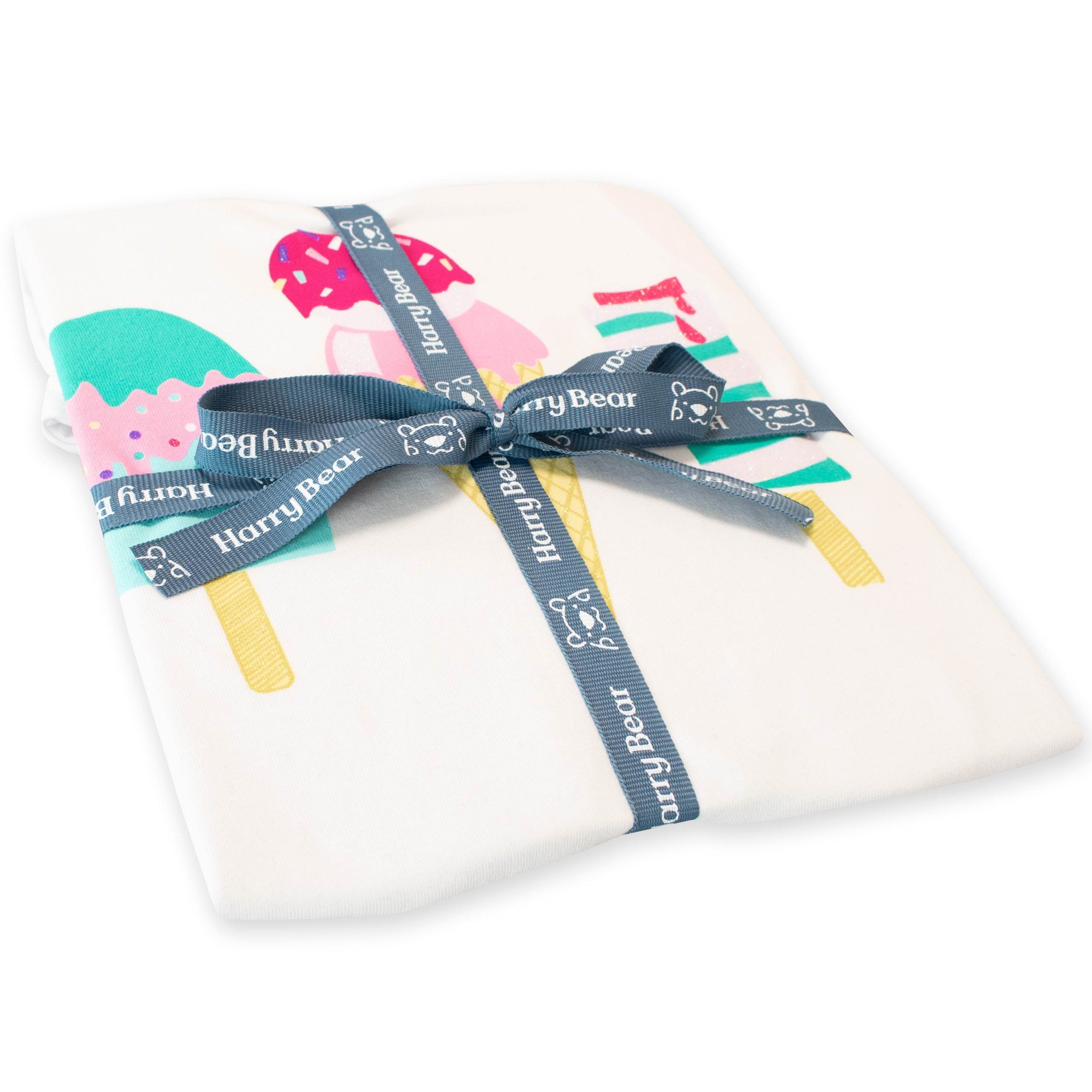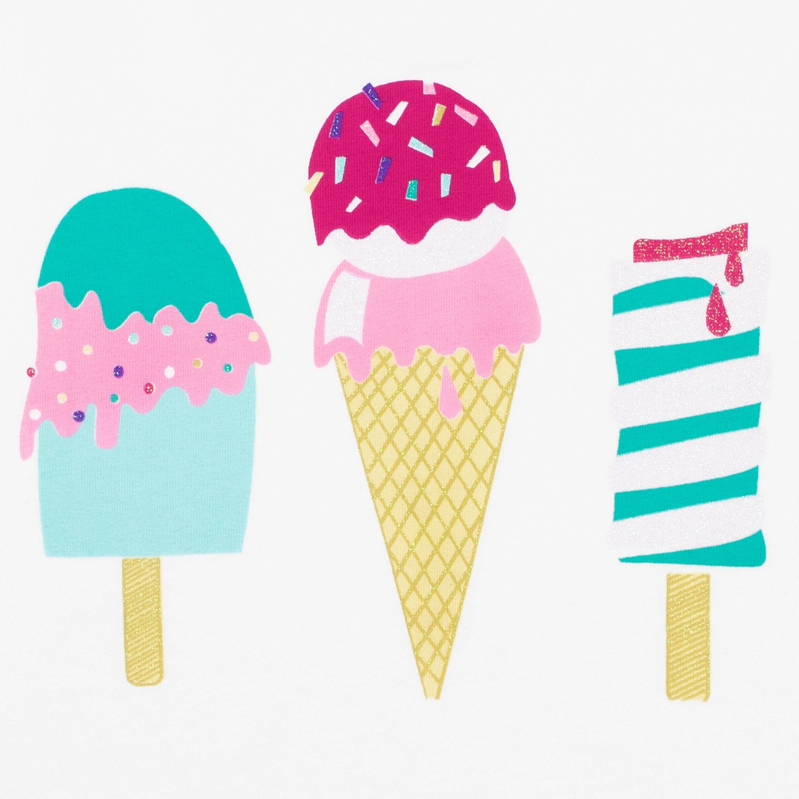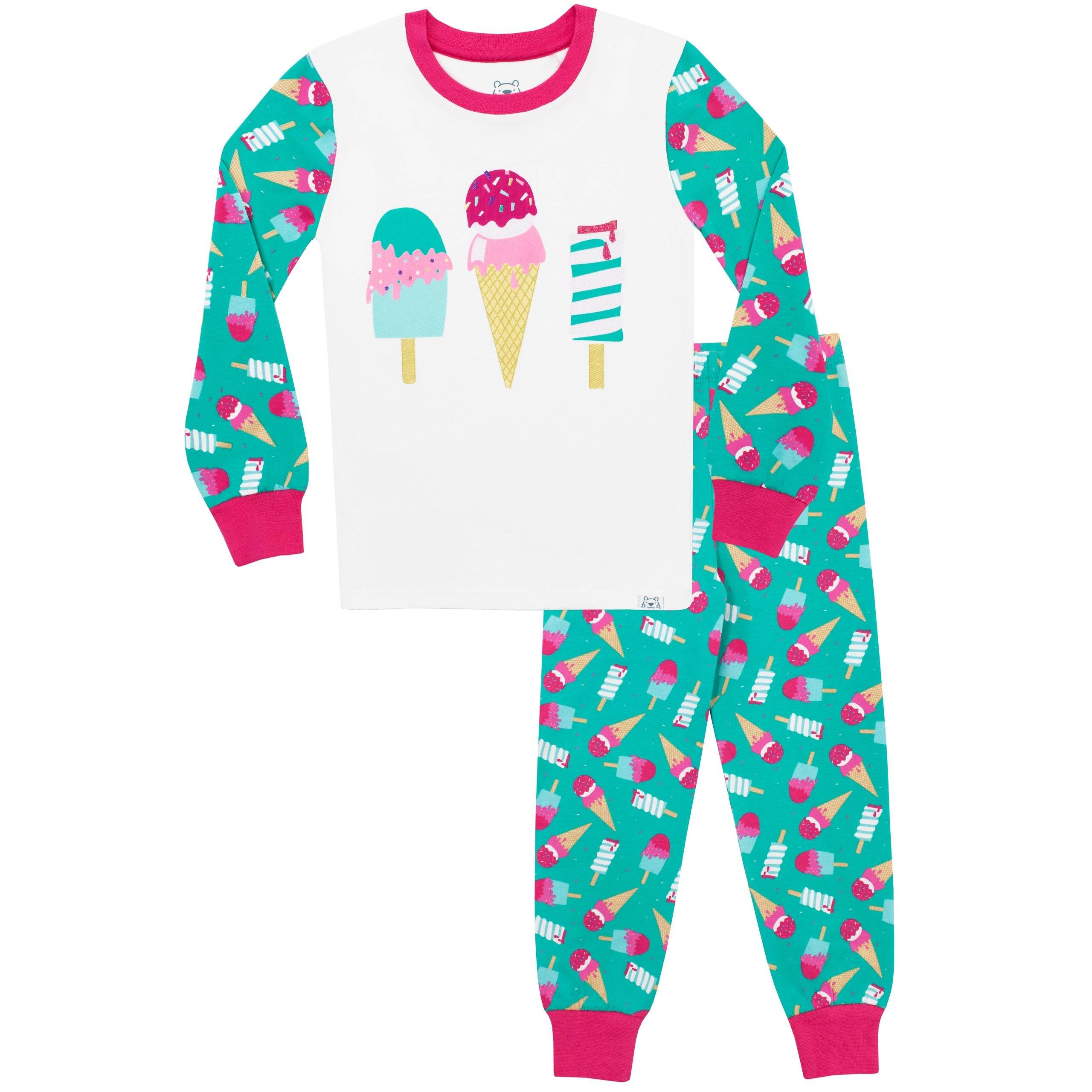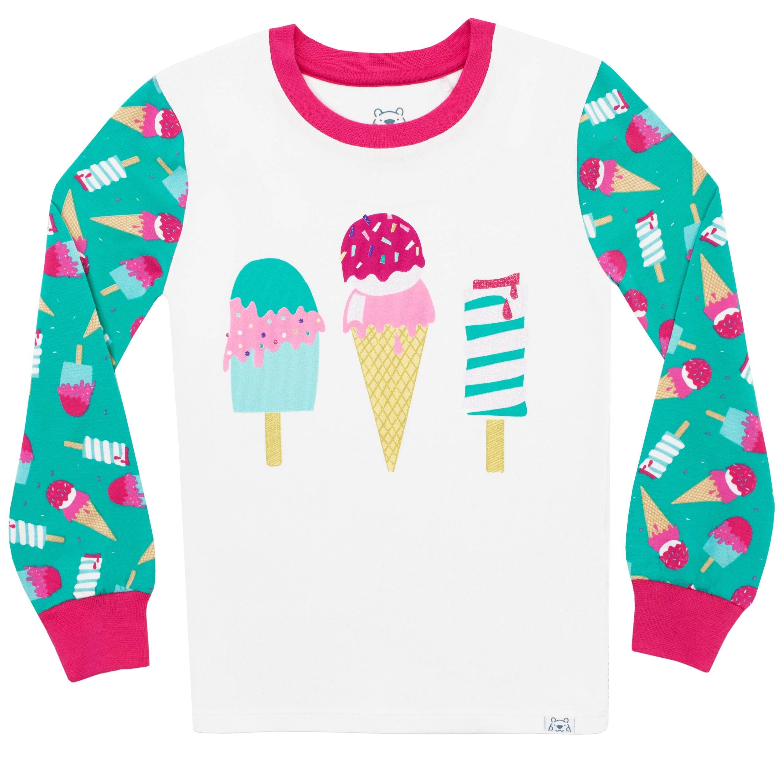 Melt away to dreamland in the sweetest of pjs! Designed by Harry Bear, these wonderful Ice Cream pyjamas feature bright and bold prints of 3 ice cream favourites, with a shimmery glitter detailing on the top.