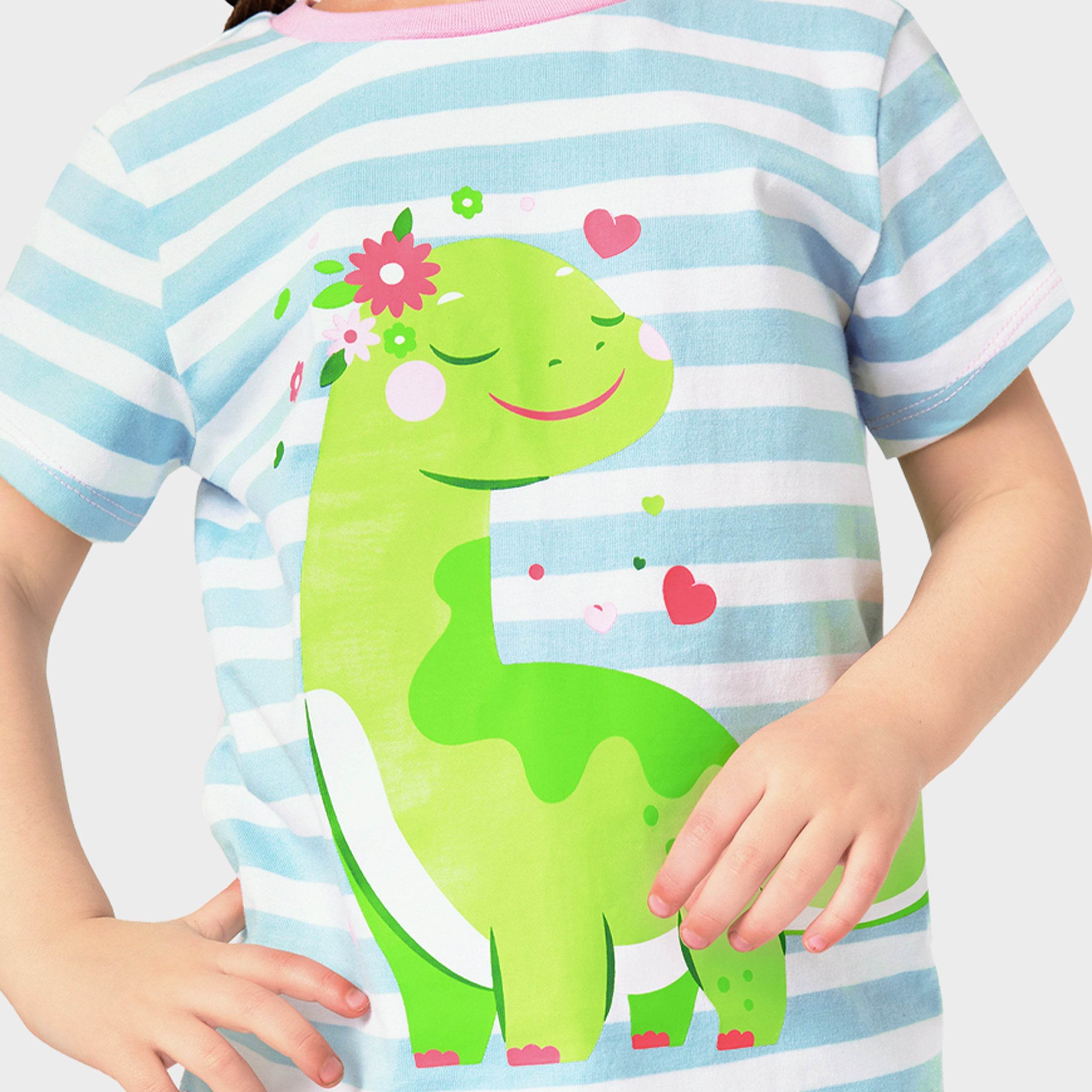 Harry Bear Dinosaur Girls Short Pyjamas - Blue Stripes