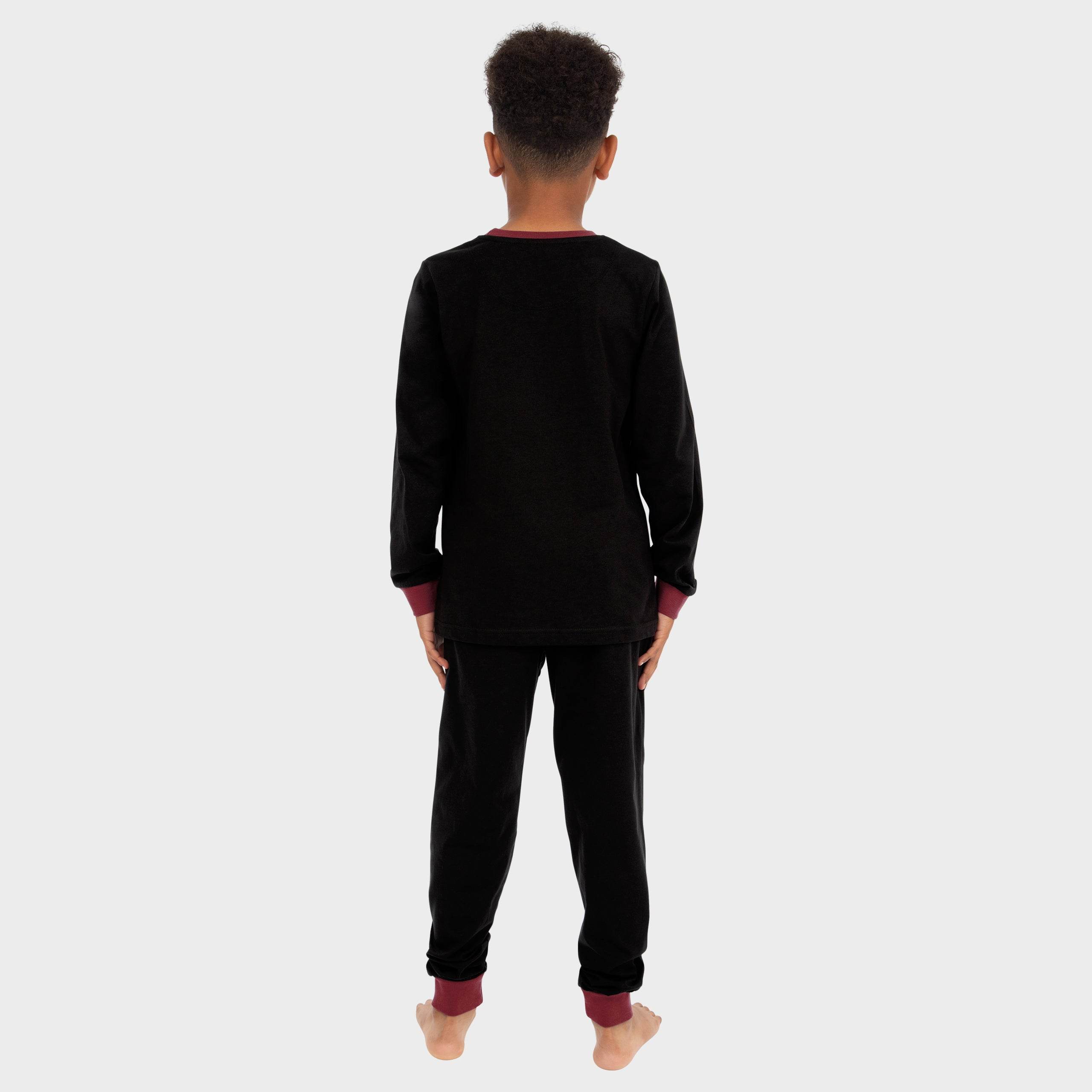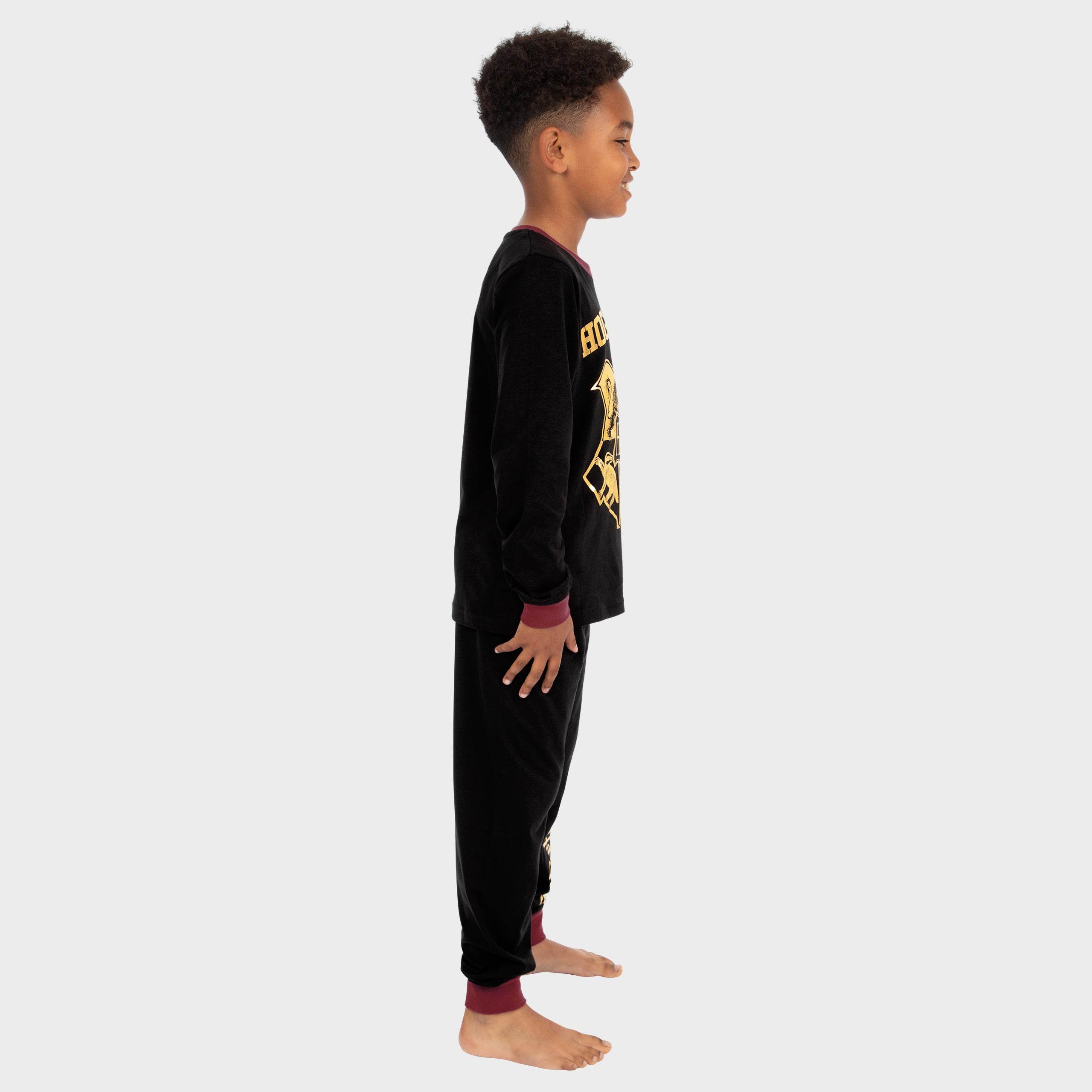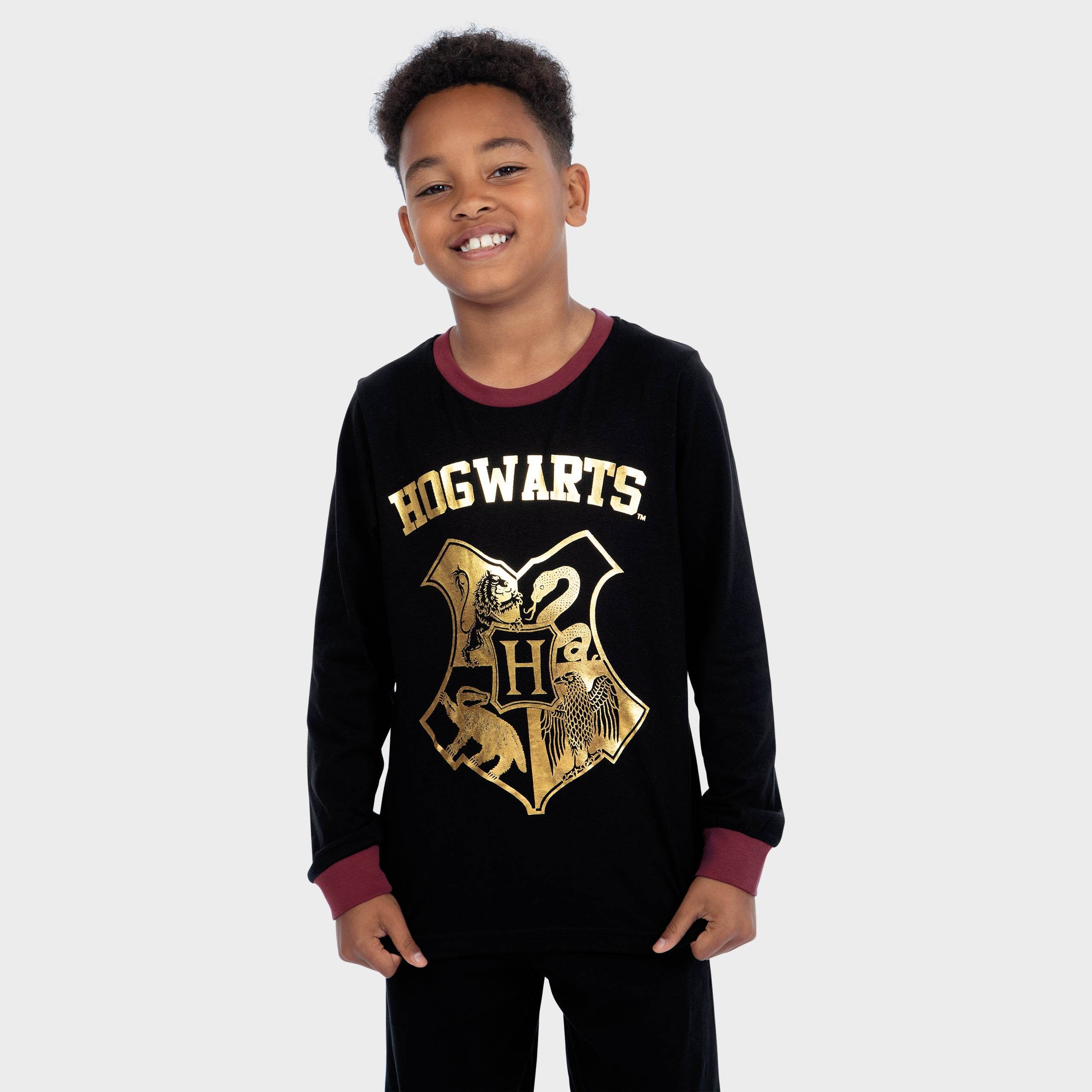 Get your little wizard ready to go back to Hogwarts in this magical Harry Potter pyjama set. This black pj set features the Hogwarts School of Witchcraft and Wizardry emblem in a metallic gold foil. Complete with matching long bottoms with the Harry Potter logo and burgundy elasticated cuffs. Perfect for spellbinding dreams!