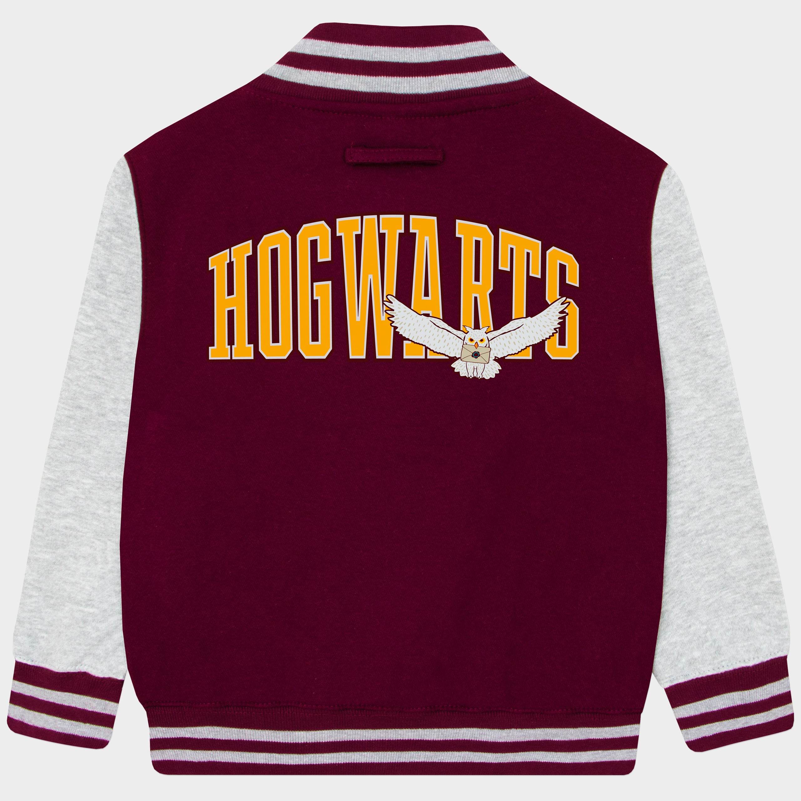 Cross through Platform 9 in style with this Harry Potter boys varsity jacket! Featuring a golden snitch and yel"HP" logo on the front, two pockets for treasures, secure popper closure, and a hanging hook at the back; its perfect jacket for any young spellcaster in training. The back showcases Hedwig with a Hogwarts letter and"Hogwarts" lettering; the ideal jacket for boys to wear on their first day at Hogwarts!