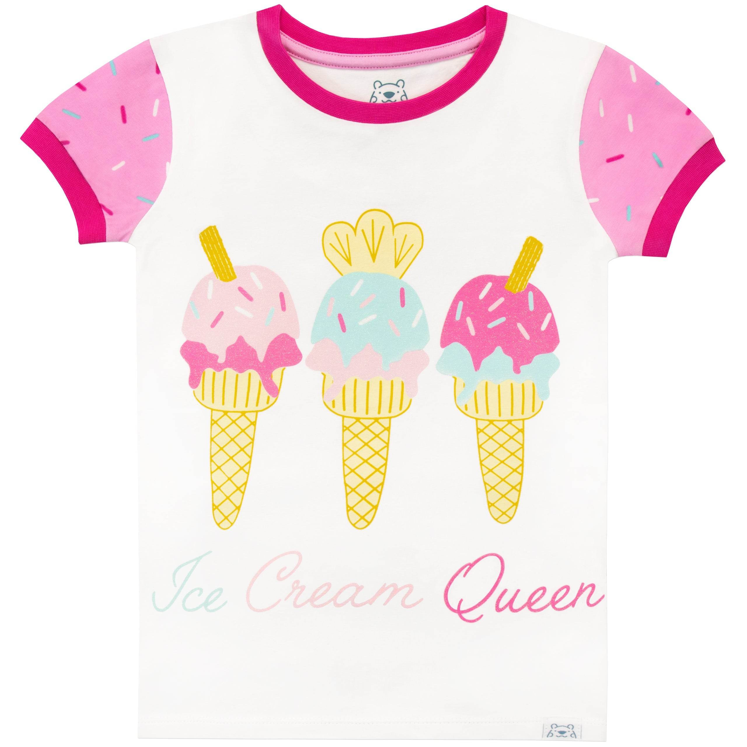 Ice cream queens can always have the sweetest dreams in these adorable short PJ's! Harry Bear has designed these cool jammies for a summertime treat. The short sleeve top features a colourful glittered print of ice cream cones "Ice Cream Queen" slogan that will make their hearts melt. The pyjama shorts have an all over motif of sugar sprinkles against a vibrant pink.
