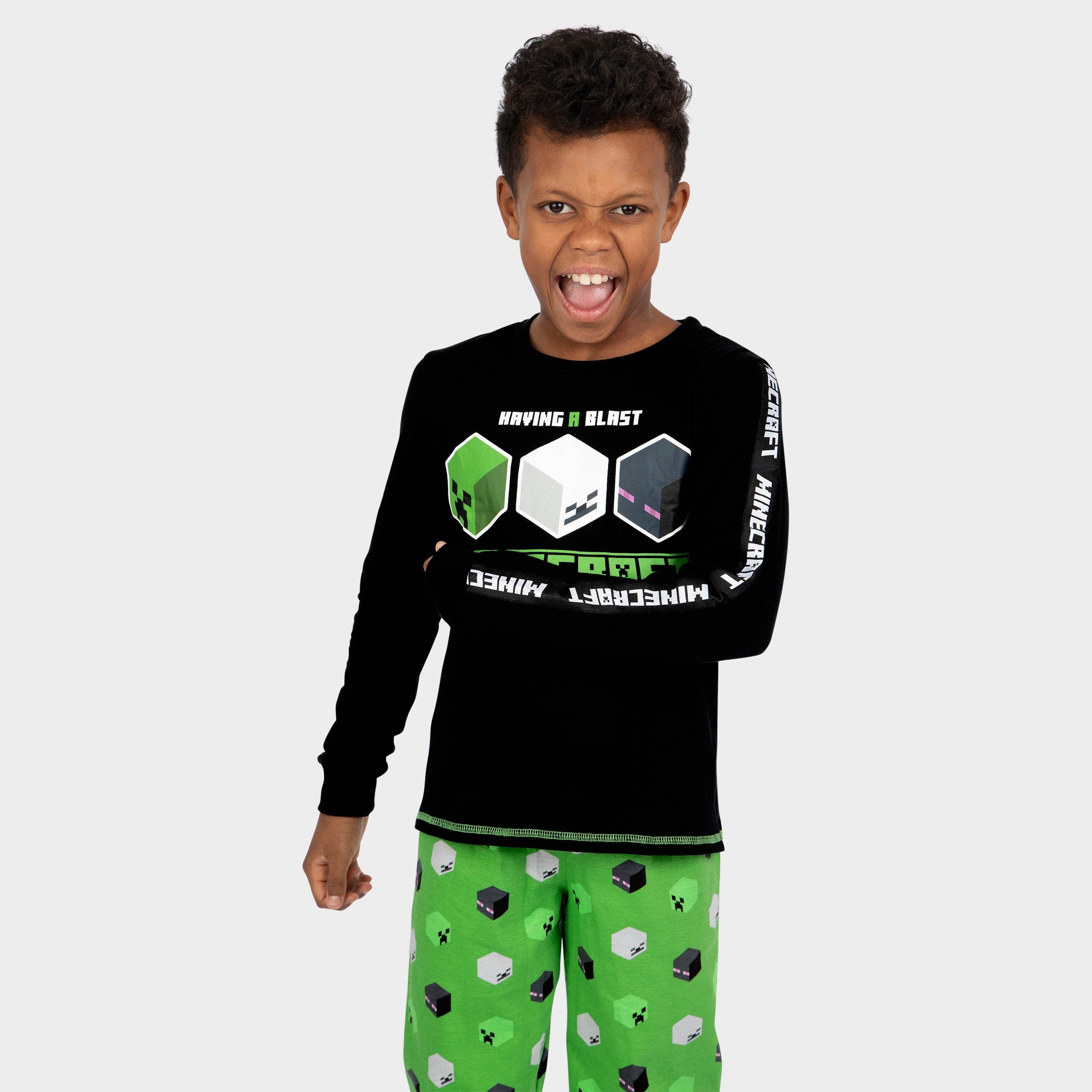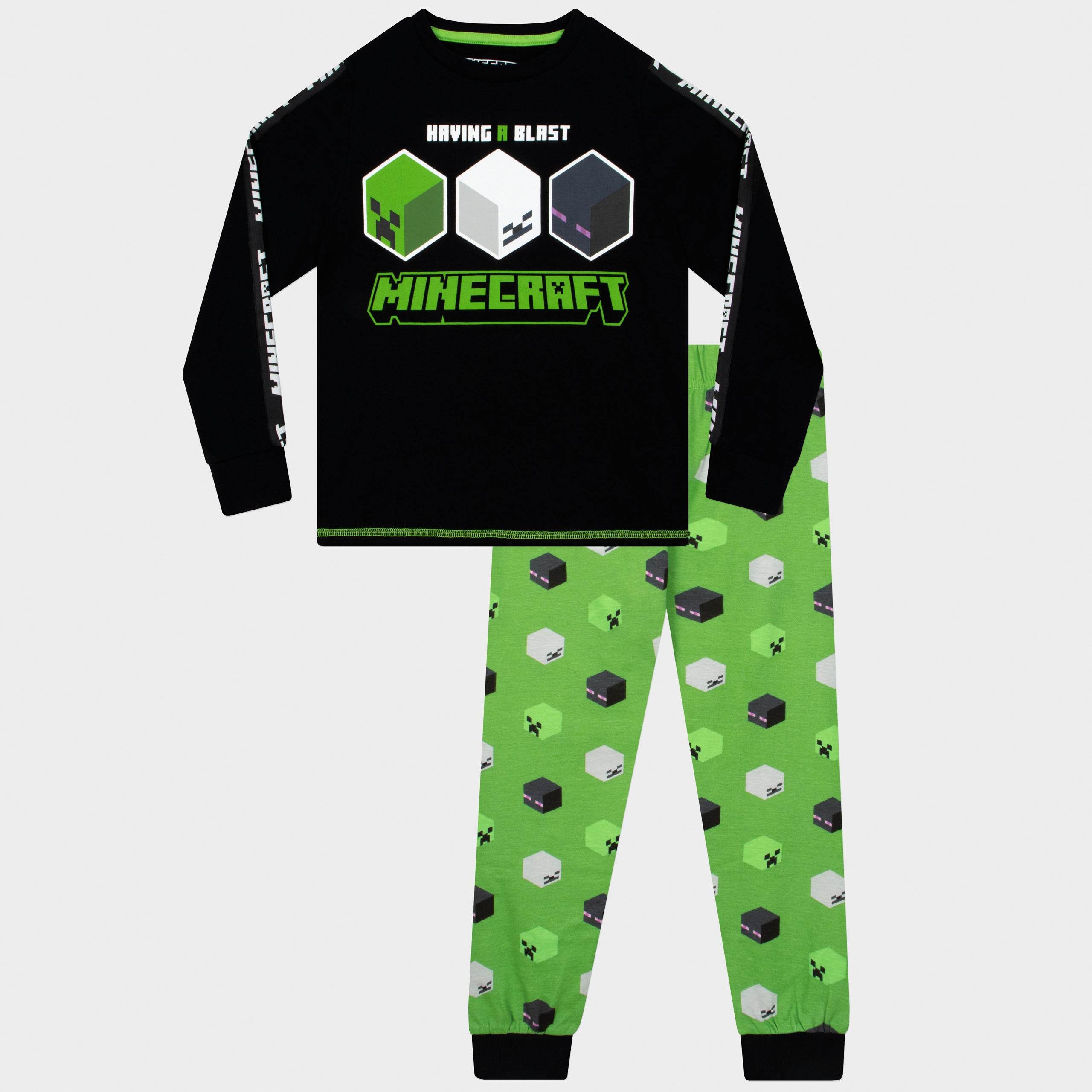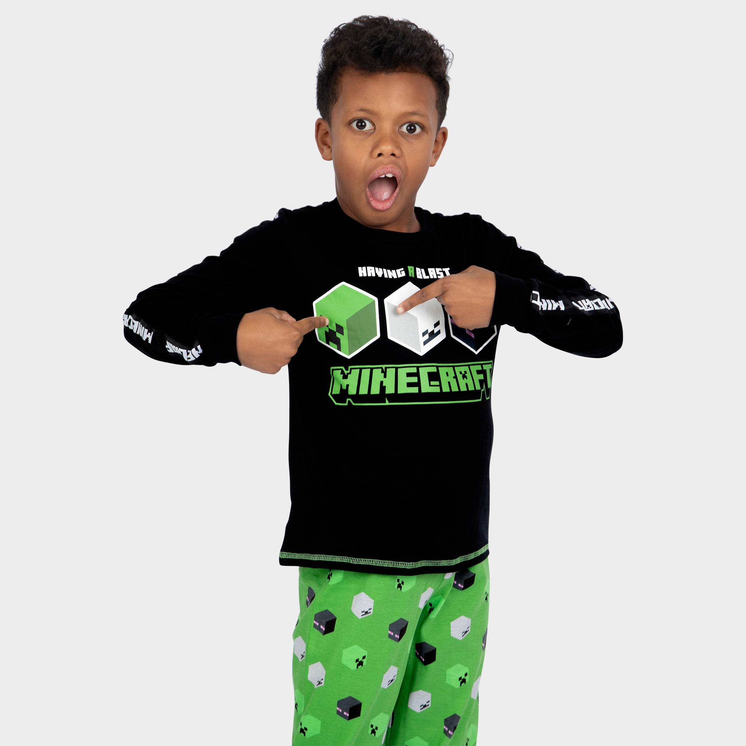 • Epic Battle-Ready Minecraft PJs: Level up your little ones bedtime routine with these black and green Minecraft pyjamas showcasing the fun slogan Having A Blast!