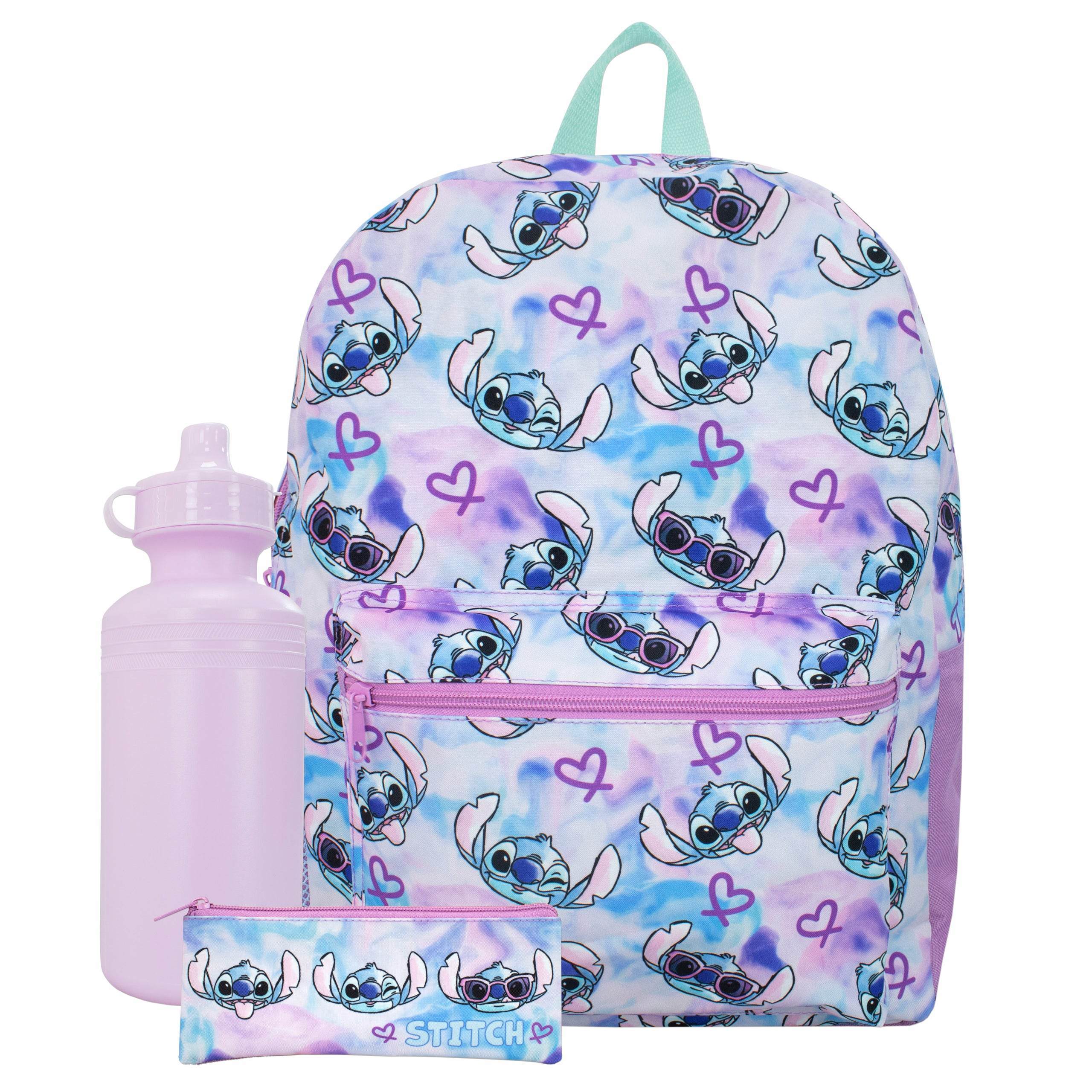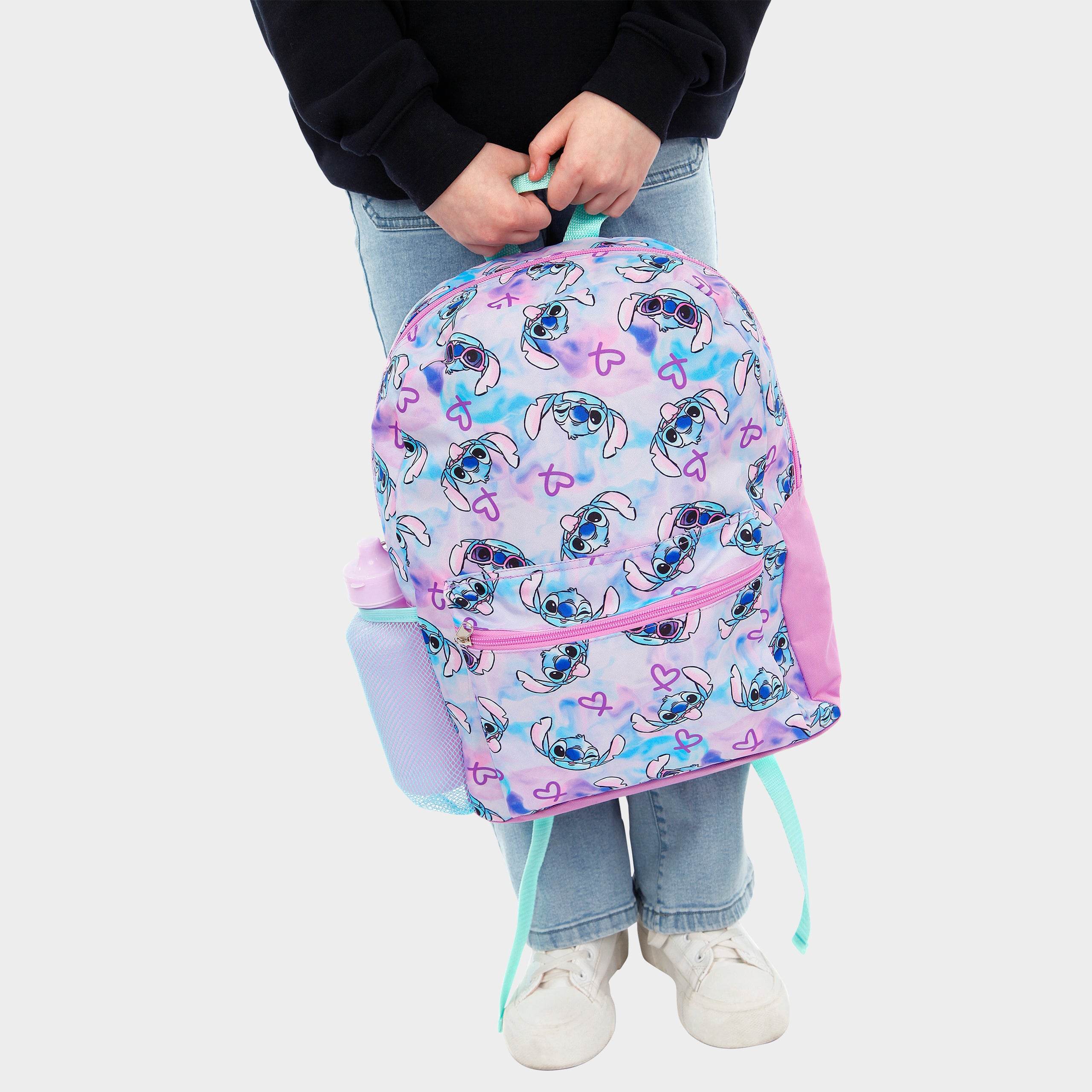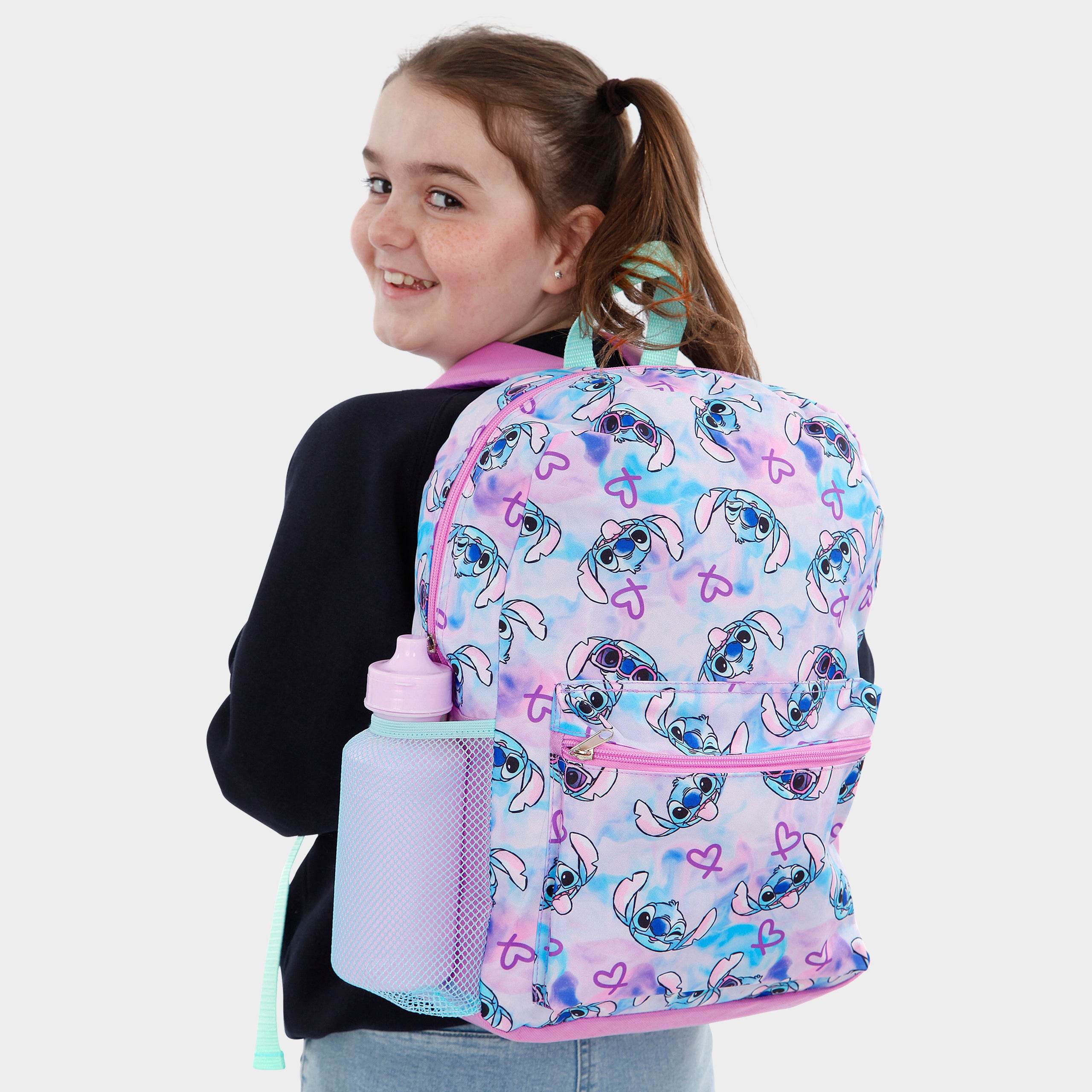 • Lilo and Stitch Girls Backpack Set - Includes backpack, pencil case, and water bottle for complete school or travel essentials.